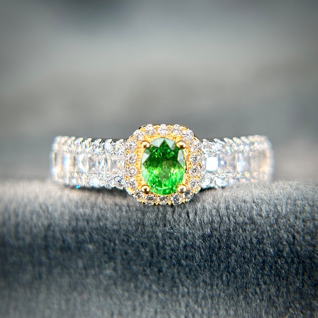 シルバー製ゴールドカラー ツァボライトガーネット ガーディアンリング 1月誕生石 10号以上での使用推奨