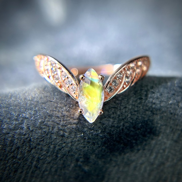 シルバー製 レインボームーンストーン リーフリング 6月誕生石 フリーサイズ