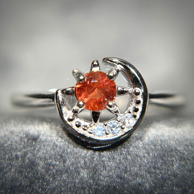 シルバー製、スピネルのプラネットリング。 8月誕生石のスピネル。 オレンジカラーのスピネルを使用。 エネルギッシュなカラーと煌めきが太陽の様です。 月モチーフとの組み合わせをぜひお楽しみください。 フリーサイズのリングでサイズ調整ができるのも嬉しいポイント! 素材 シルバー925(ロジウムメッキ) 中石 スピネル(約4mm) 脇石 キュービックジルコニア 縦 約8.8mm(枠込み) 横 約9.4mm(枠込み) リング幅 約1.5mm前後 サイズ フリーサイズ 925刻印有ります。 ニッケルは使用しておりませんので、ニッケルアレルギーの方もご使用していただけます。 万が一アレルギー症状が出た場合はご使用をお控えください。 サイズ調整は変形や石外れの原因になる場合がございますので、少しづつ調整して下さい。 メッキ加工されている商品は、使用状況で変色等ある場合がございます。 天然石使用及びハンドメイド商品は、内包物、細かい傷、多少の歪み等ある場合がございます。 写真はなるべく実物に近くなるように心掛けておりますが、主観等により異なって見える場合がございます。