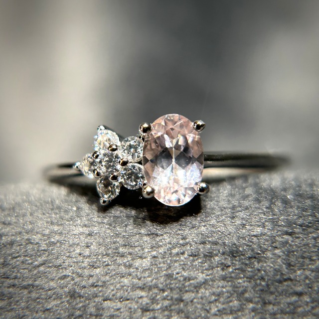 シルバー製ピンクゴールドカラー モルガナイト アールリング 4月誕生石 フリーサイズ