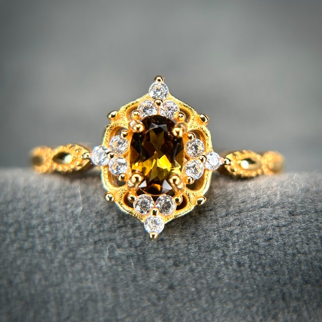 シルバー製ゴールドカラー トルマリン クラシカルリング 10月誕生石 フリーサイズ
