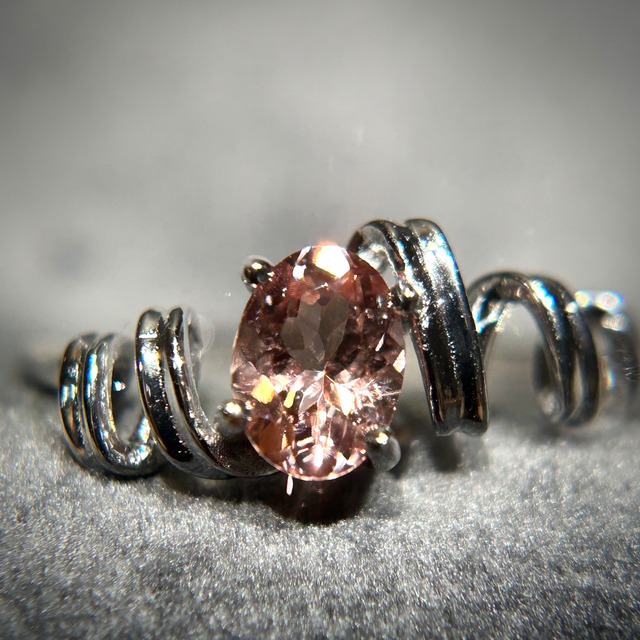 シルバー製ピンクゴールドカラー トルマリン アールリング 10月誕生石 フリーサイズ