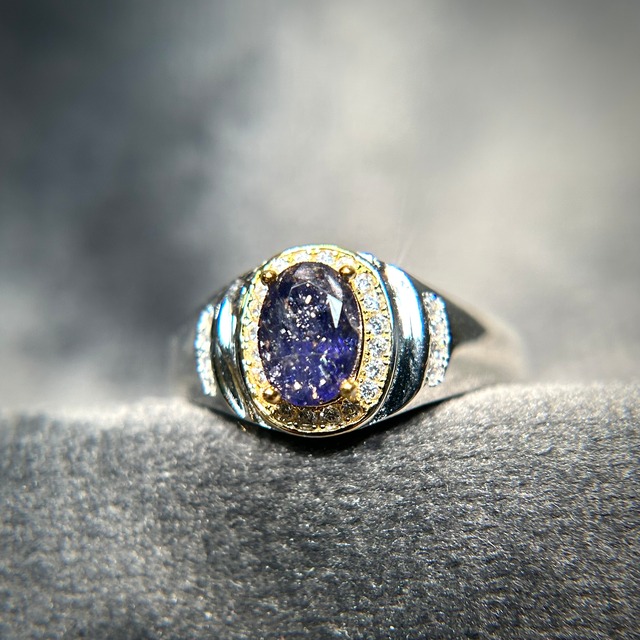 シルバー製 アイオライトサンストーン クラシックリング 14号