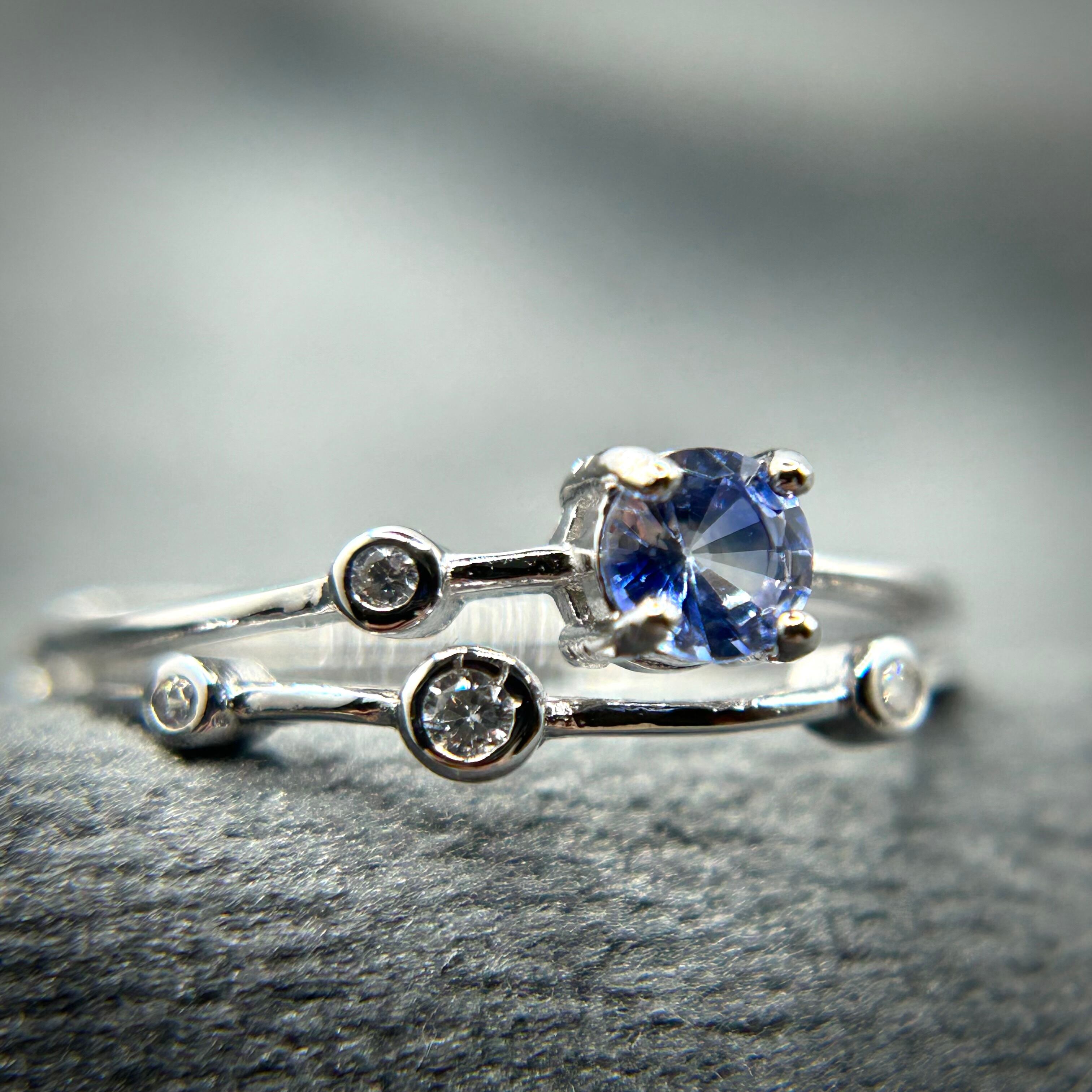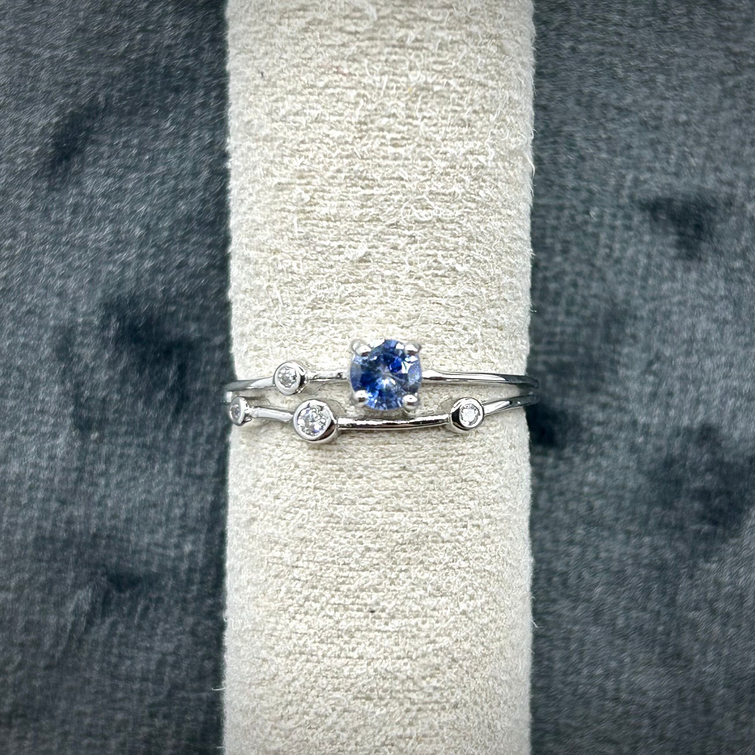 シルバー製 サファイア ステーションリング 9月誕生石 フリーサイズ