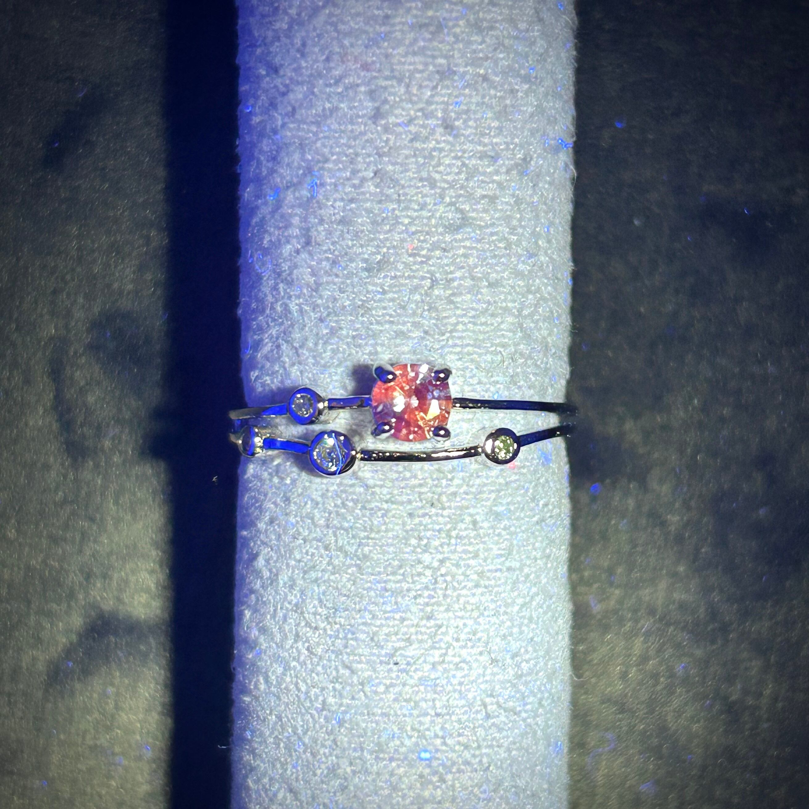 一見ブルーのサファイアの様に見えますが、角度を変えるとクリアカラーが見えます。