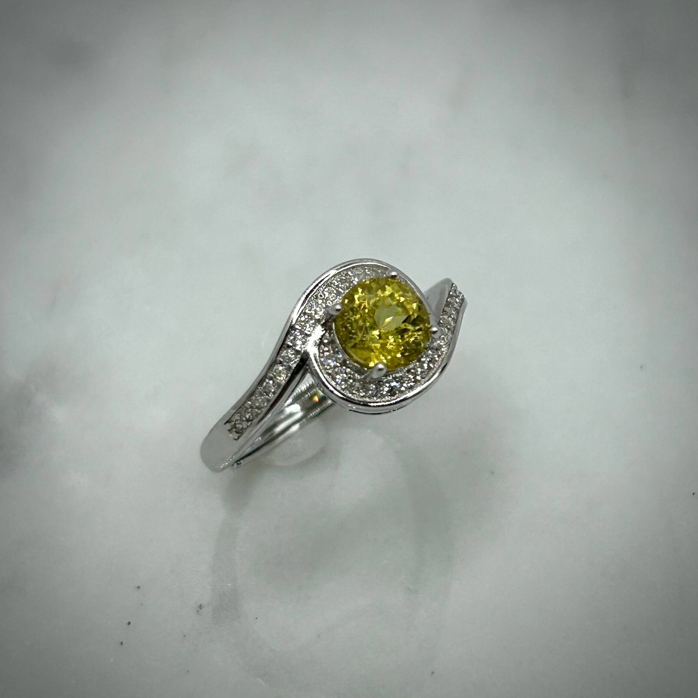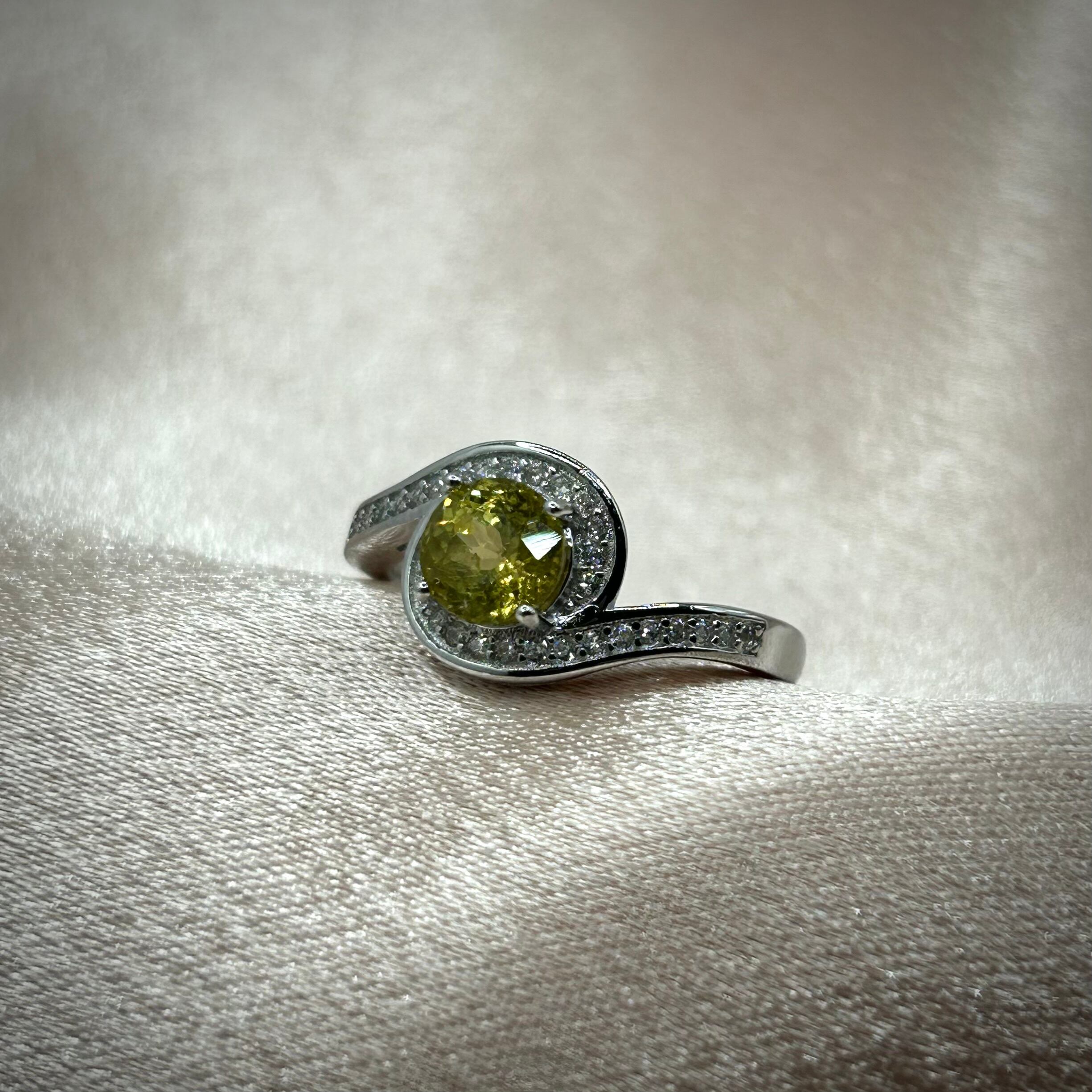 滑らかなアールデザインと、イエローカラーに輝くマリガーネットが目を惹き、艶やかな印象のリングです。