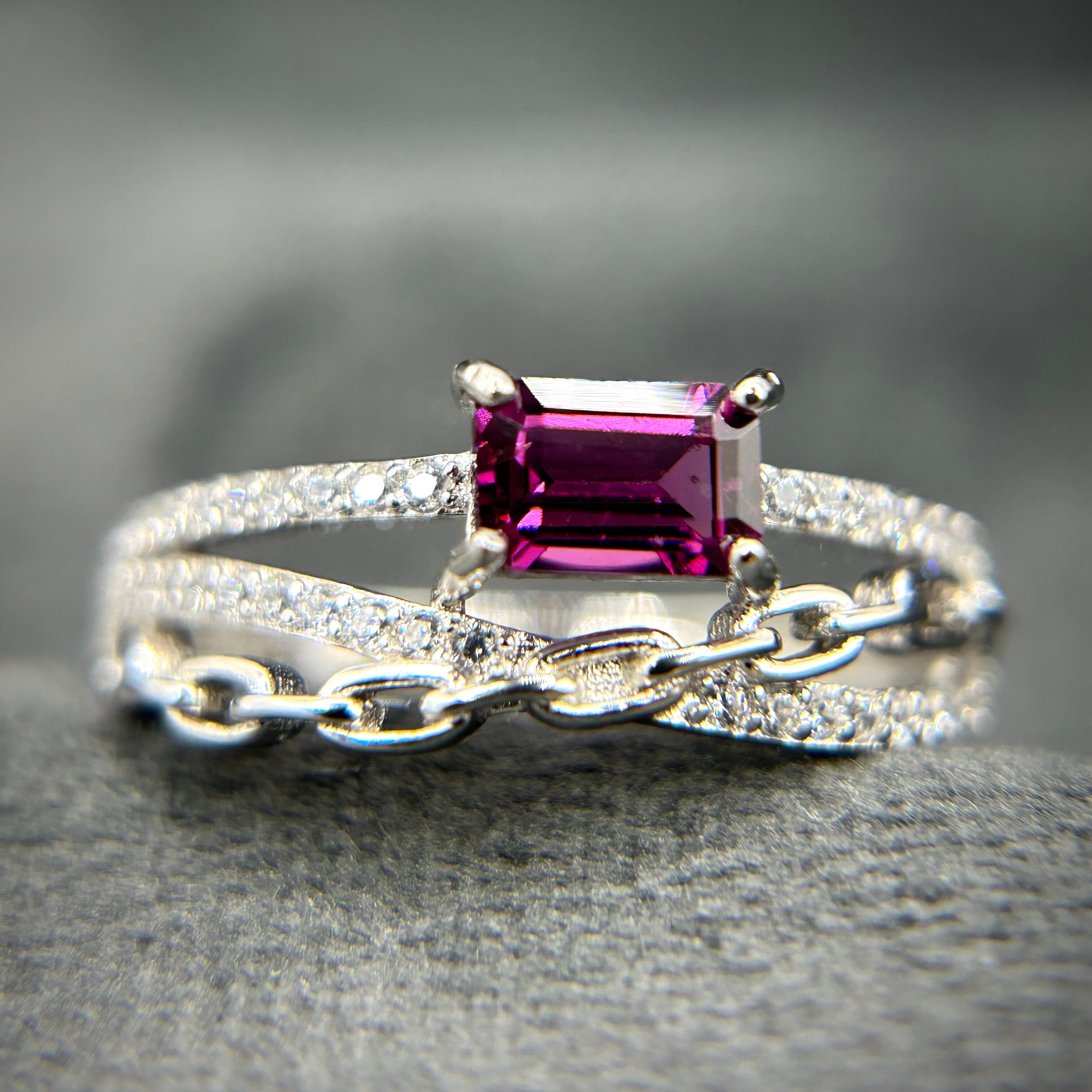 シルバー製 ロードライトガーネットを使用したスタッキングリング。