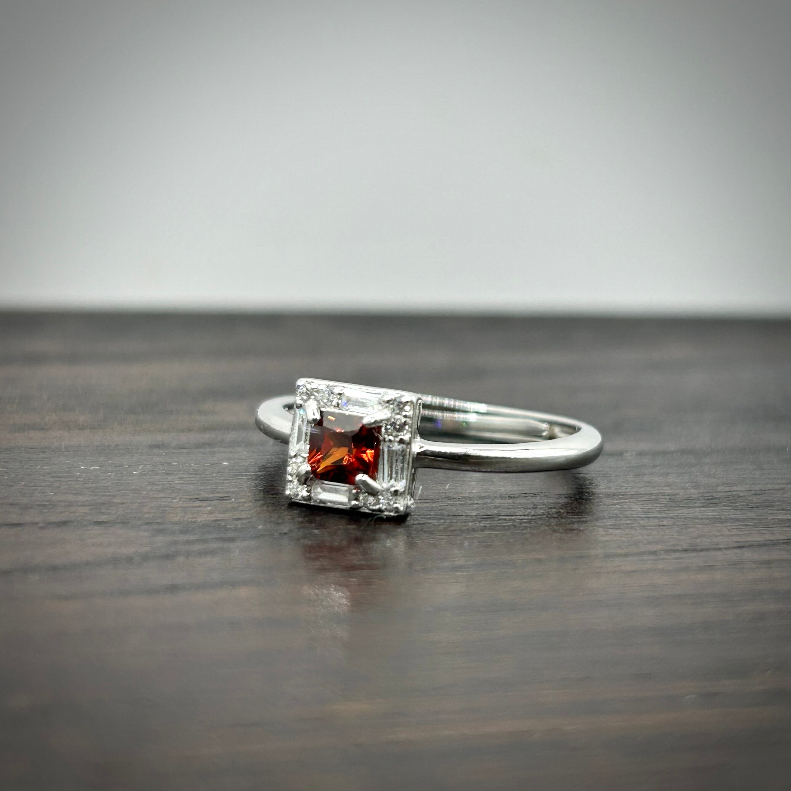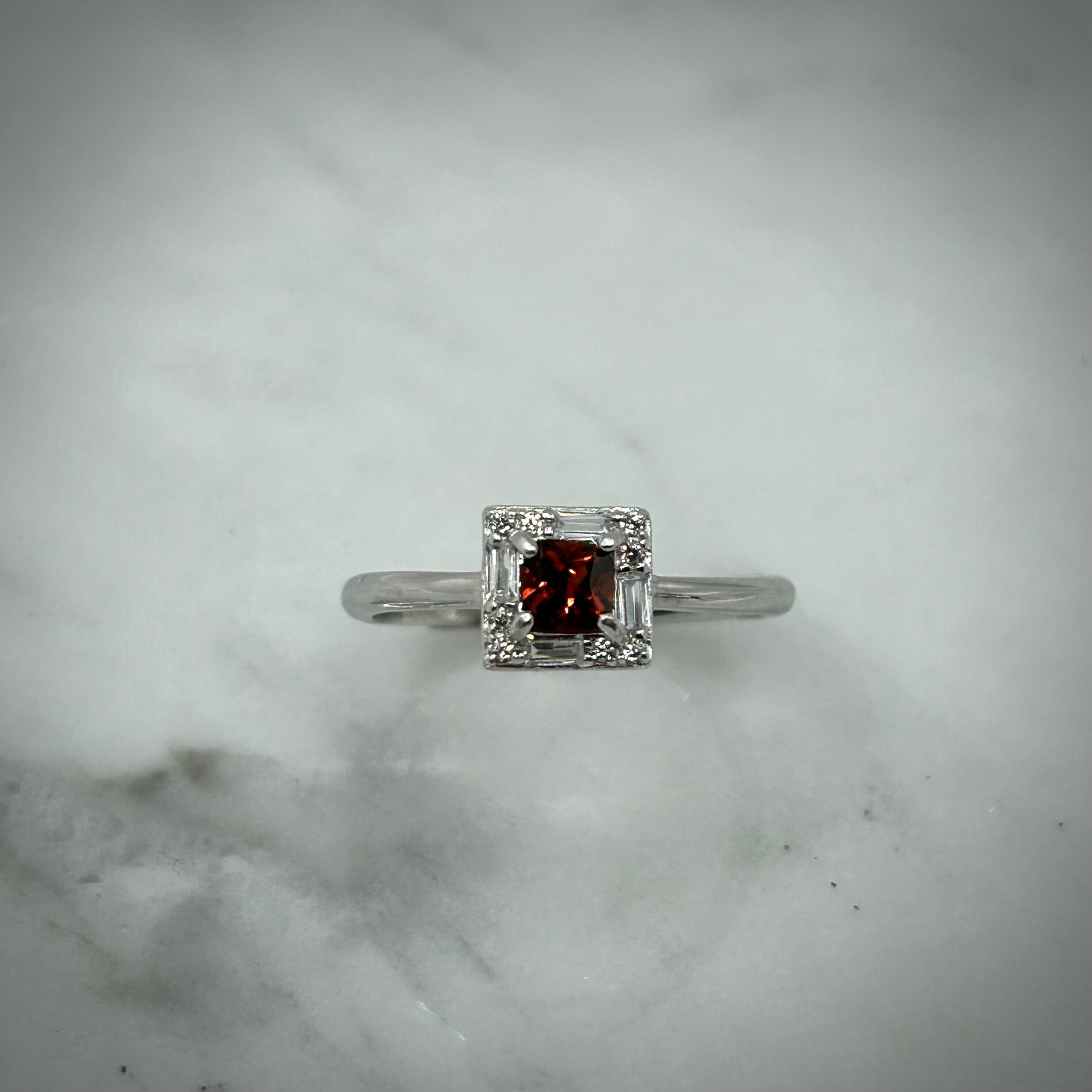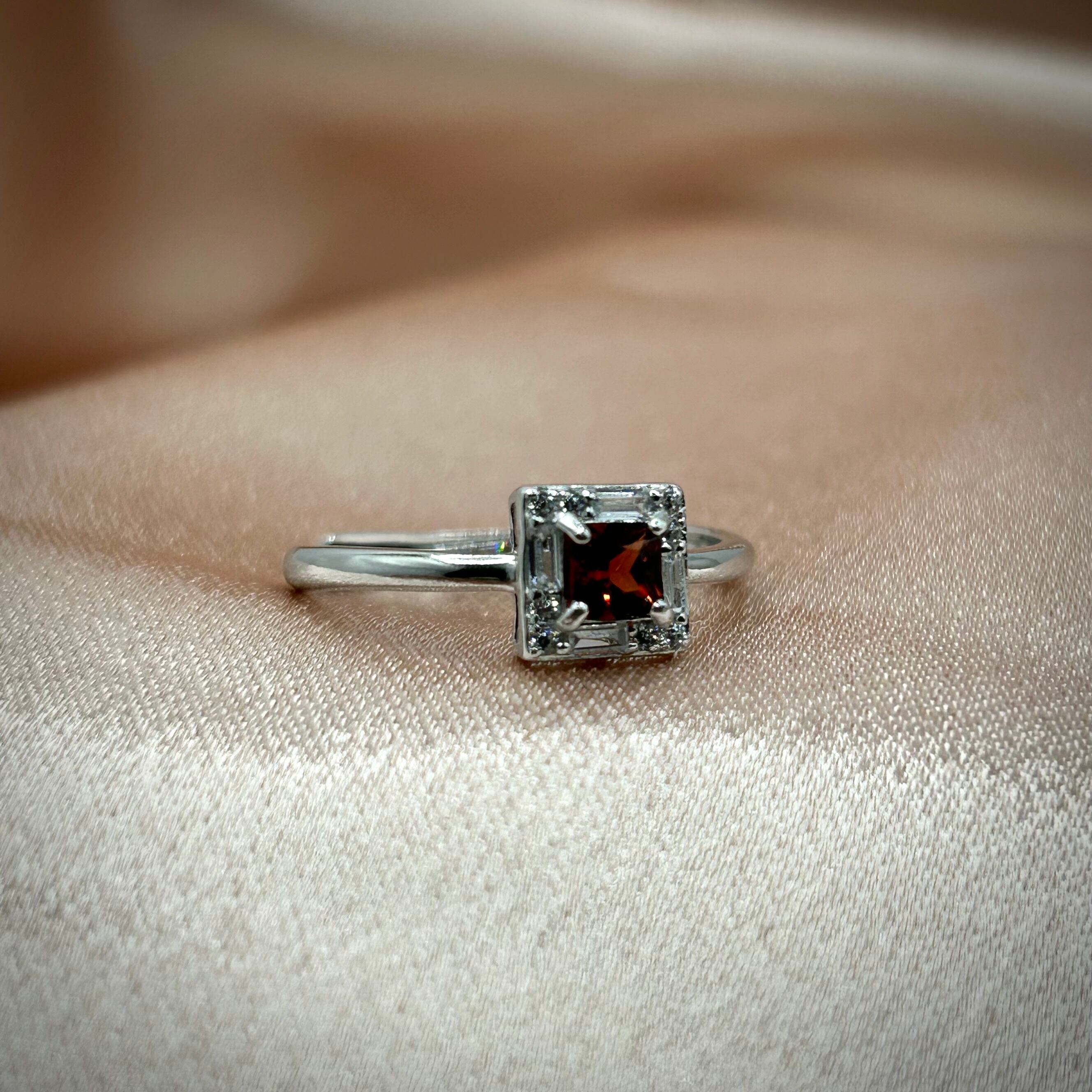 シルバー製 スペサルティンガーネット スクエアリング 1月誕生石 フリーサイズ