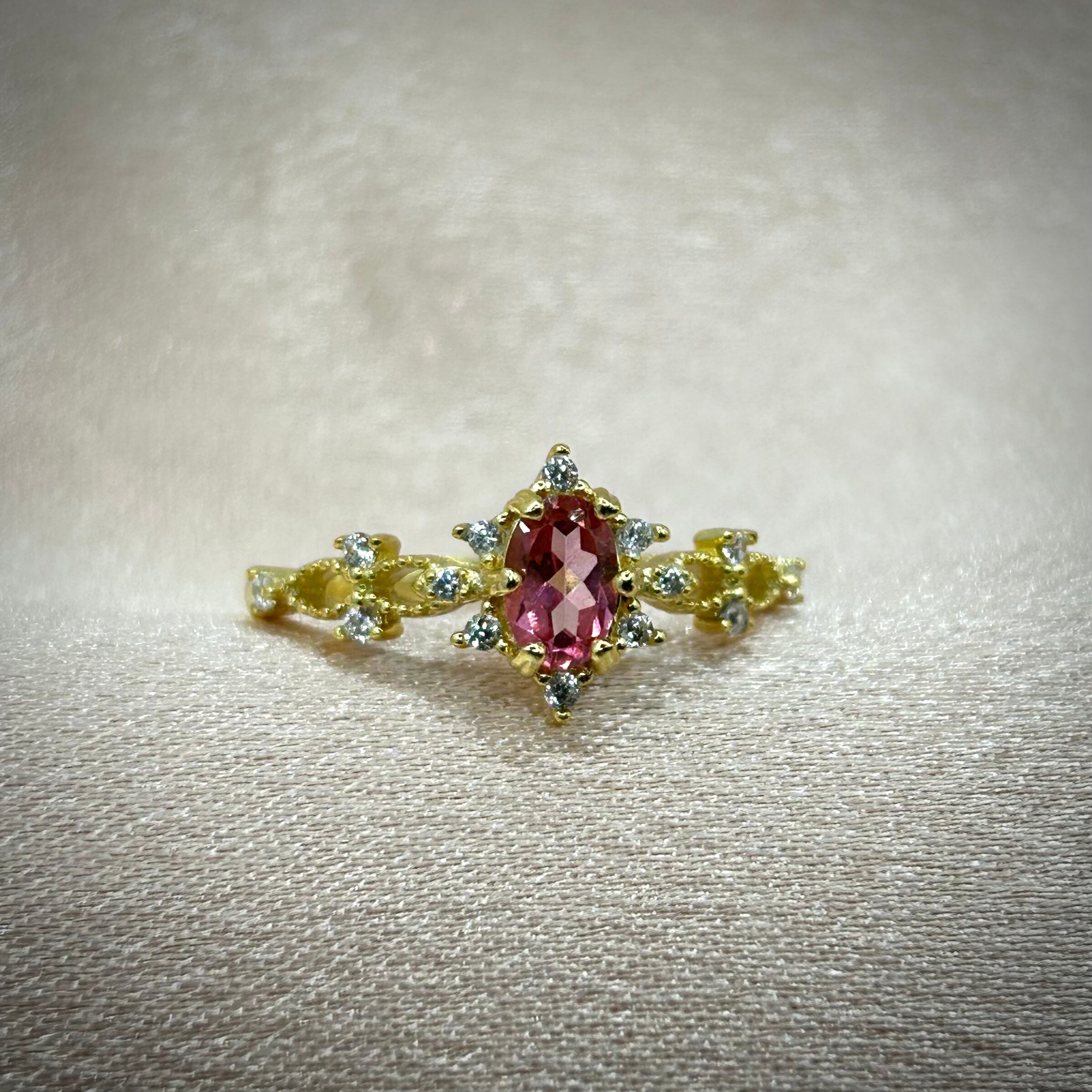 シルバー製ゴールドカラー、ピンクトパーズのソーンリング。