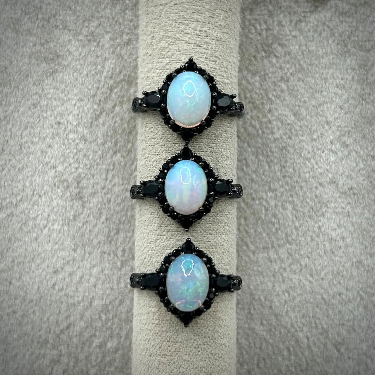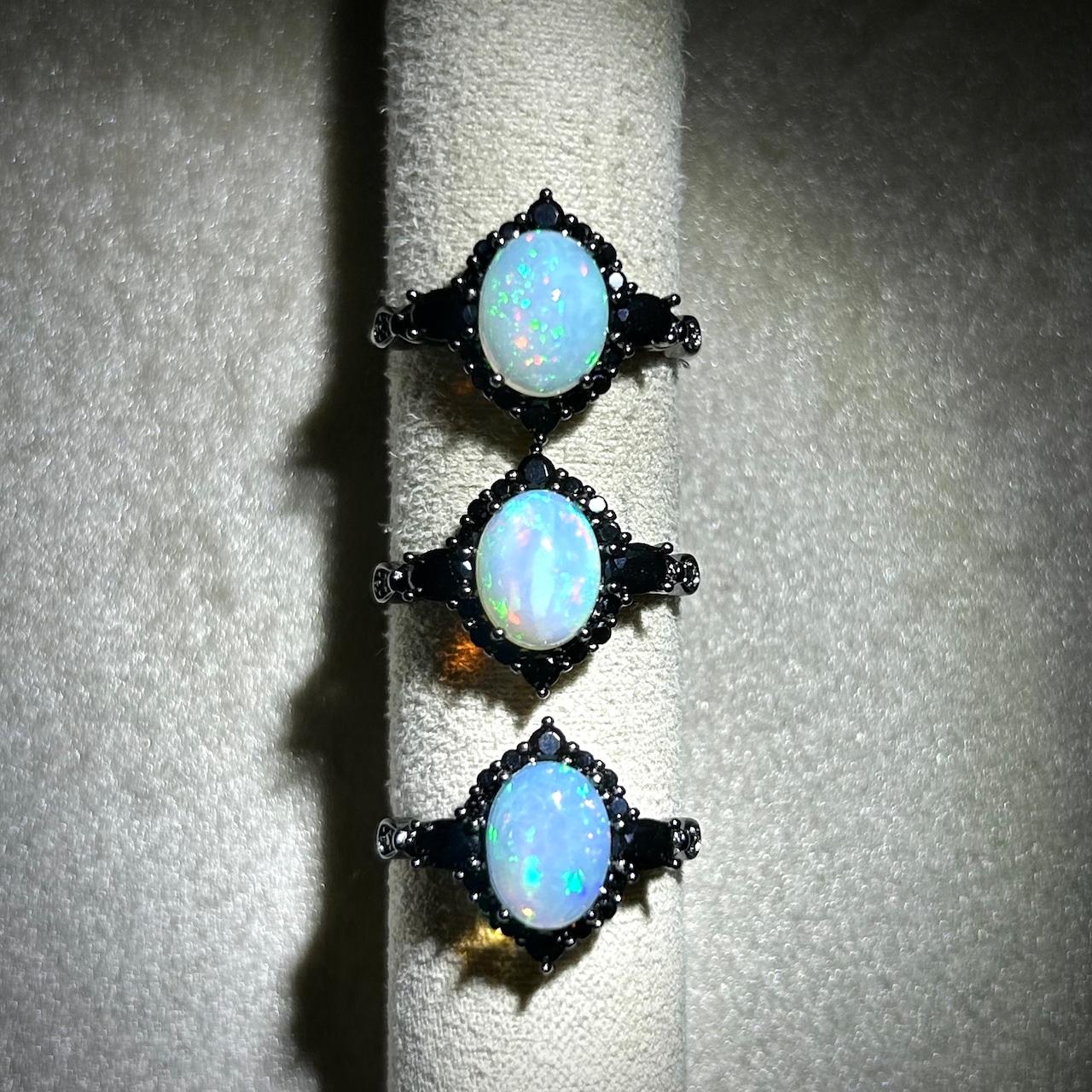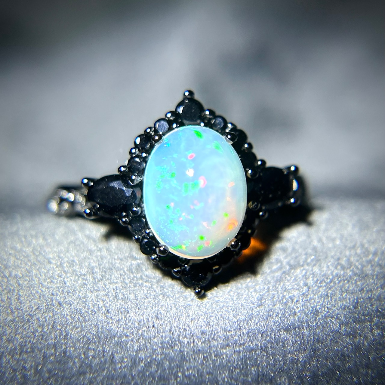 シルバー製ブラックカラー オパールのミッドナイトリング。
