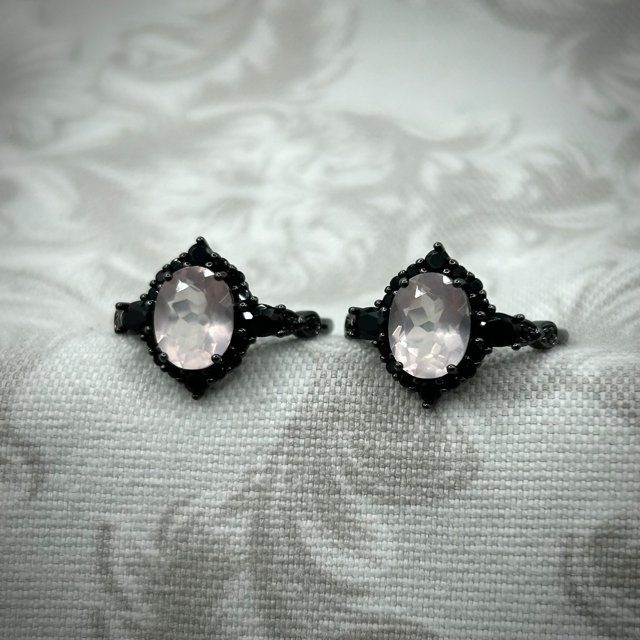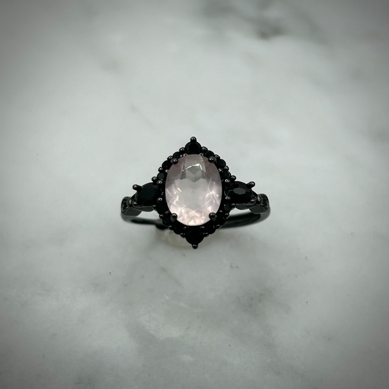 シルバー製ブラックカラー、ローズクォーツのミッドナイトリング。