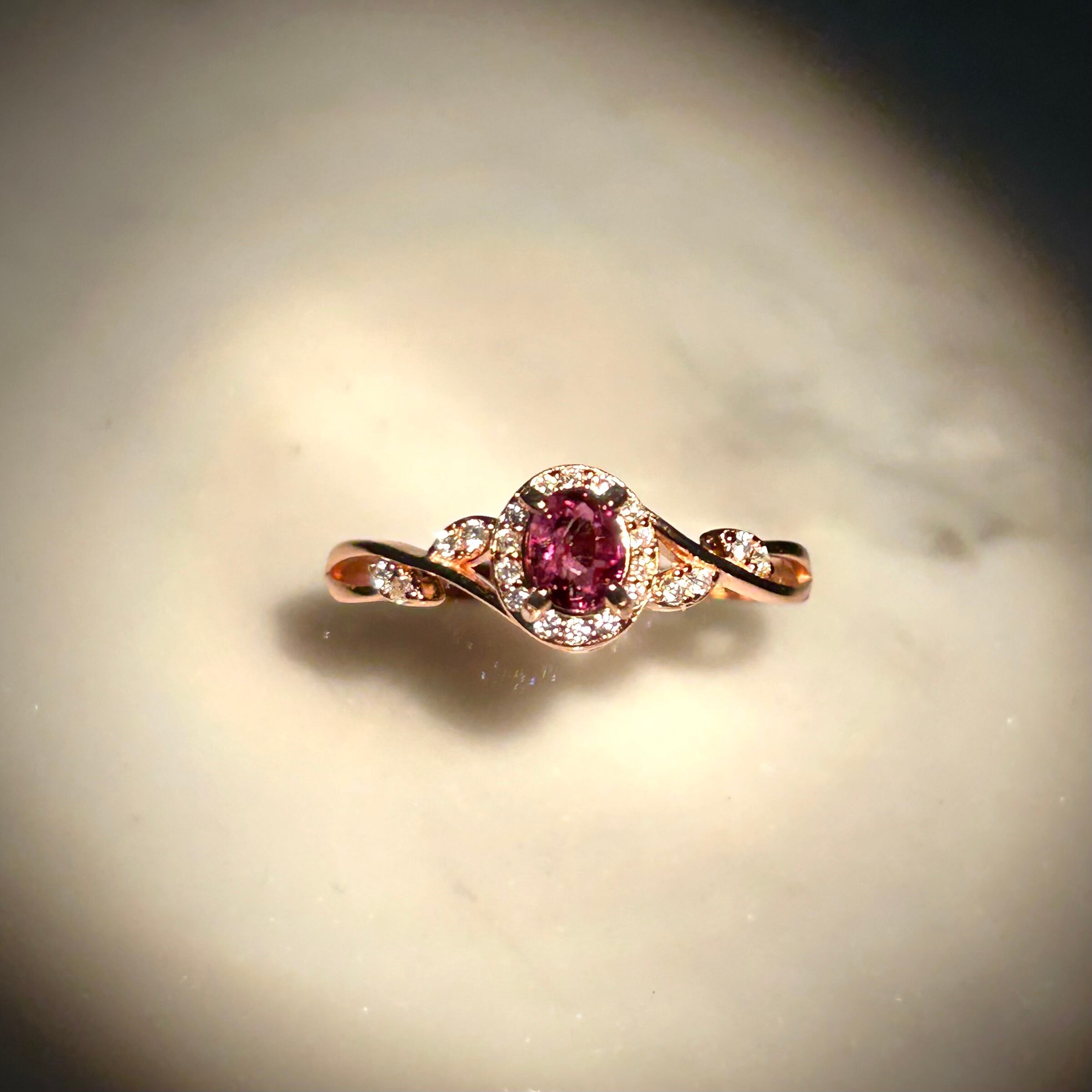 落ち着いた色味のピンクカラーのサファイアを使用。