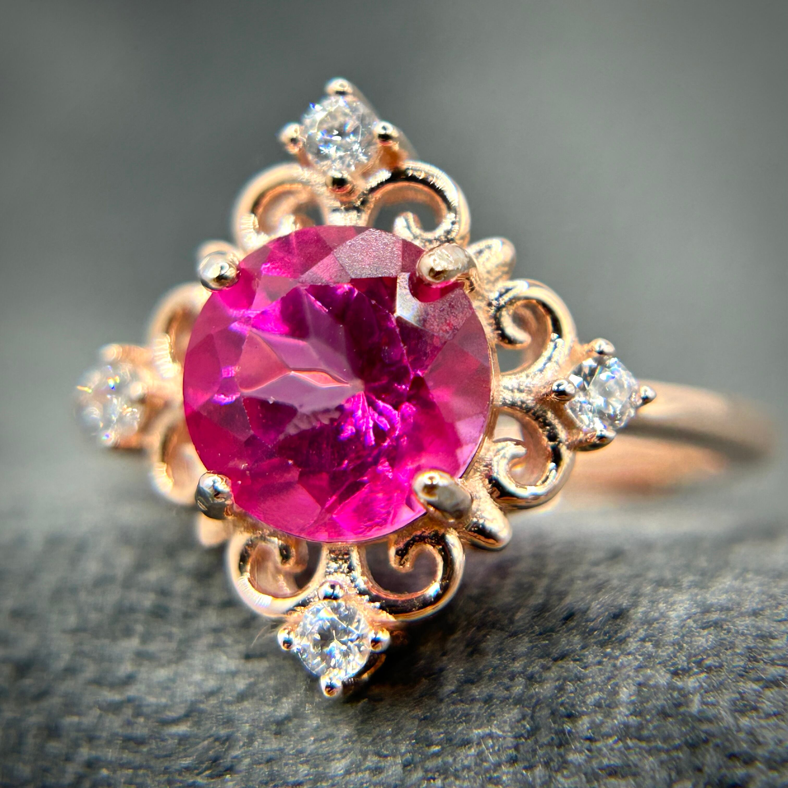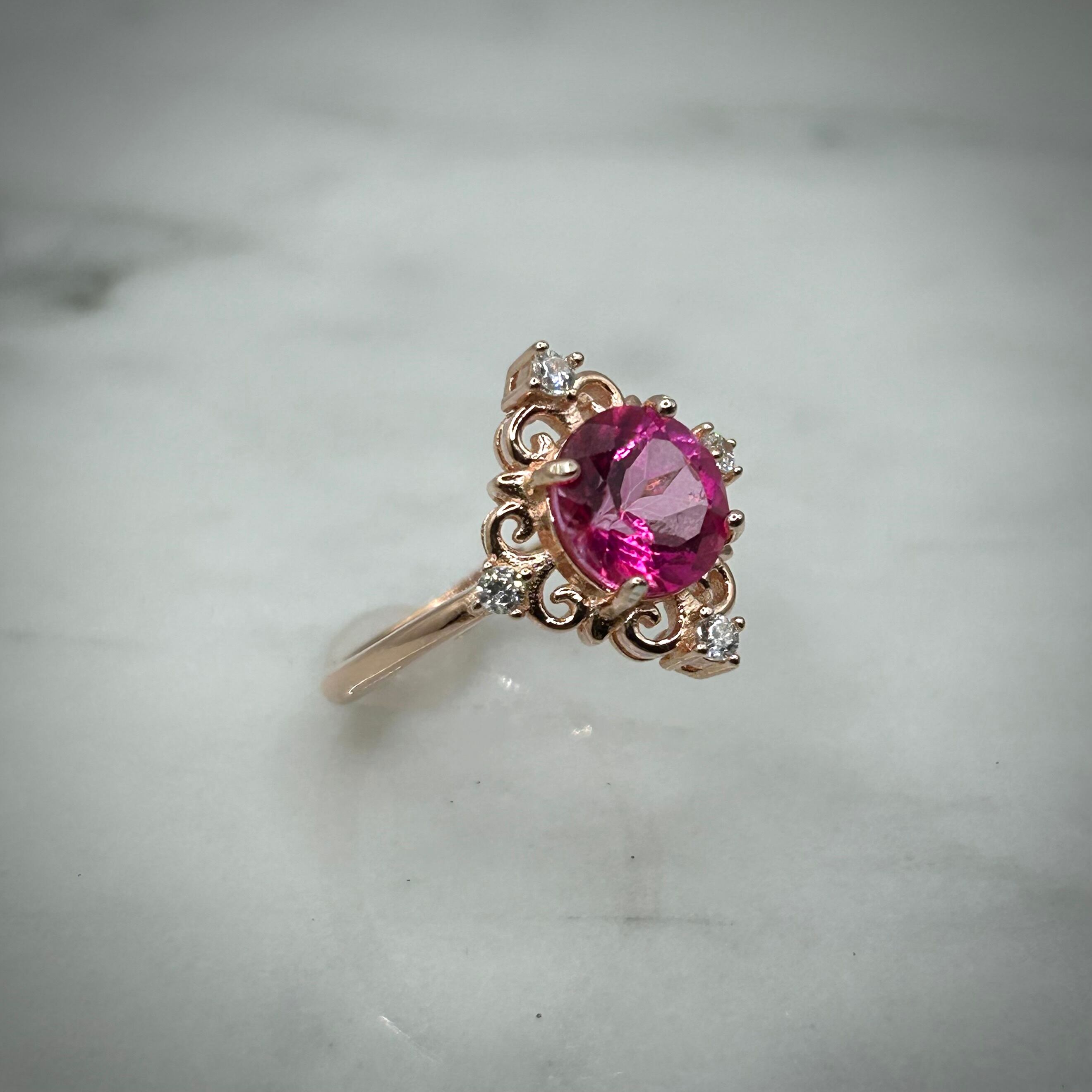 シルバー製ピンクゴールドカラー、ピンクトパーズのアンティークデザインリング。