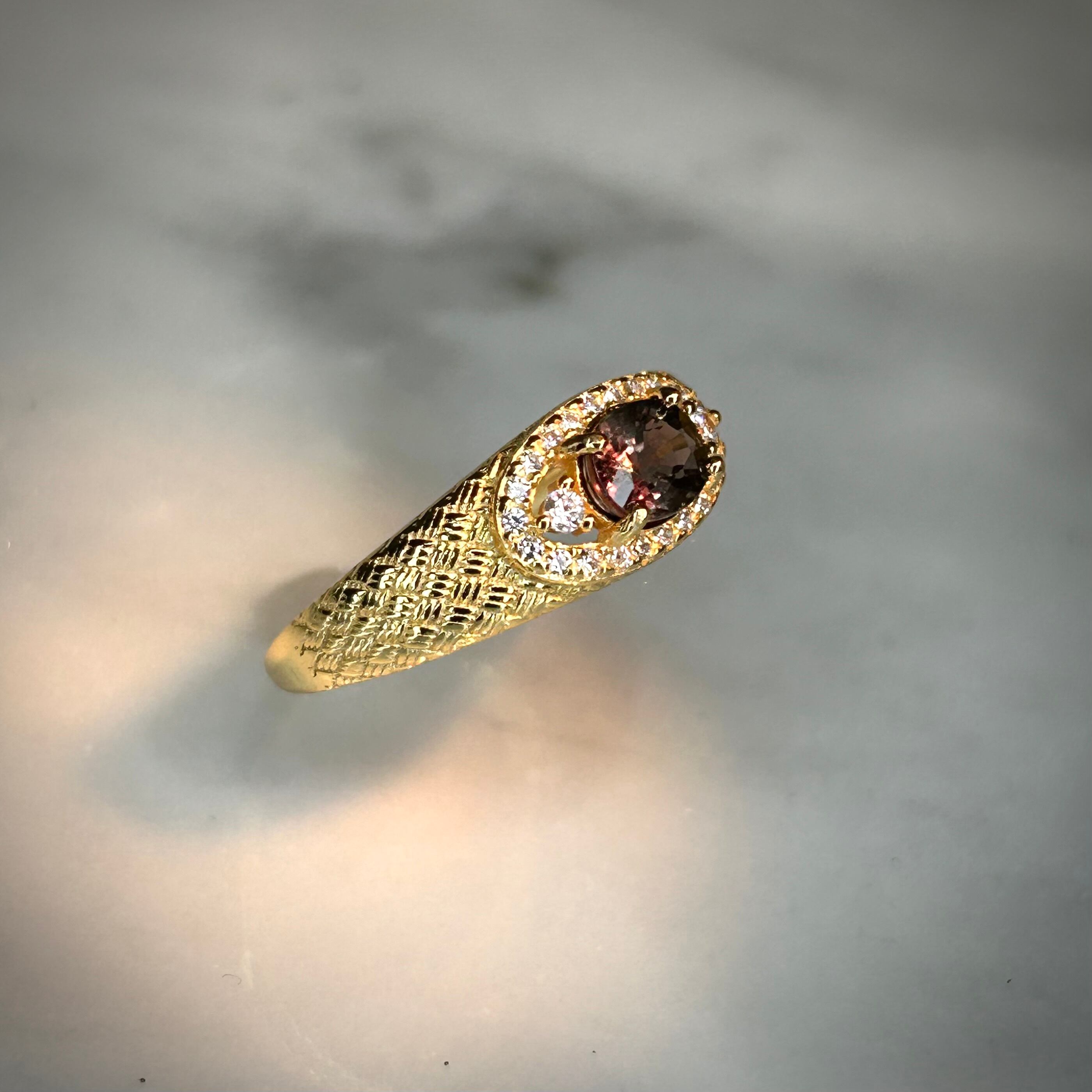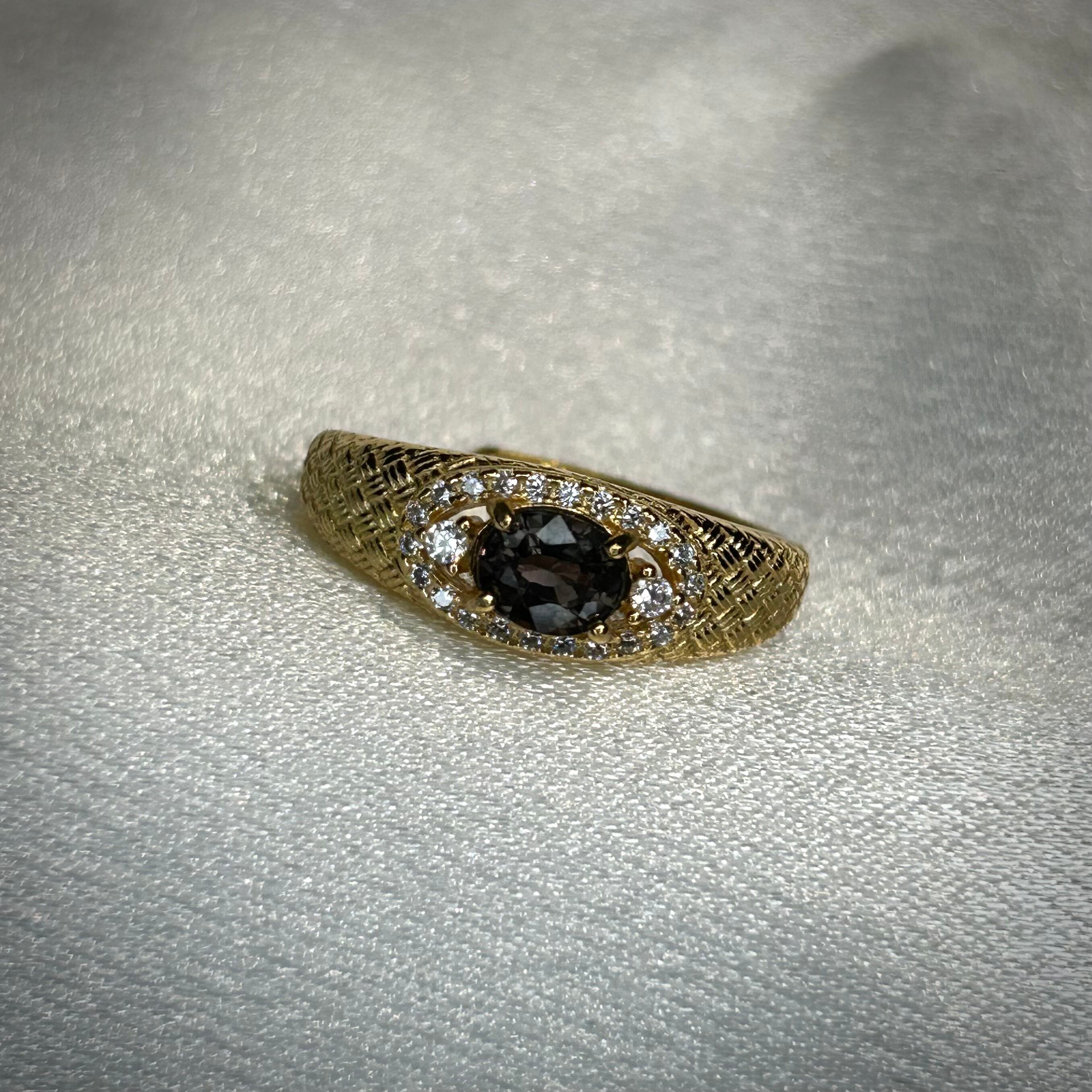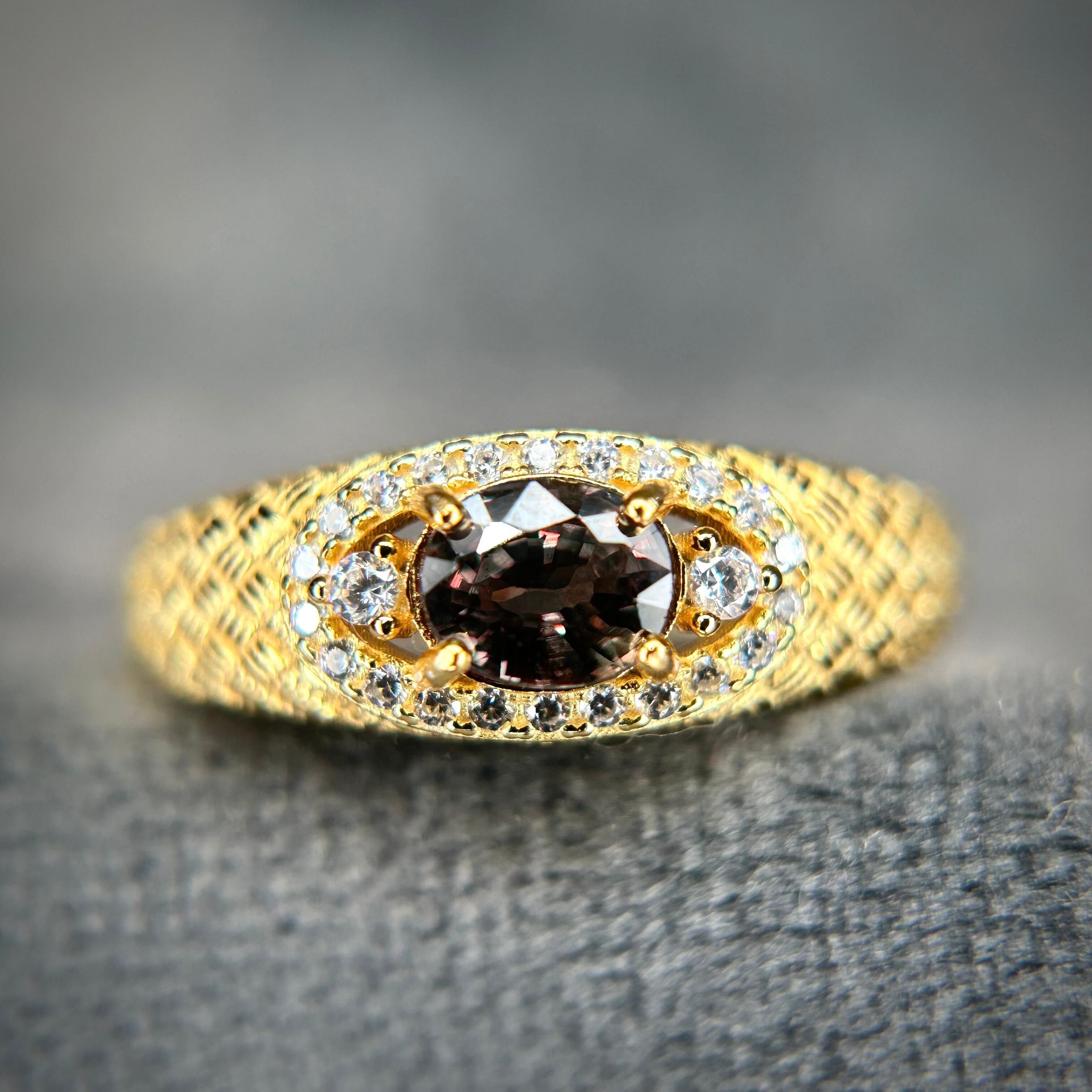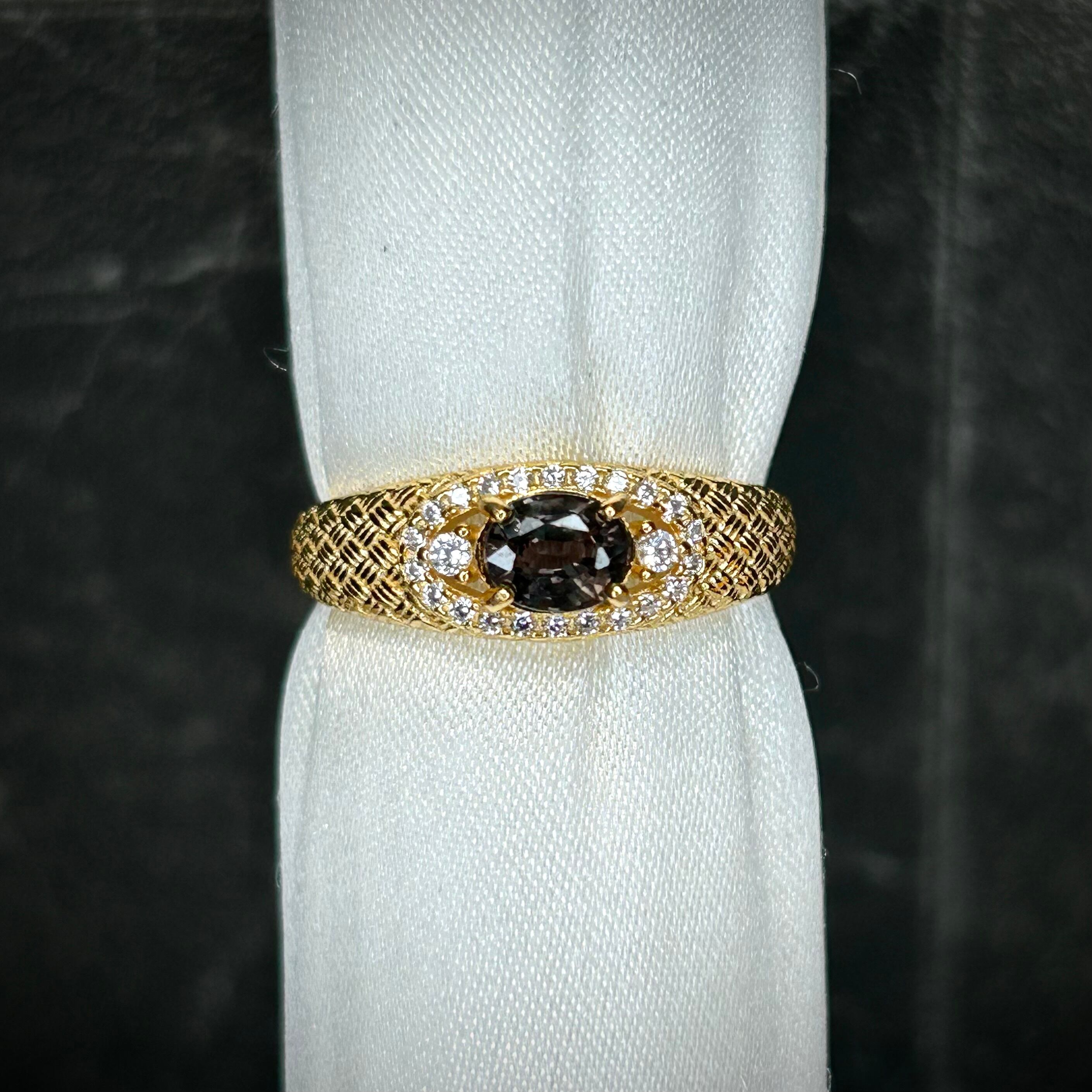 シルバー製ゴールドカラー、サファイアのメッシュデザインリング。