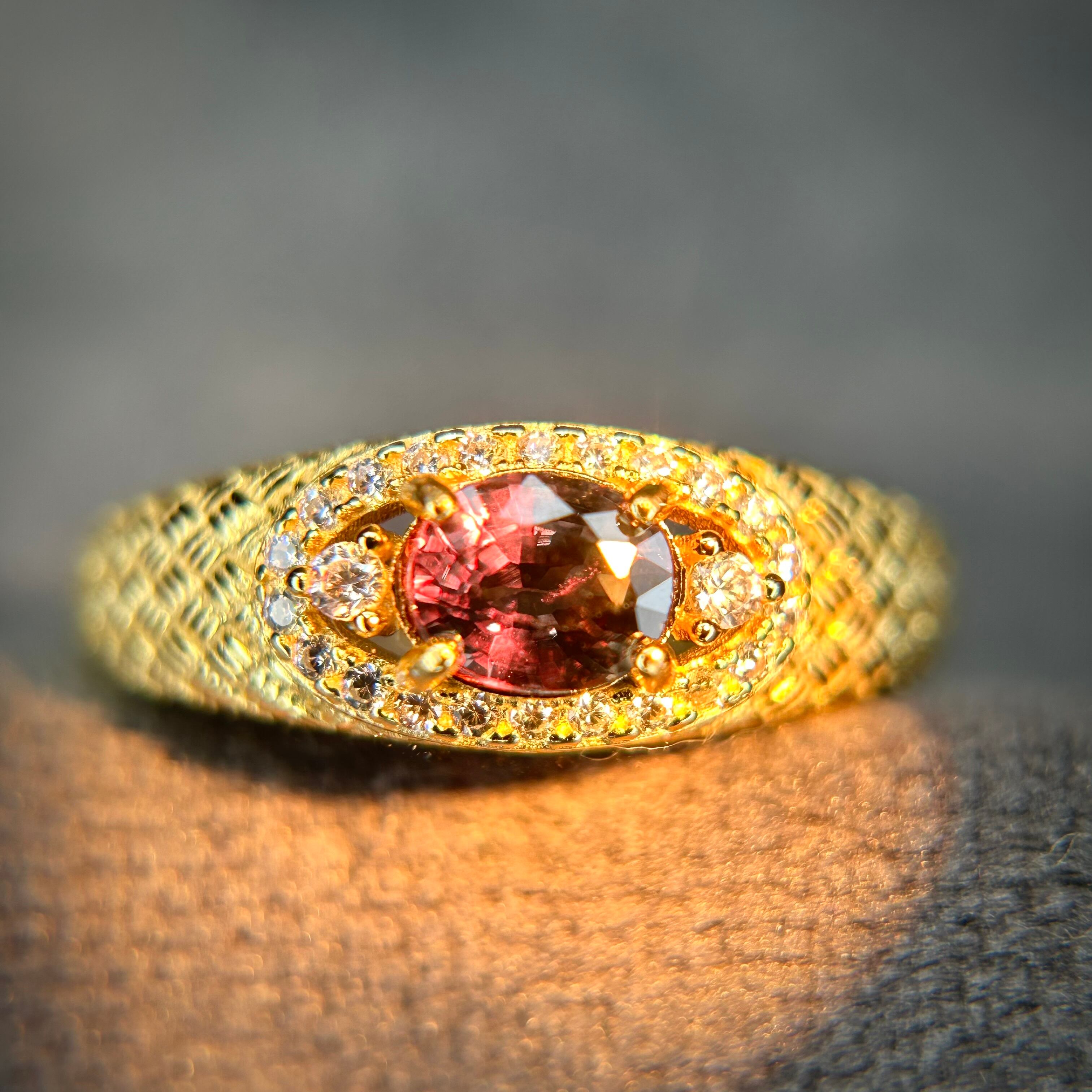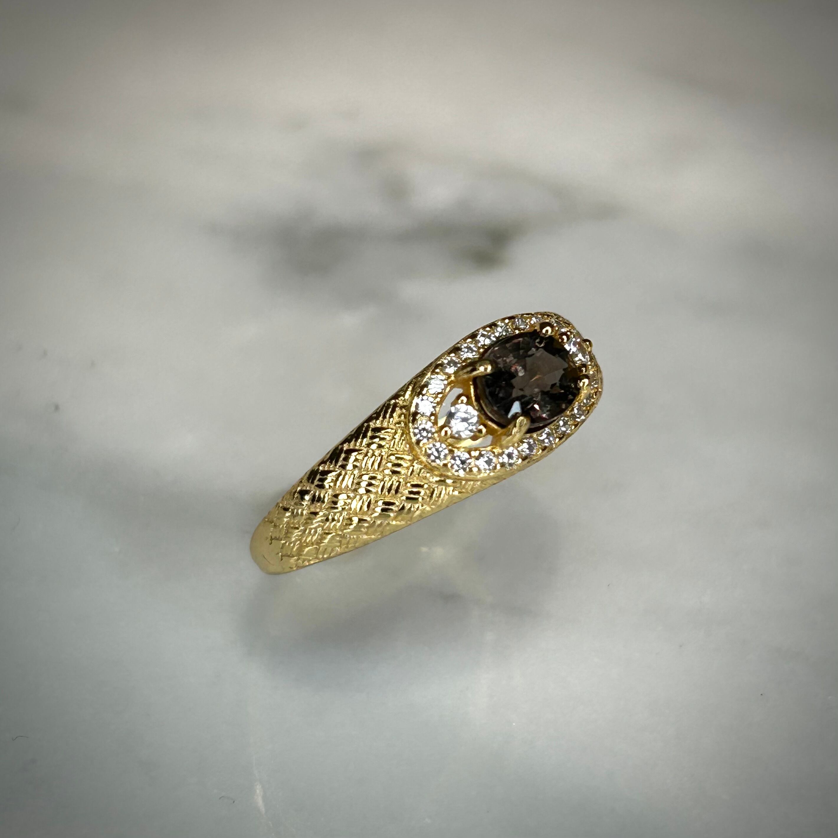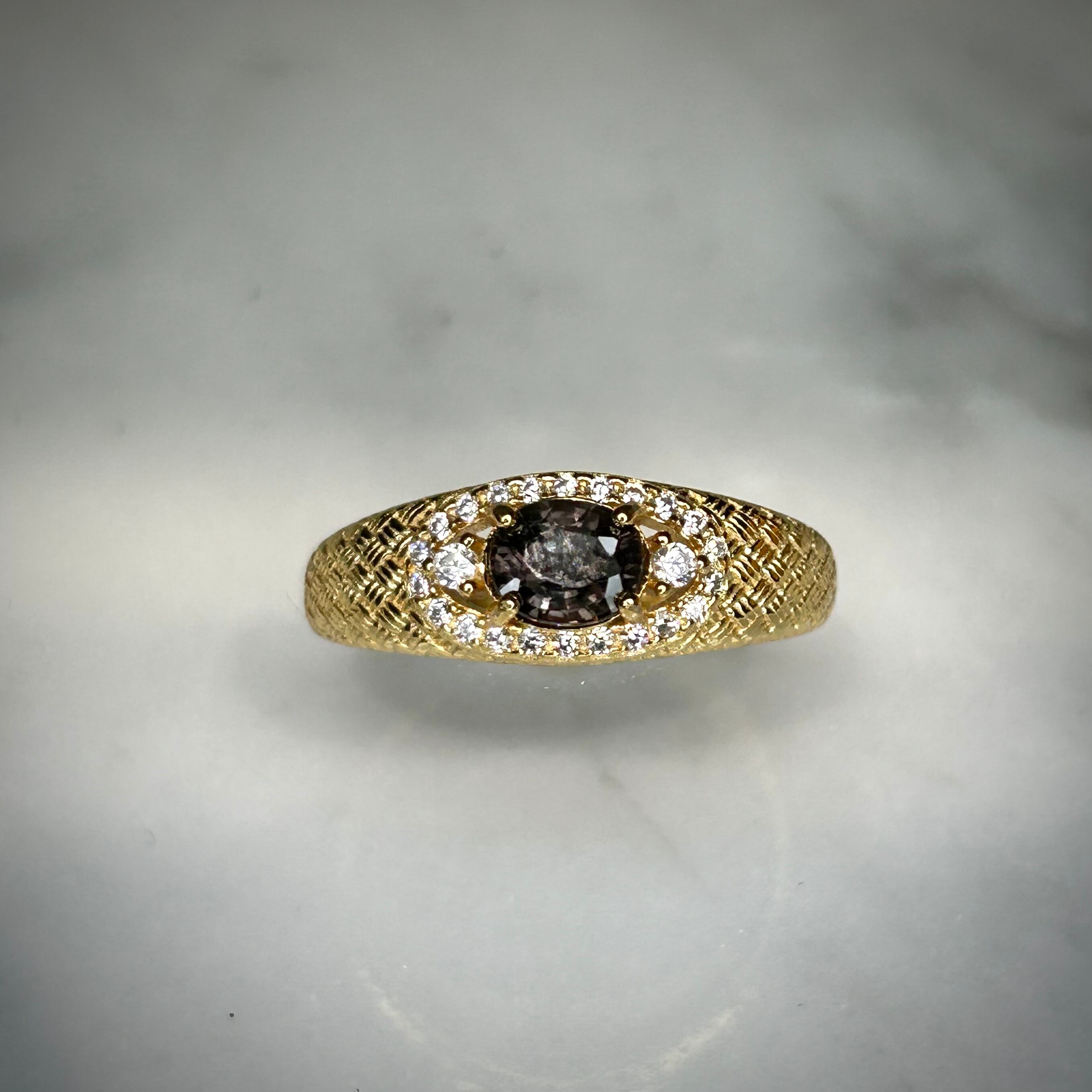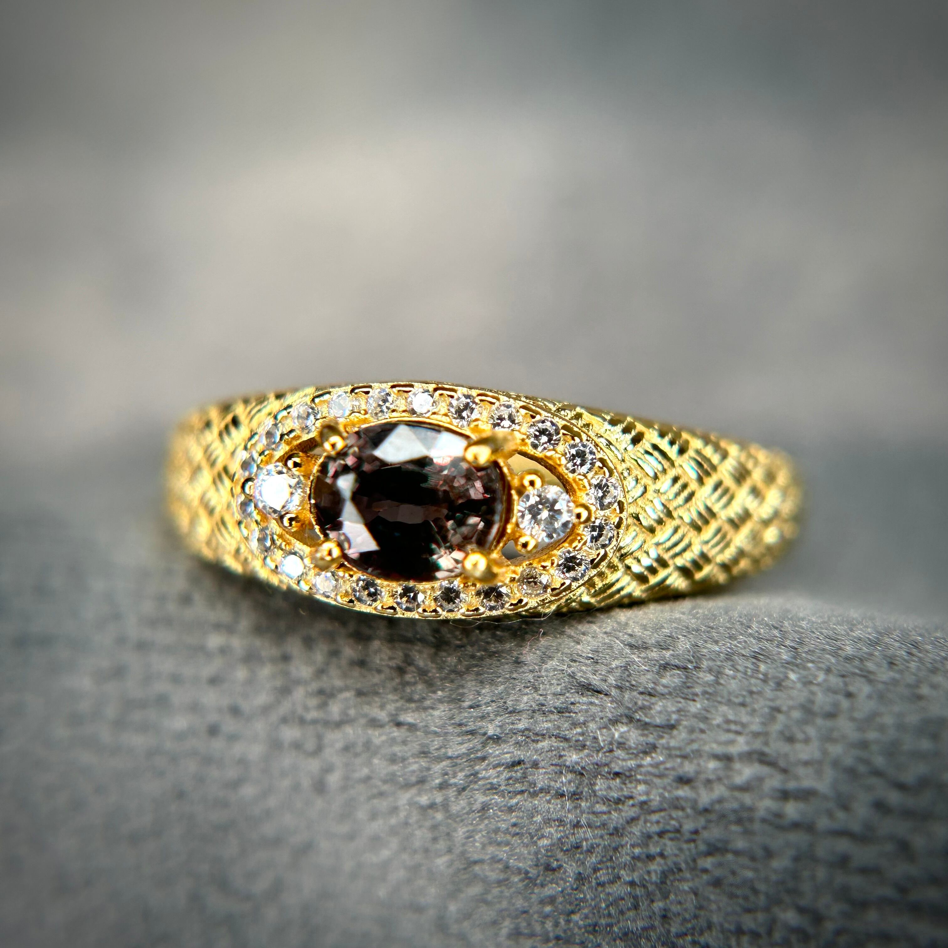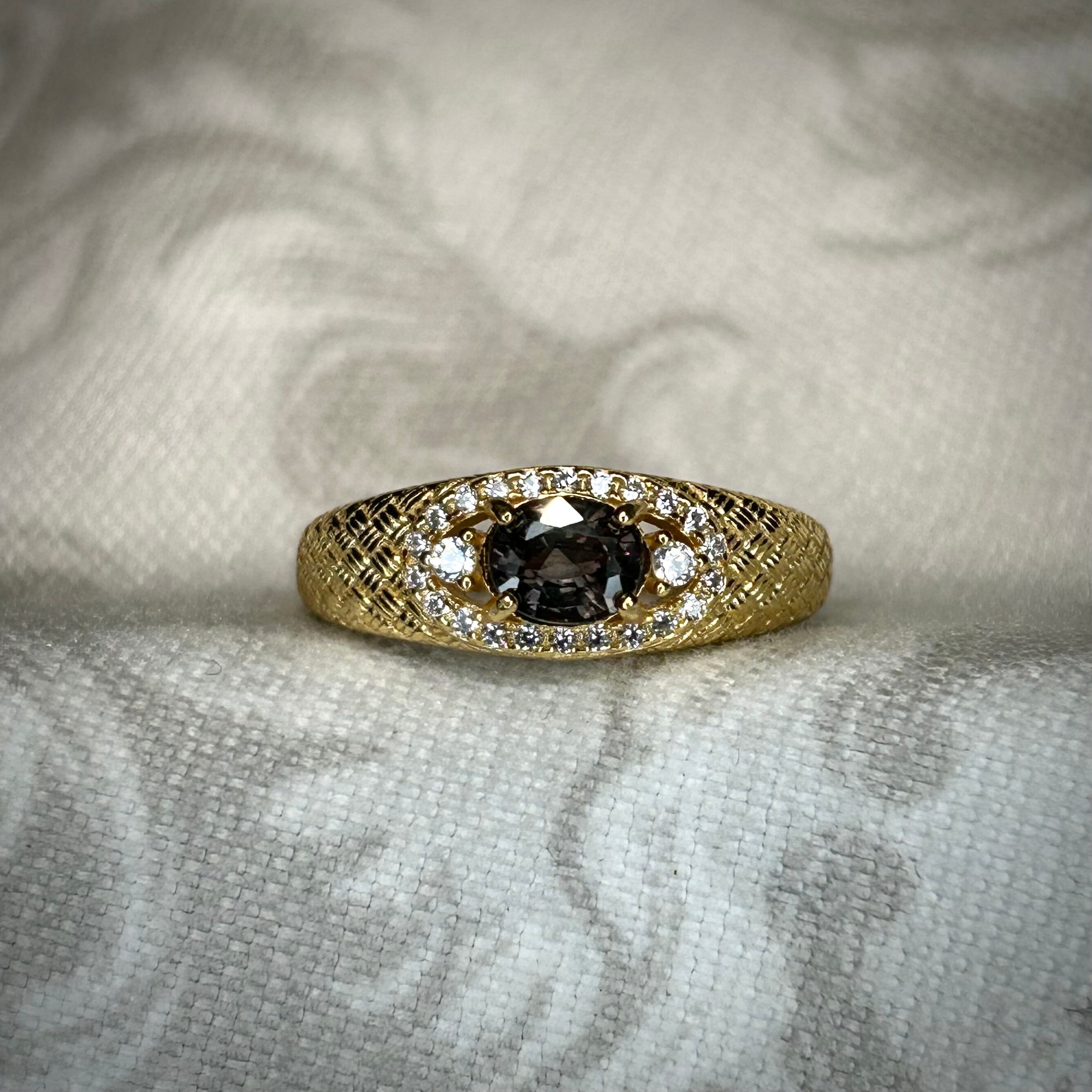 シルバー製ゴールドカラー、サファイアのメッシュデザインリング。