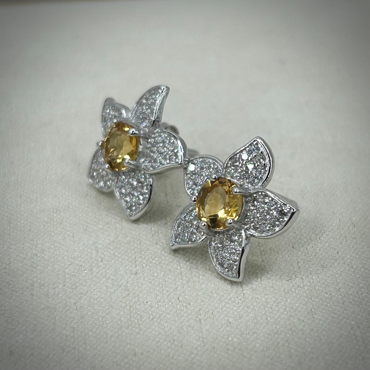 シルバー製 シトリン フラワーピアス 11月誕生石 1ペア