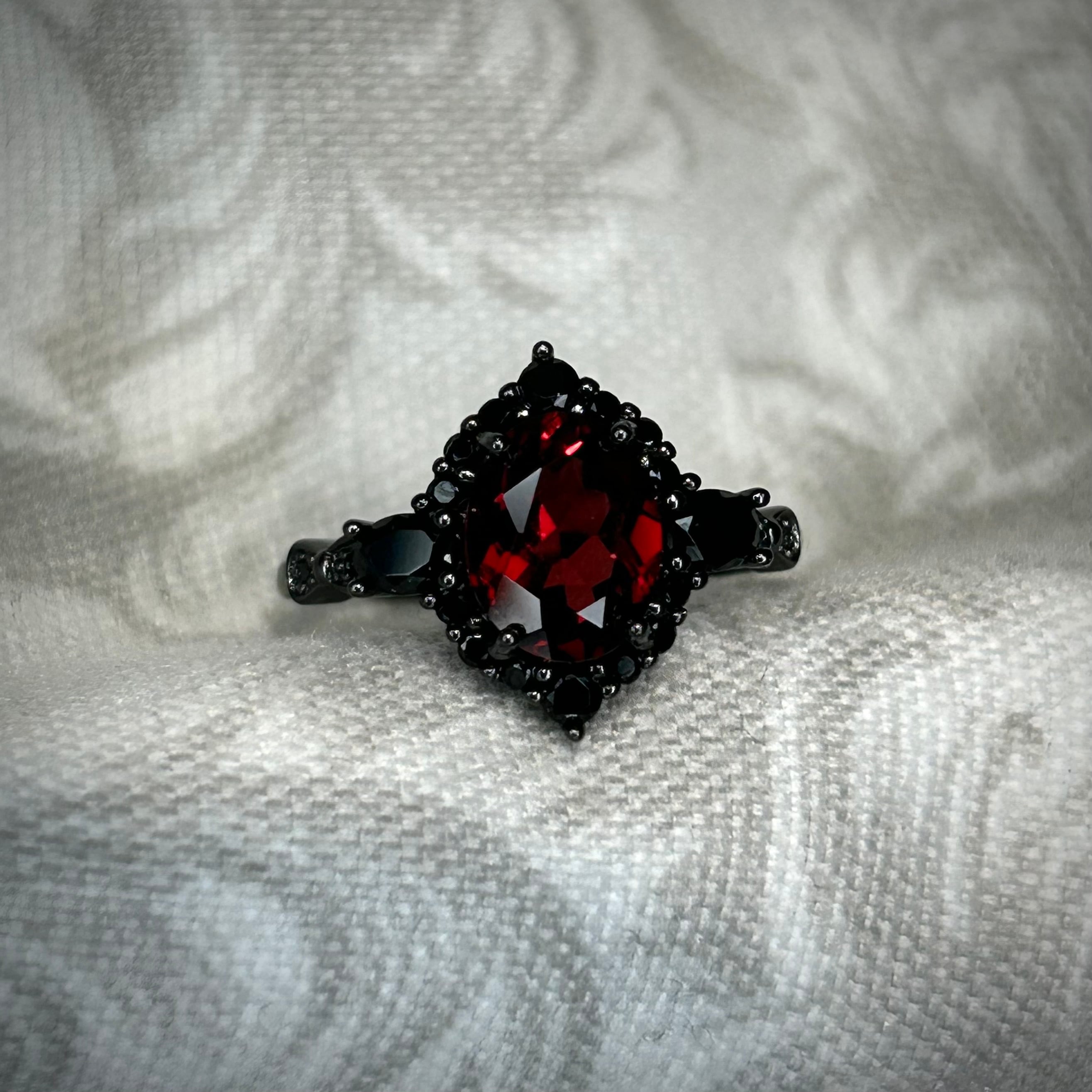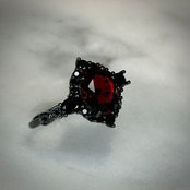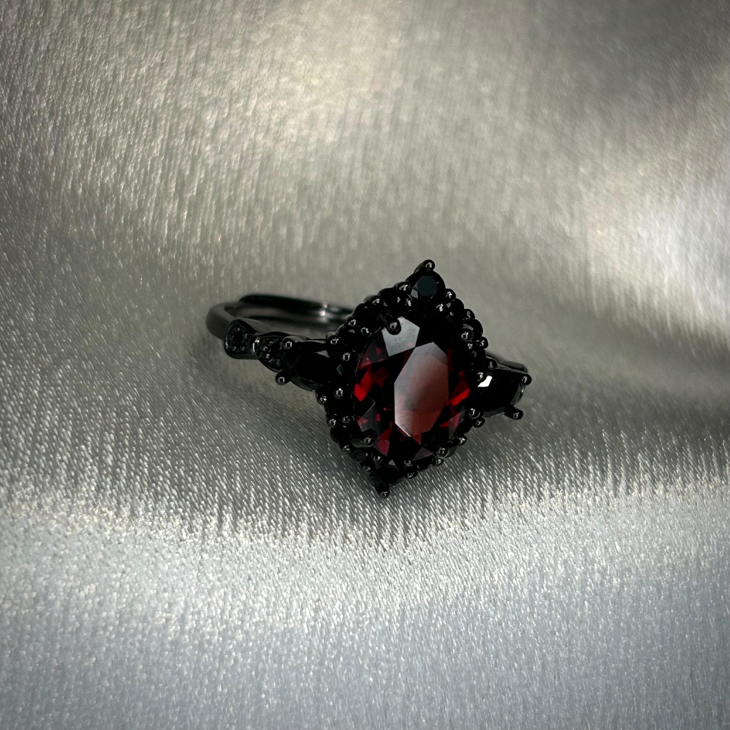 シルバー製ブラックカラー、ガーネットのミッドナイトリング。