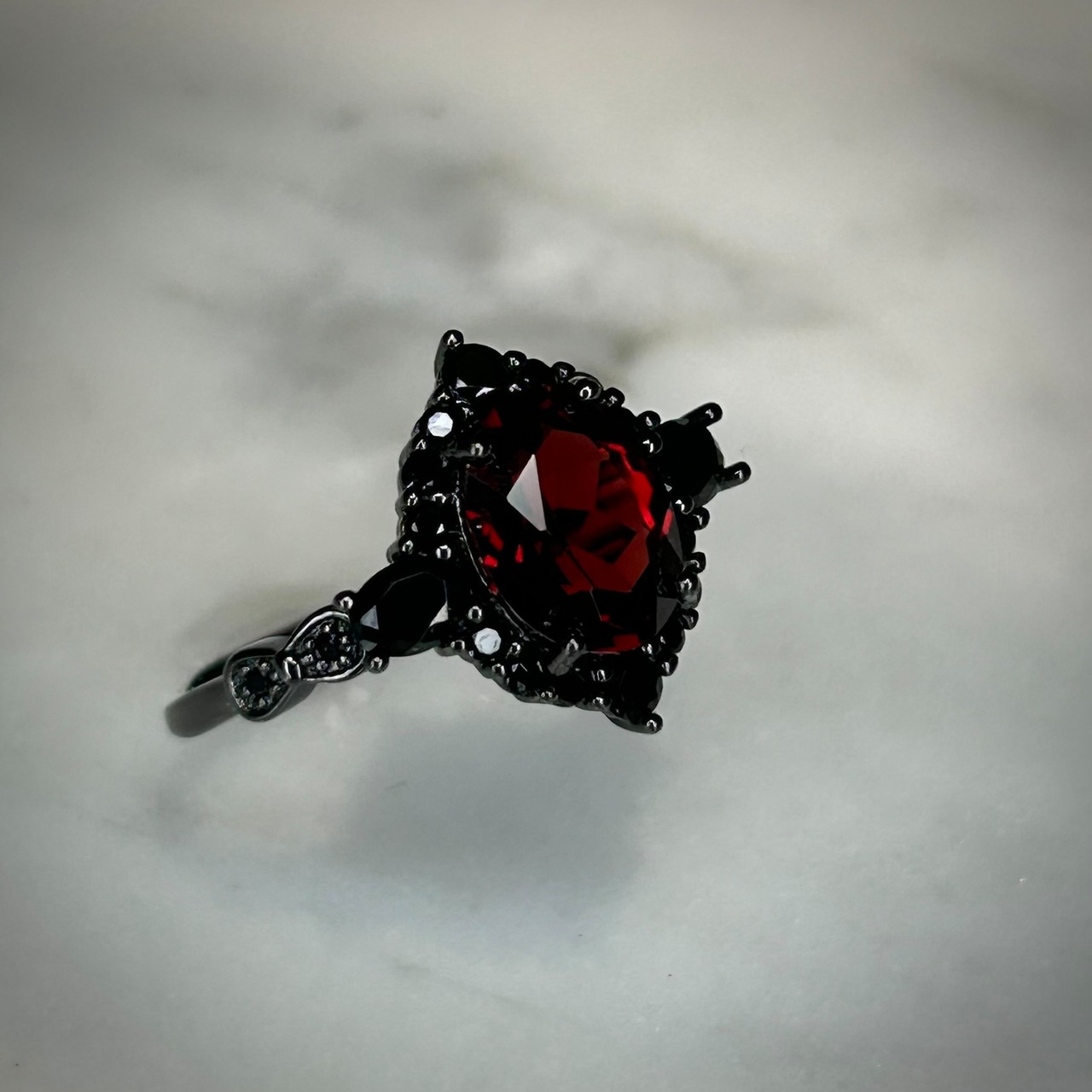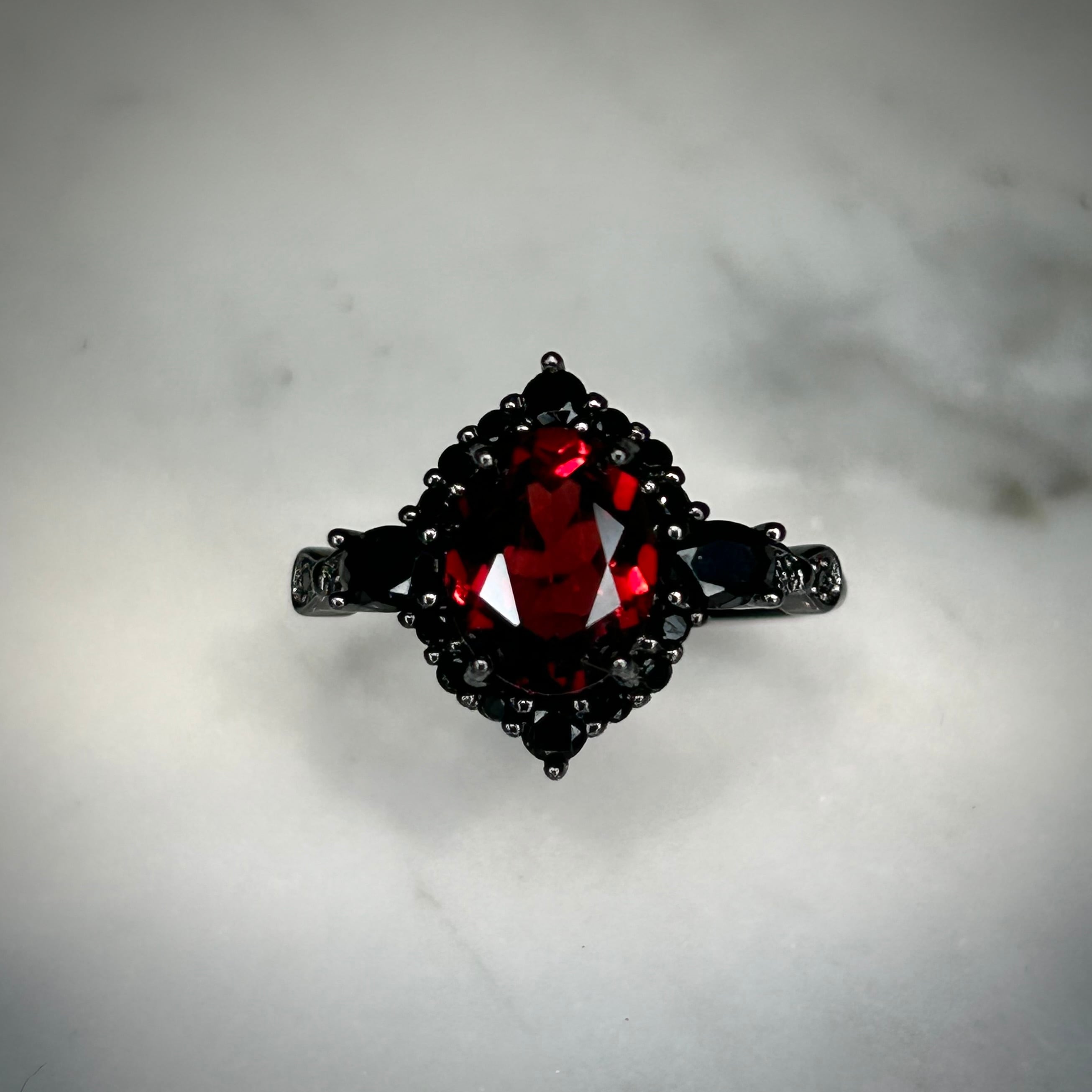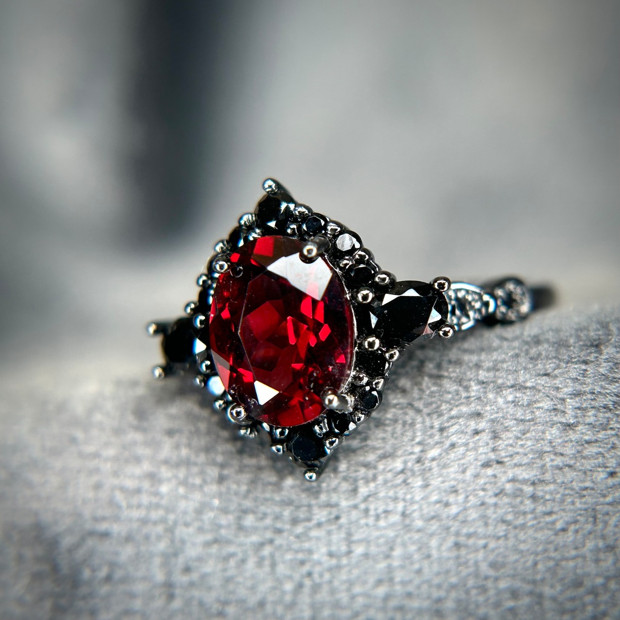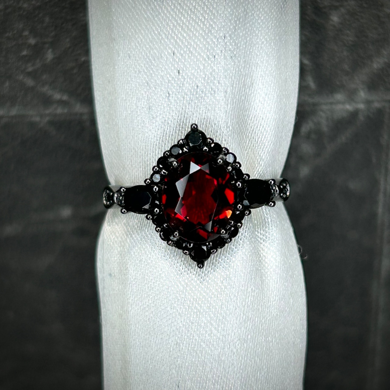 ブラックだからこそ美しいガーネットが映えます。