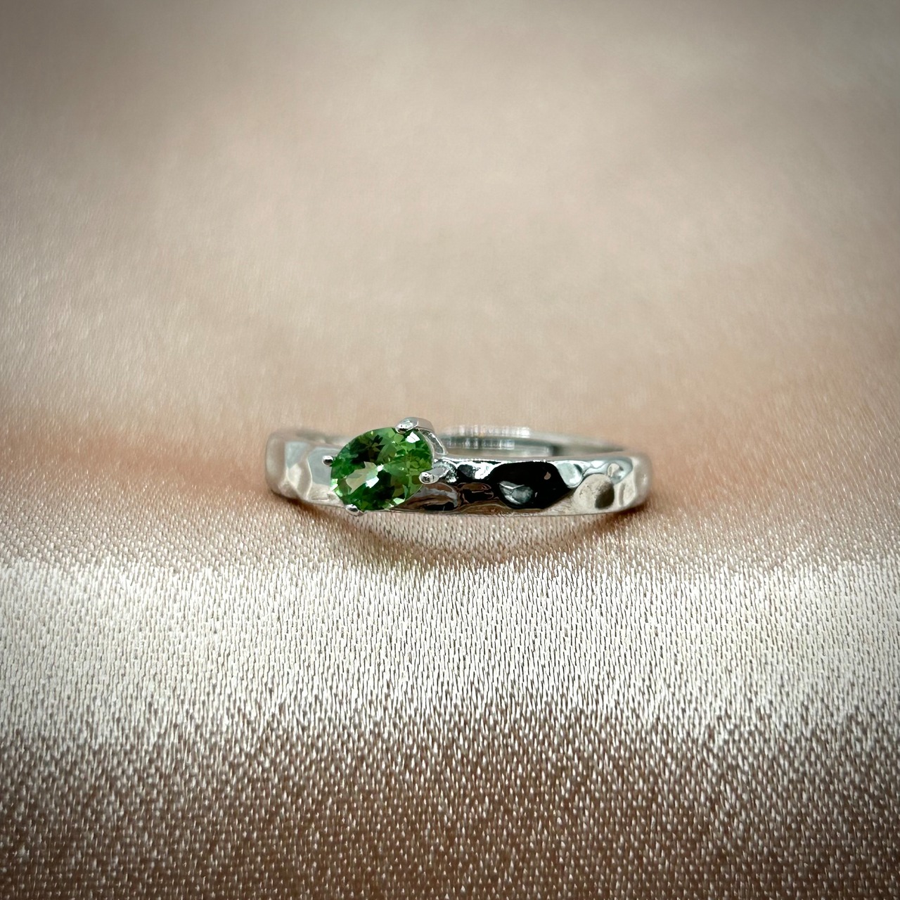 シルバー製 ツァボライトガーネット テクスチャーリング 1月誕生石 フリーサイズ
