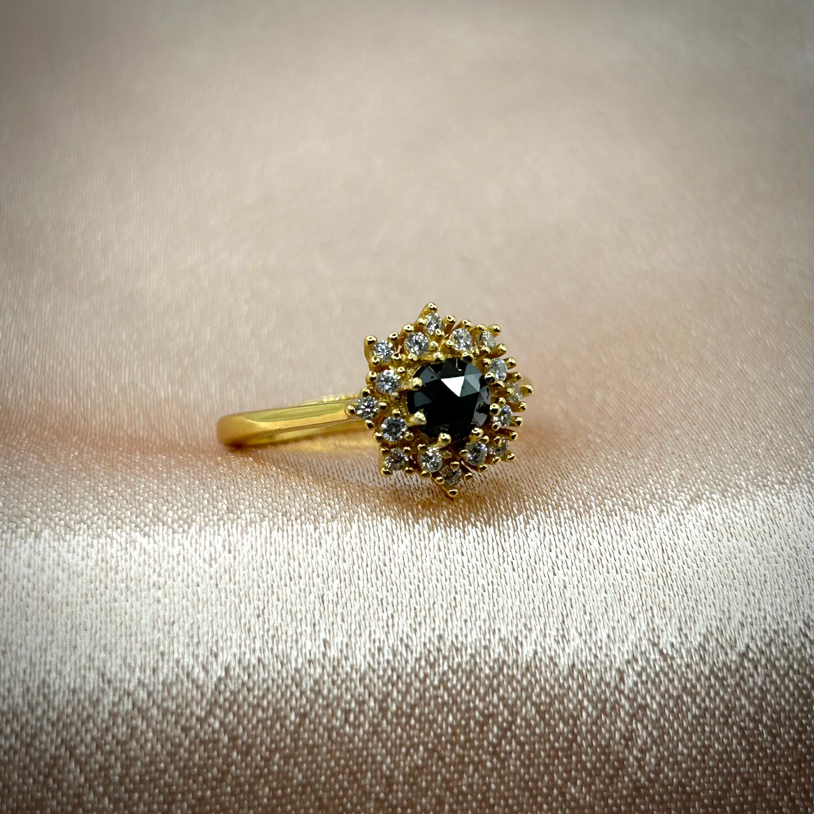 ローズカットで漆黒のカラーのブラックダイヤモンドを使用。