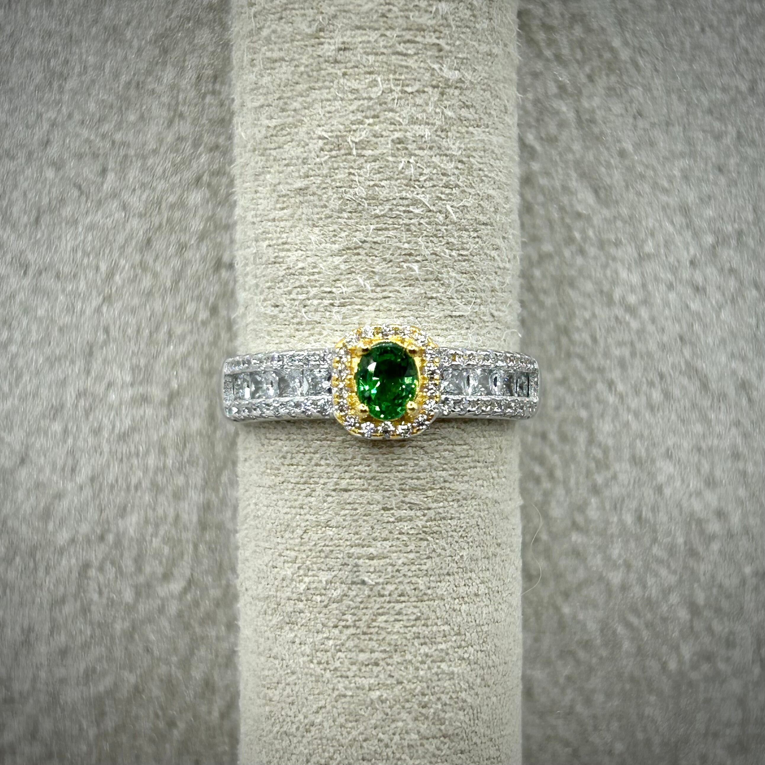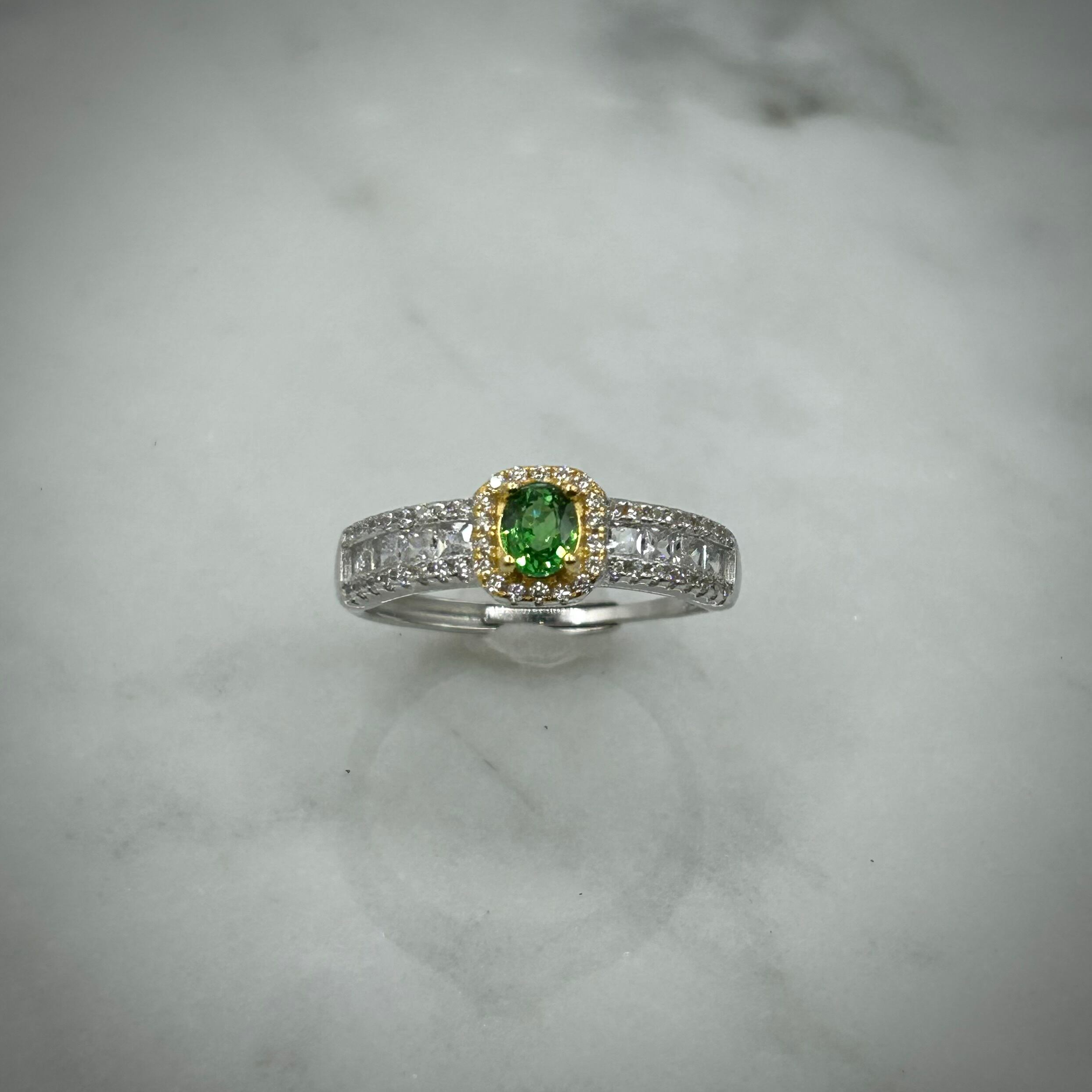 鮮やかなグリーンカラーが目を引くツァボライトガーネットを使用。