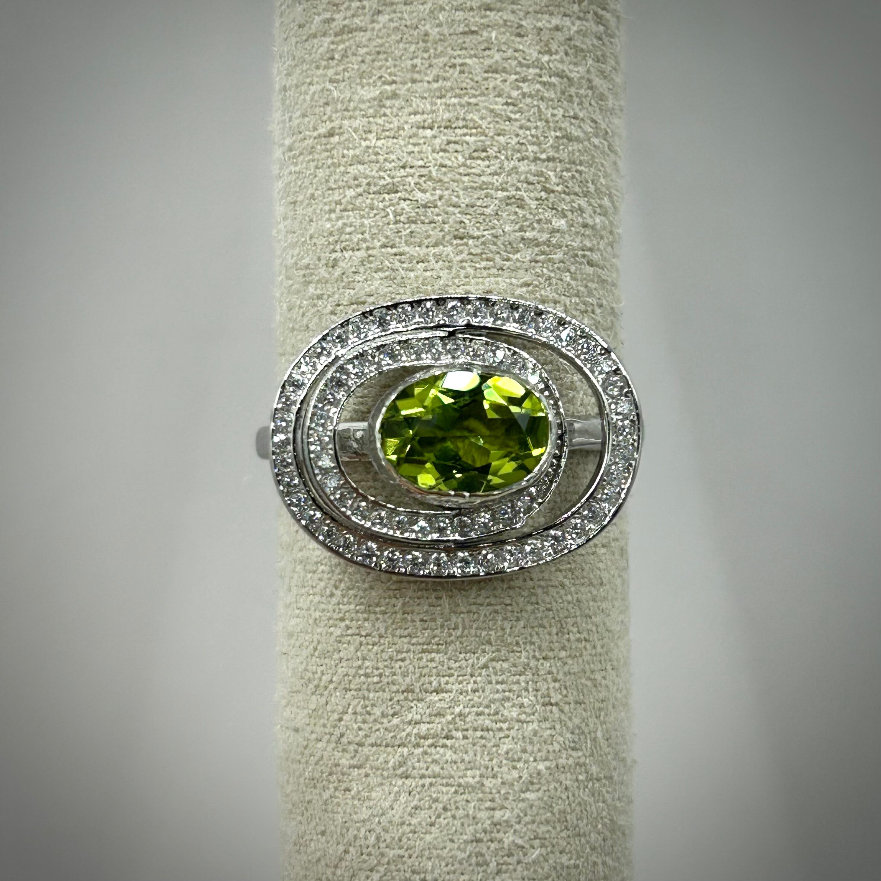 シルバー製 ペリドット ダブルオーバルリング 8月誕生石 フリーサイズ