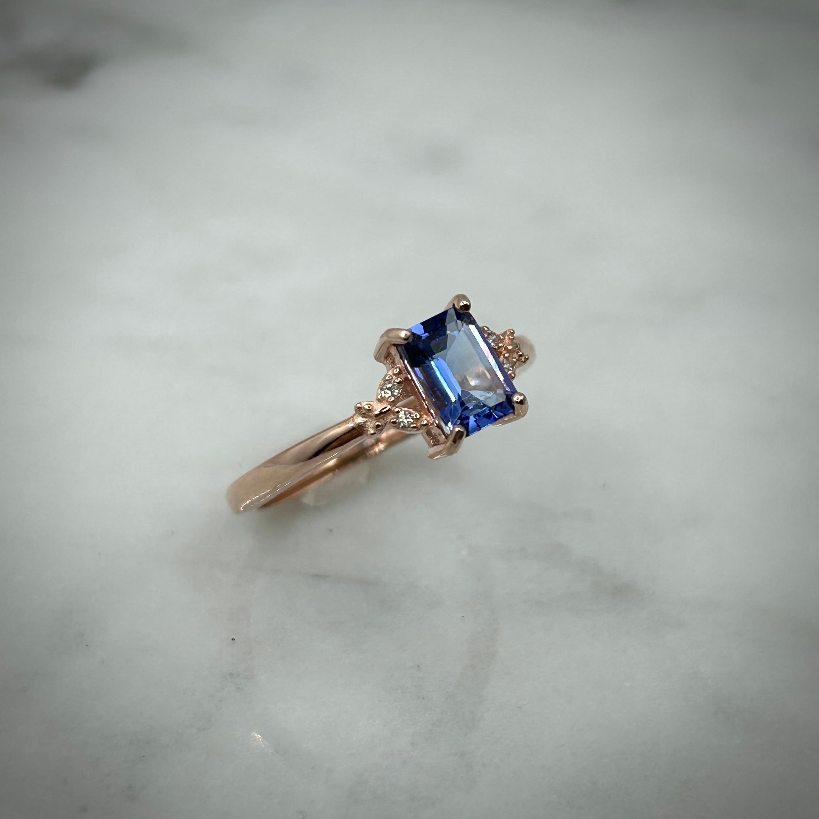 シルバー製ピンクゴールドカラー タンザナイトのバタフライリング。