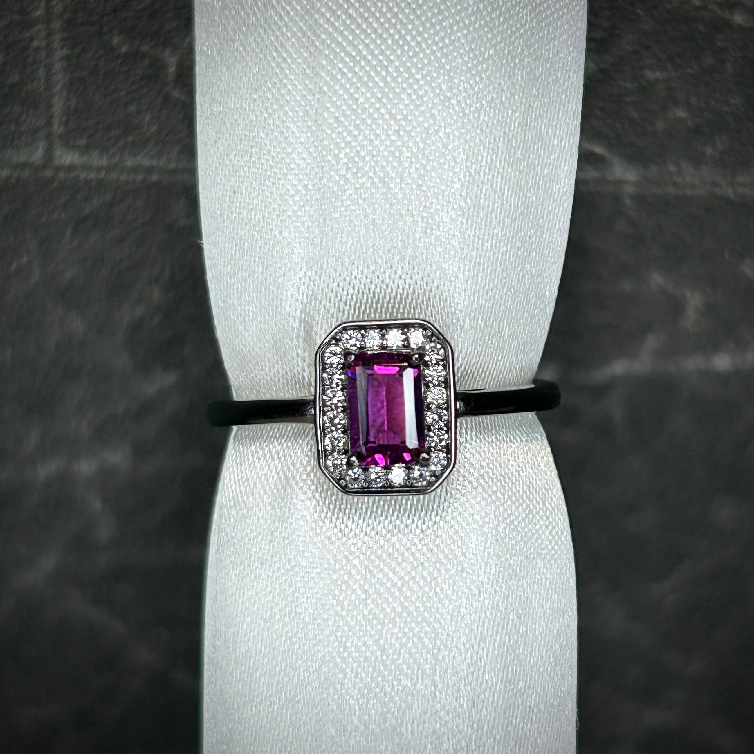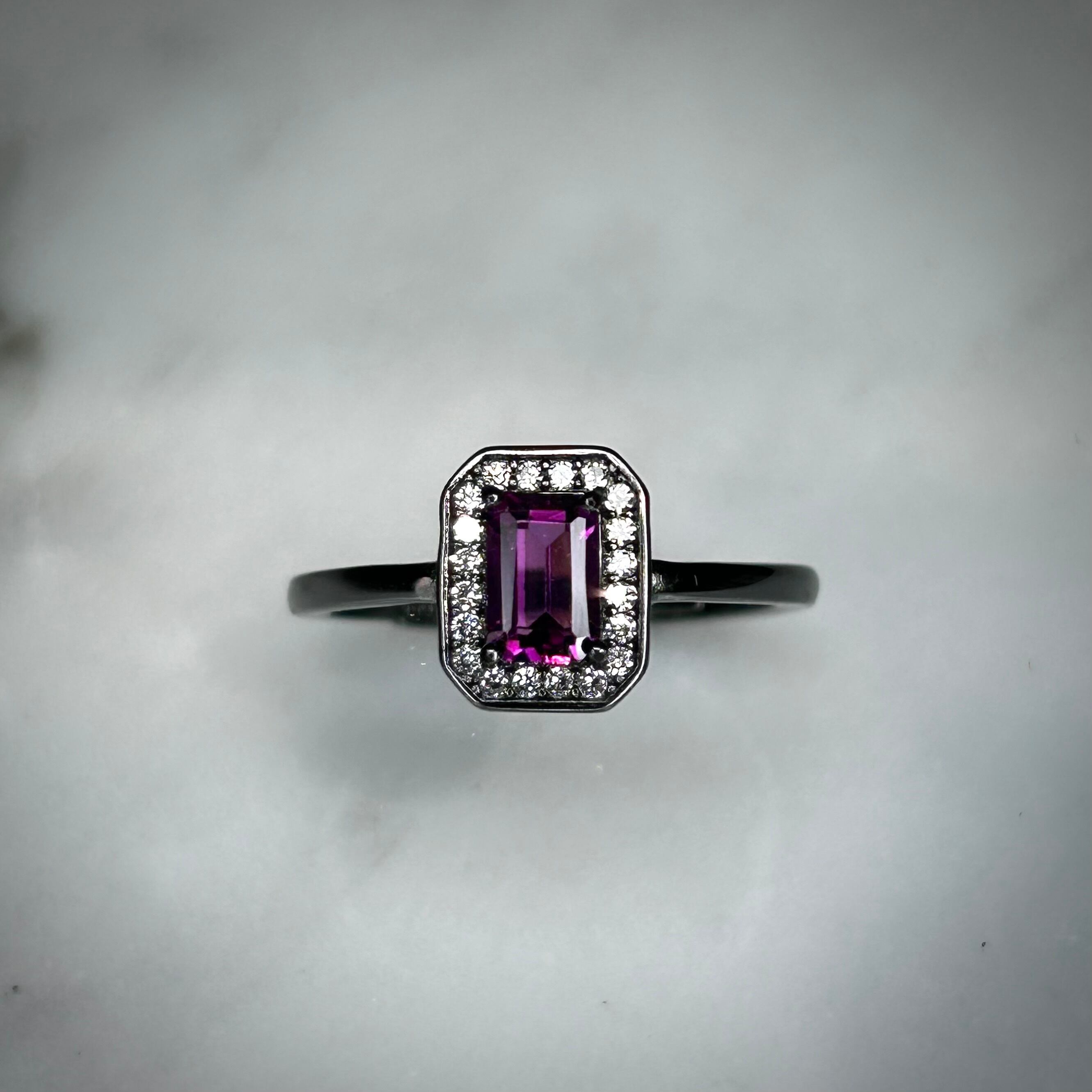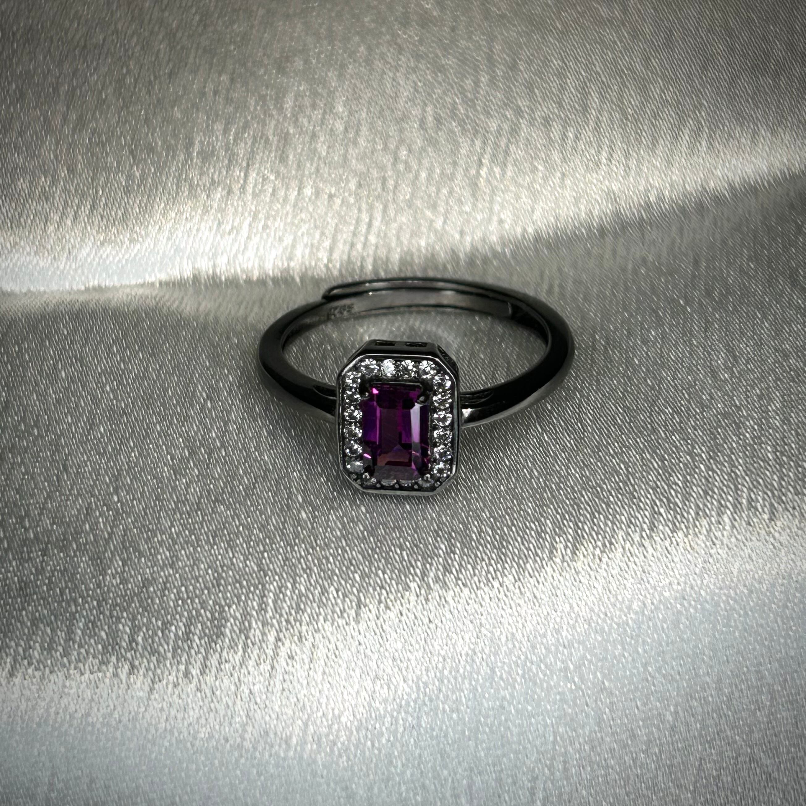 シルバー製ブラックカラー、ロードライトガーネットのレクタングルリング。