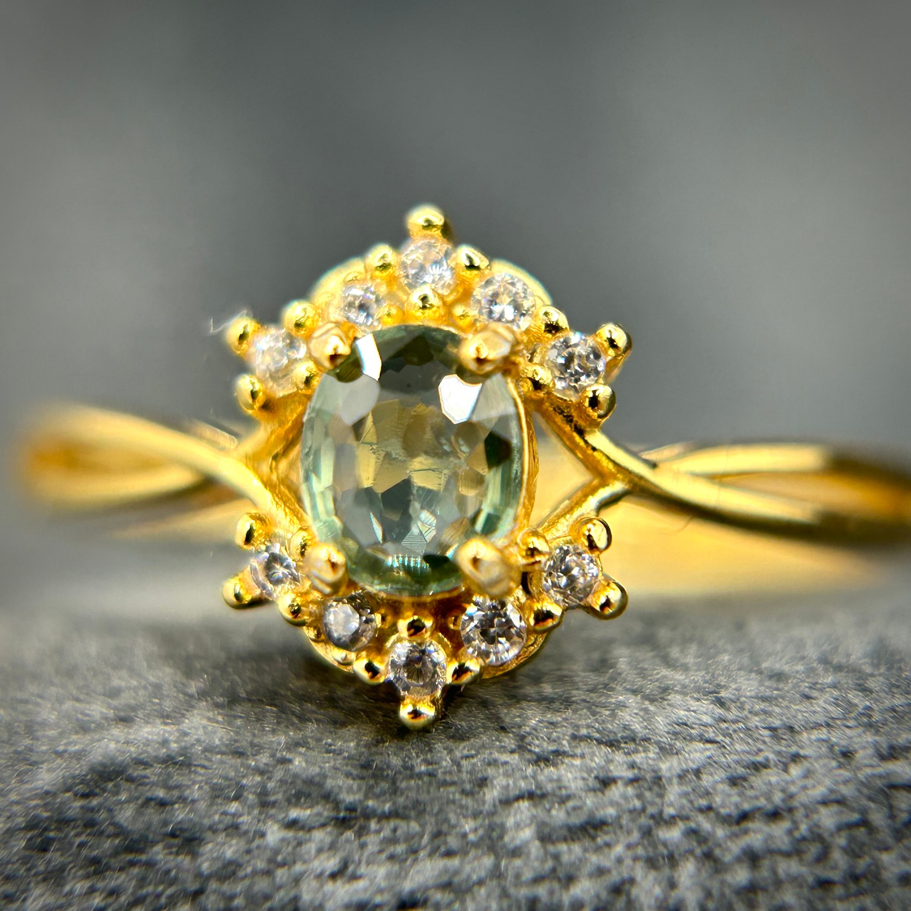 シルバー製ゴールドカラー サファイアのオーバルクロスデザインリング。