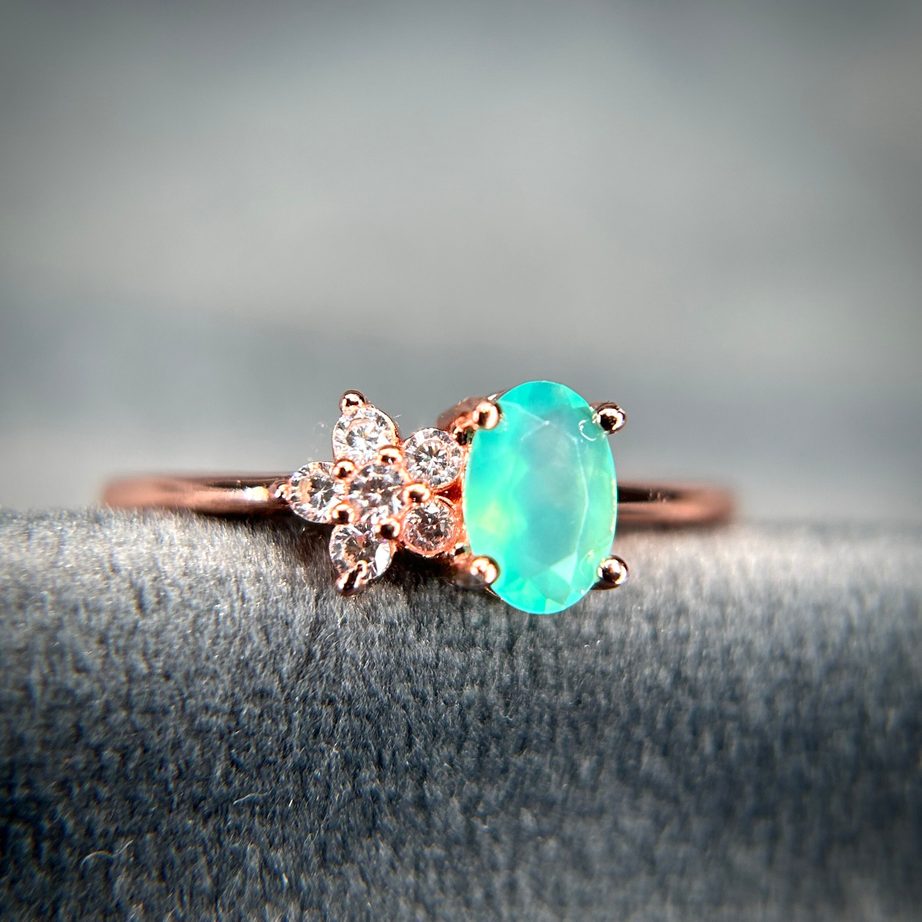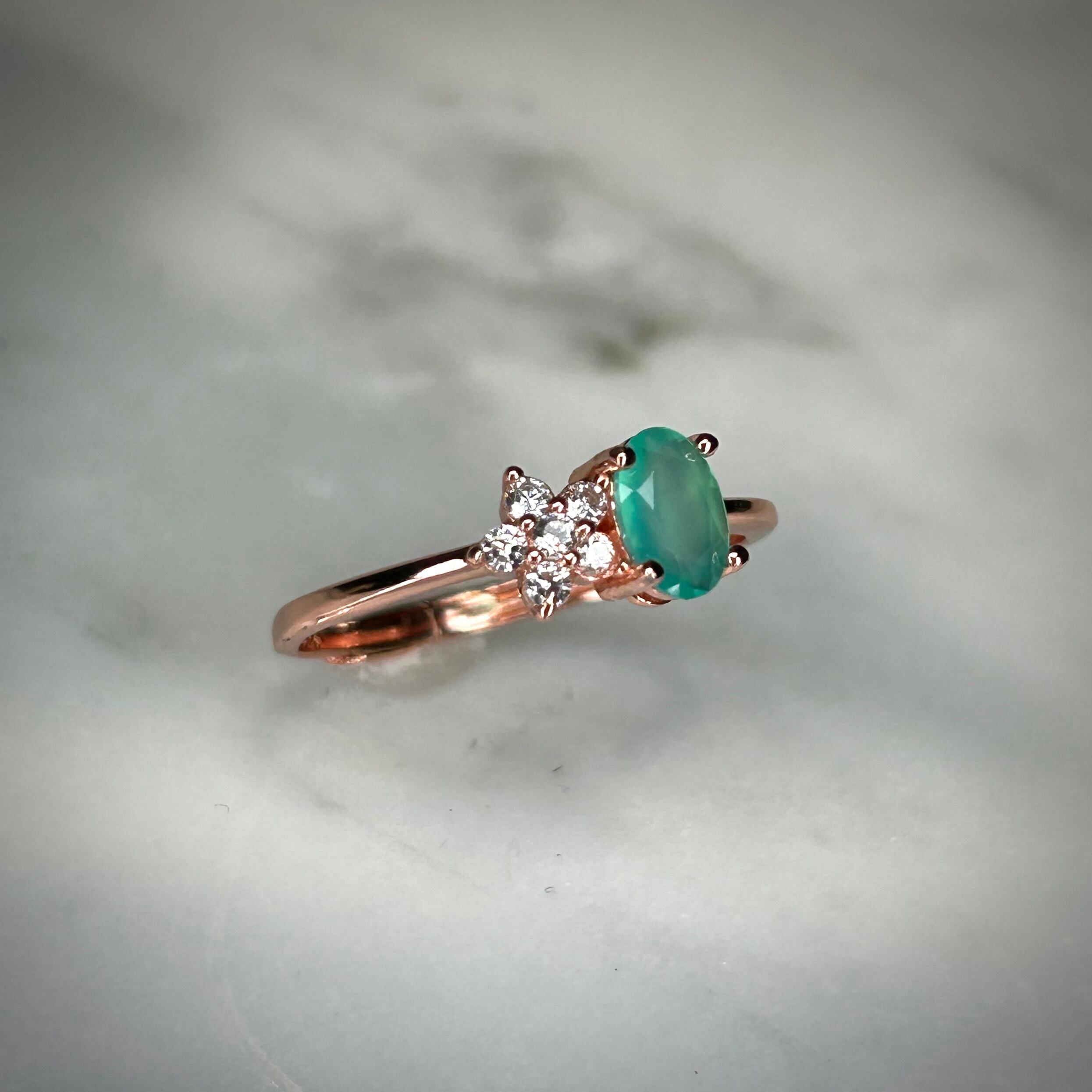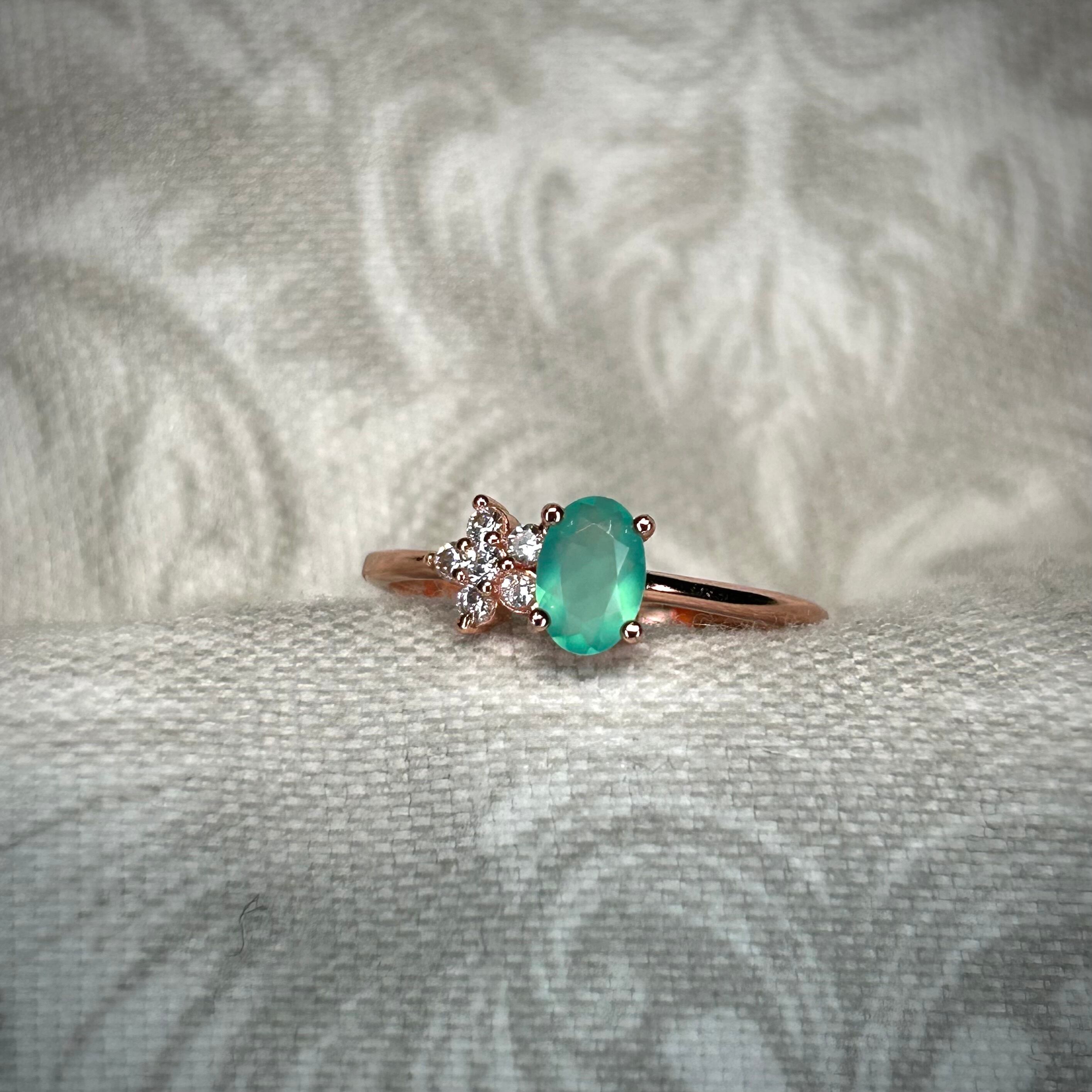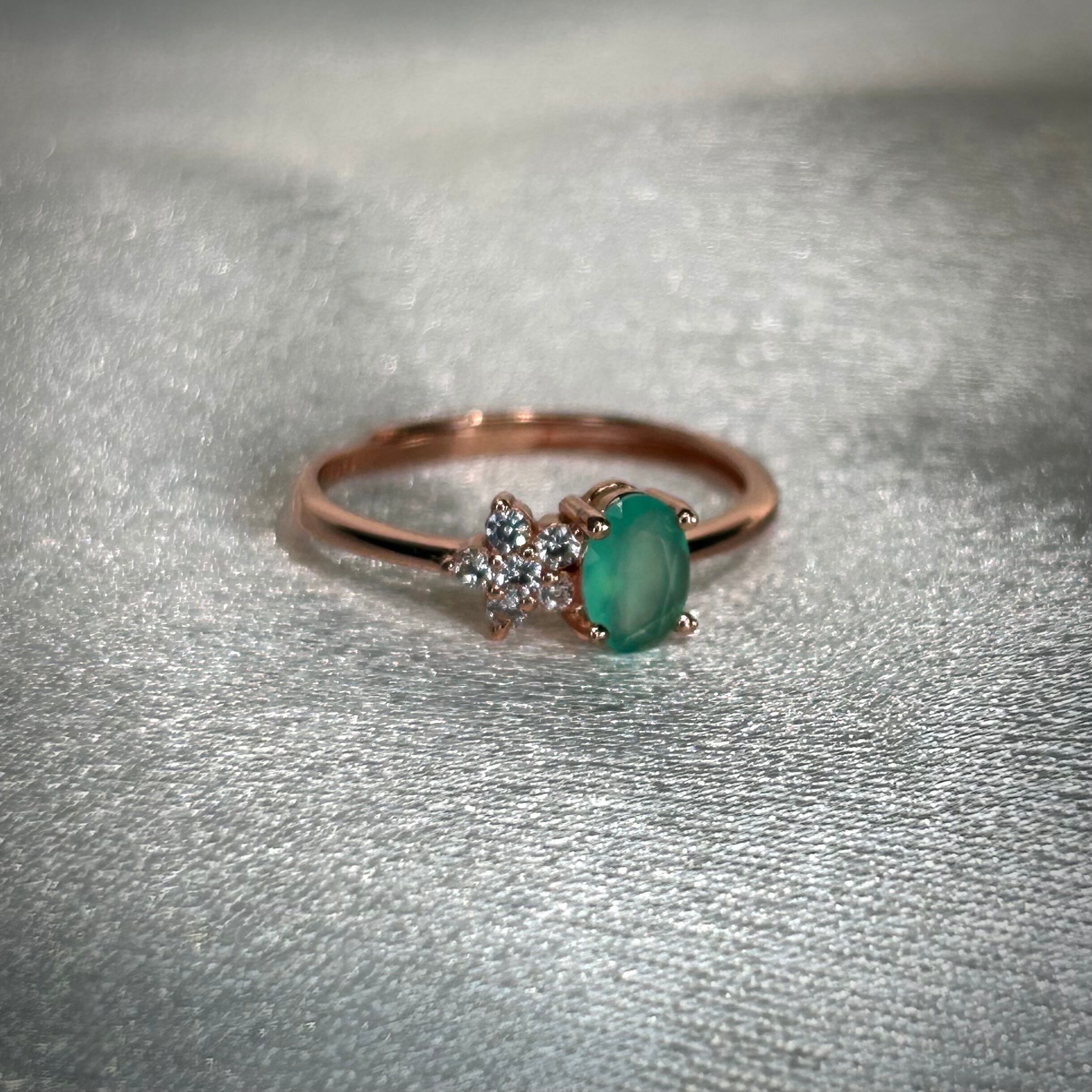 グリーンブルーカラーのオパールが目を引く、可愛いです。
