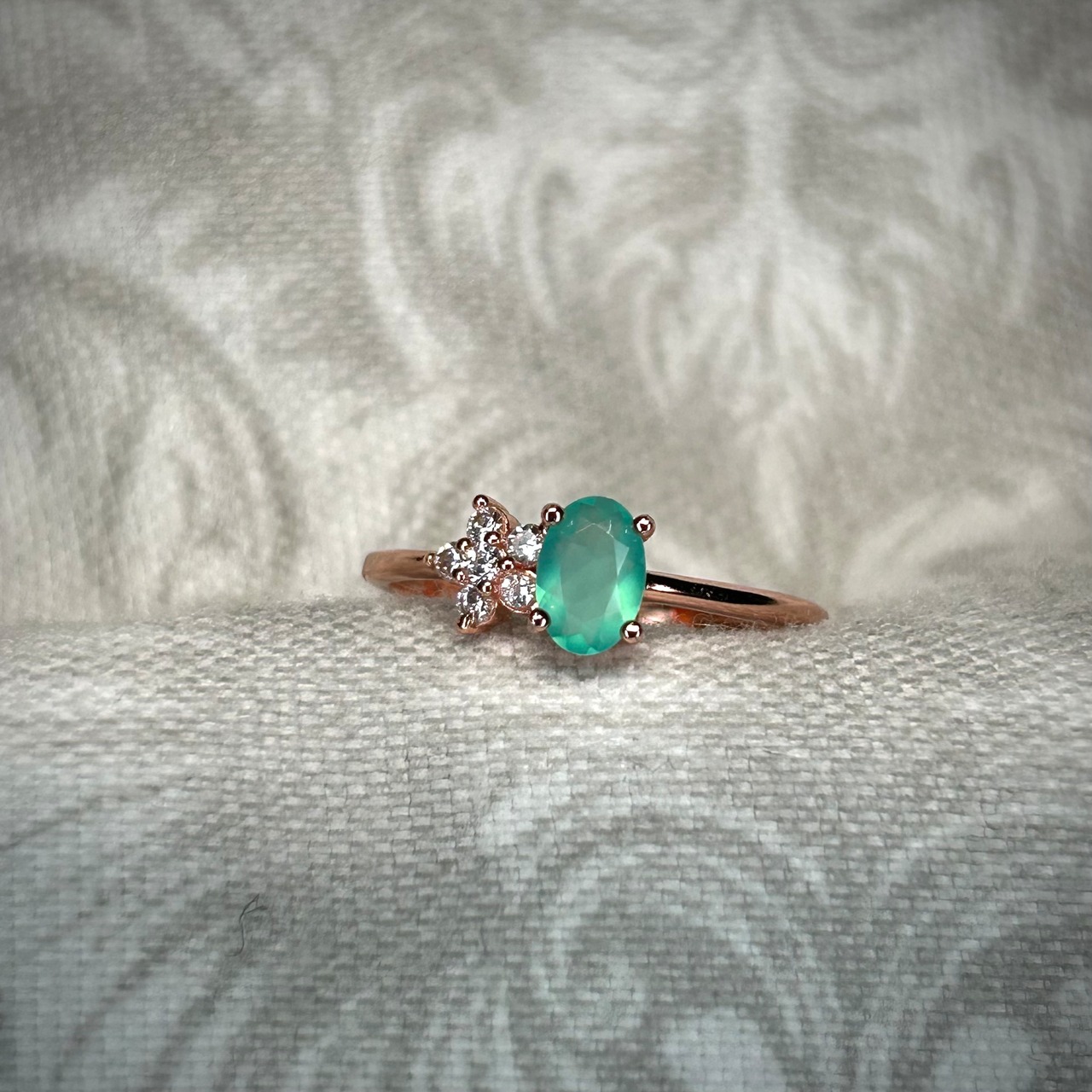 シルバー製ピンクゴールドカラー ブルーオパール スターリング 10月誕生石 フリーサイズ