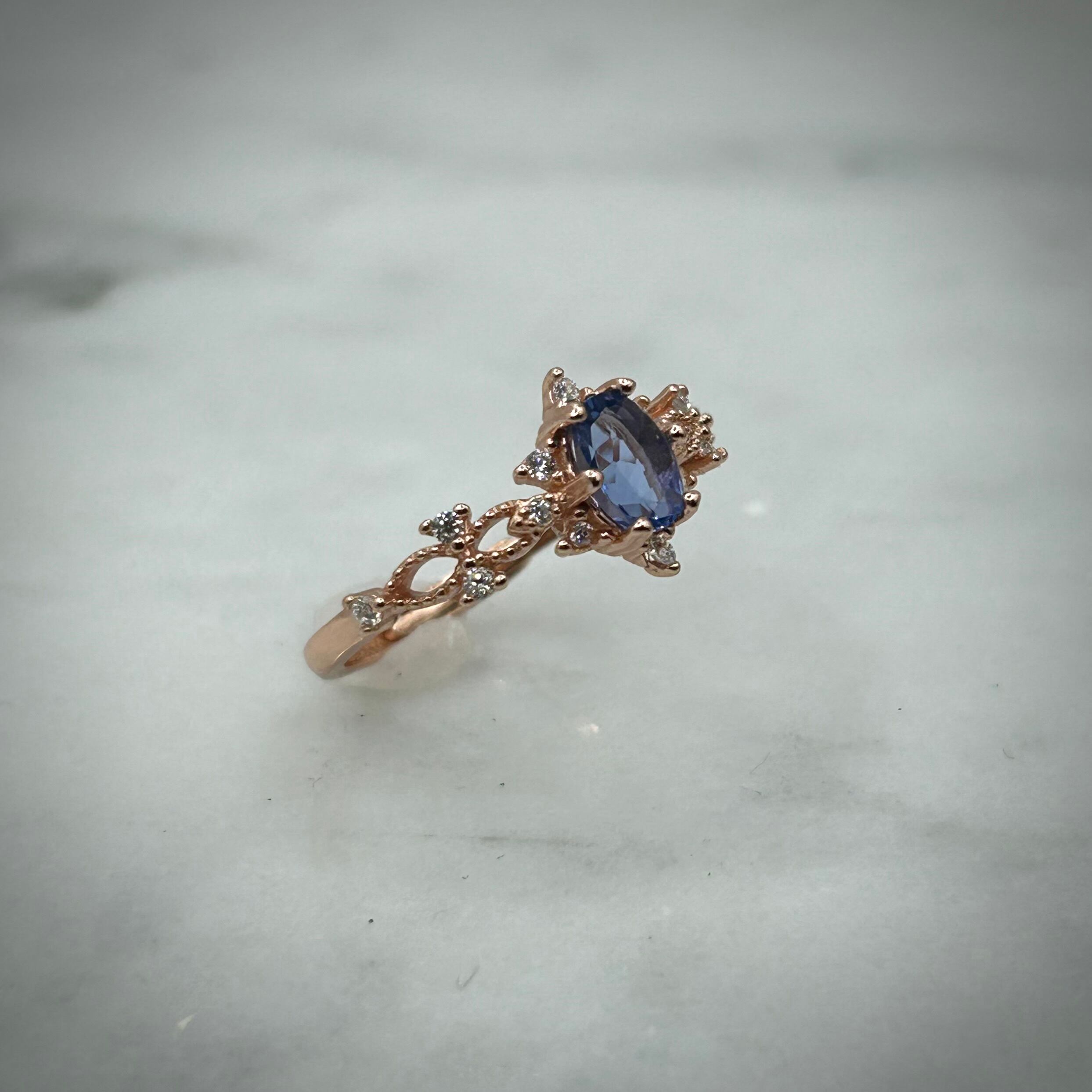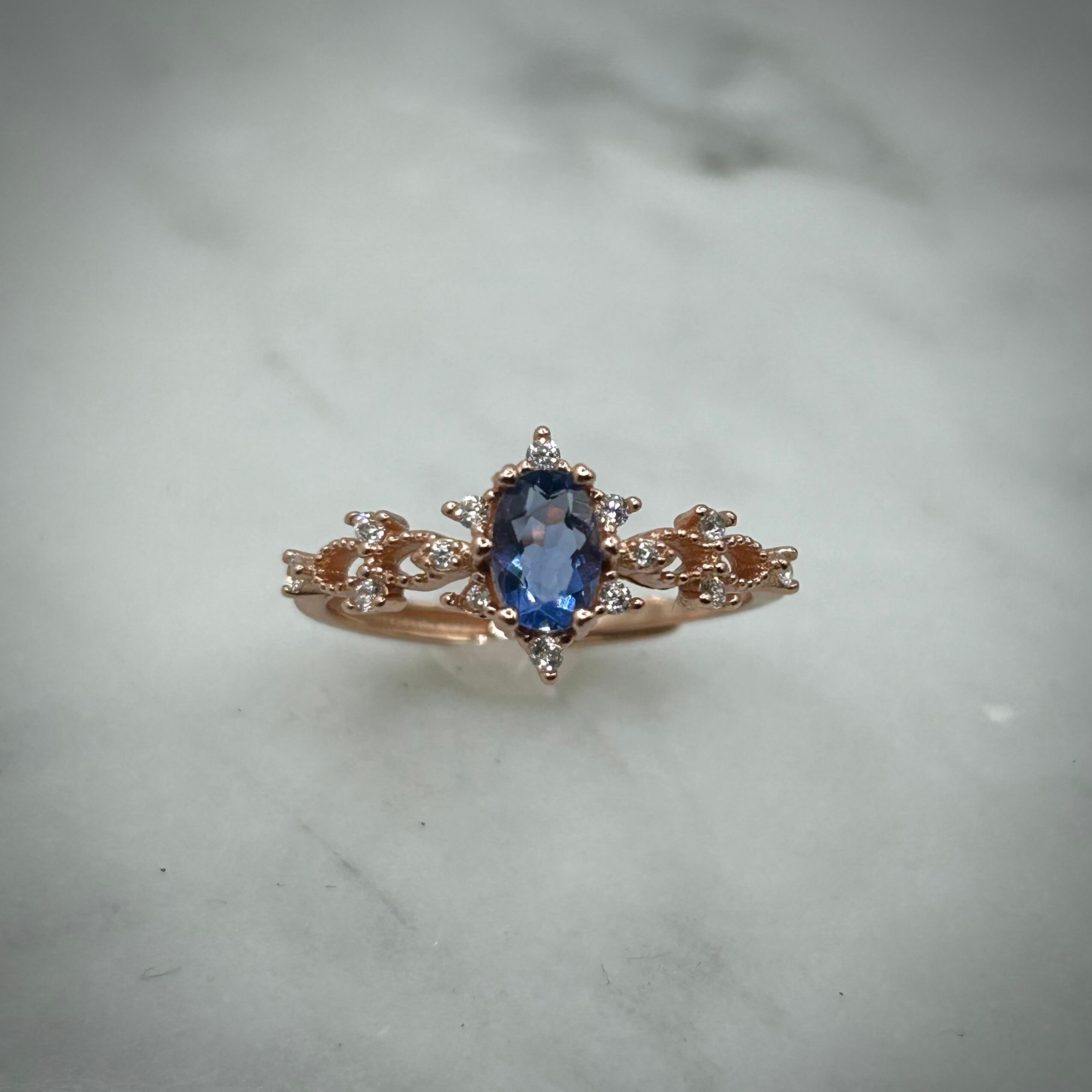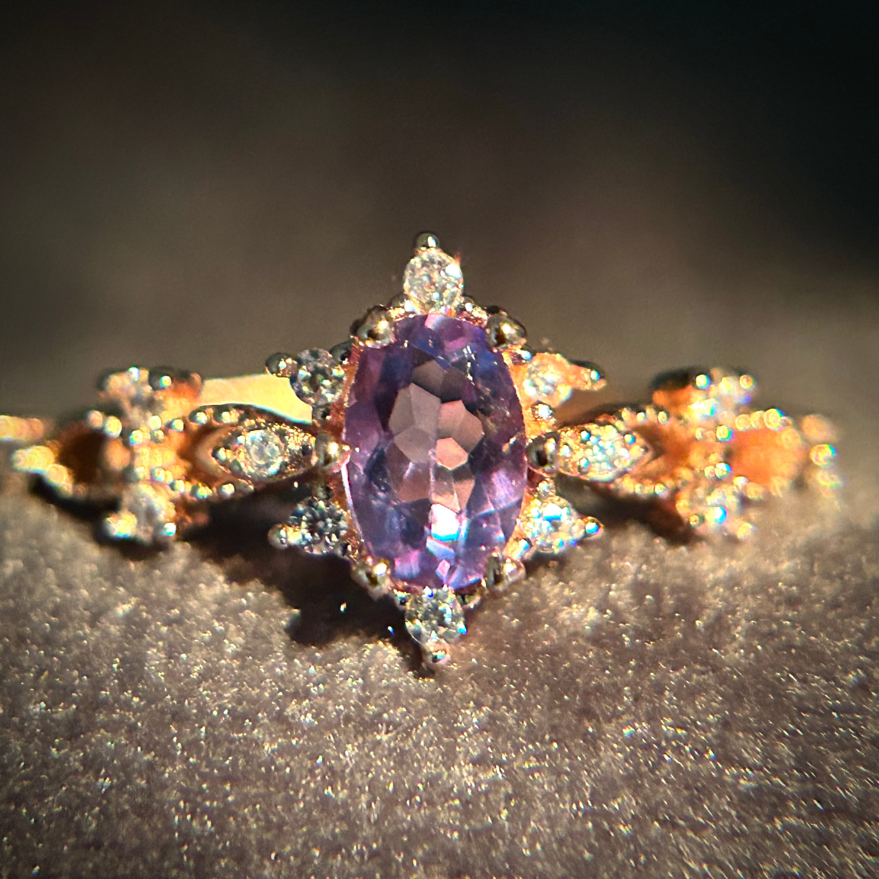 ブルーからパープルカラーへカラーチェンジをし、一つのリングで2色の色合いを楽しめます。