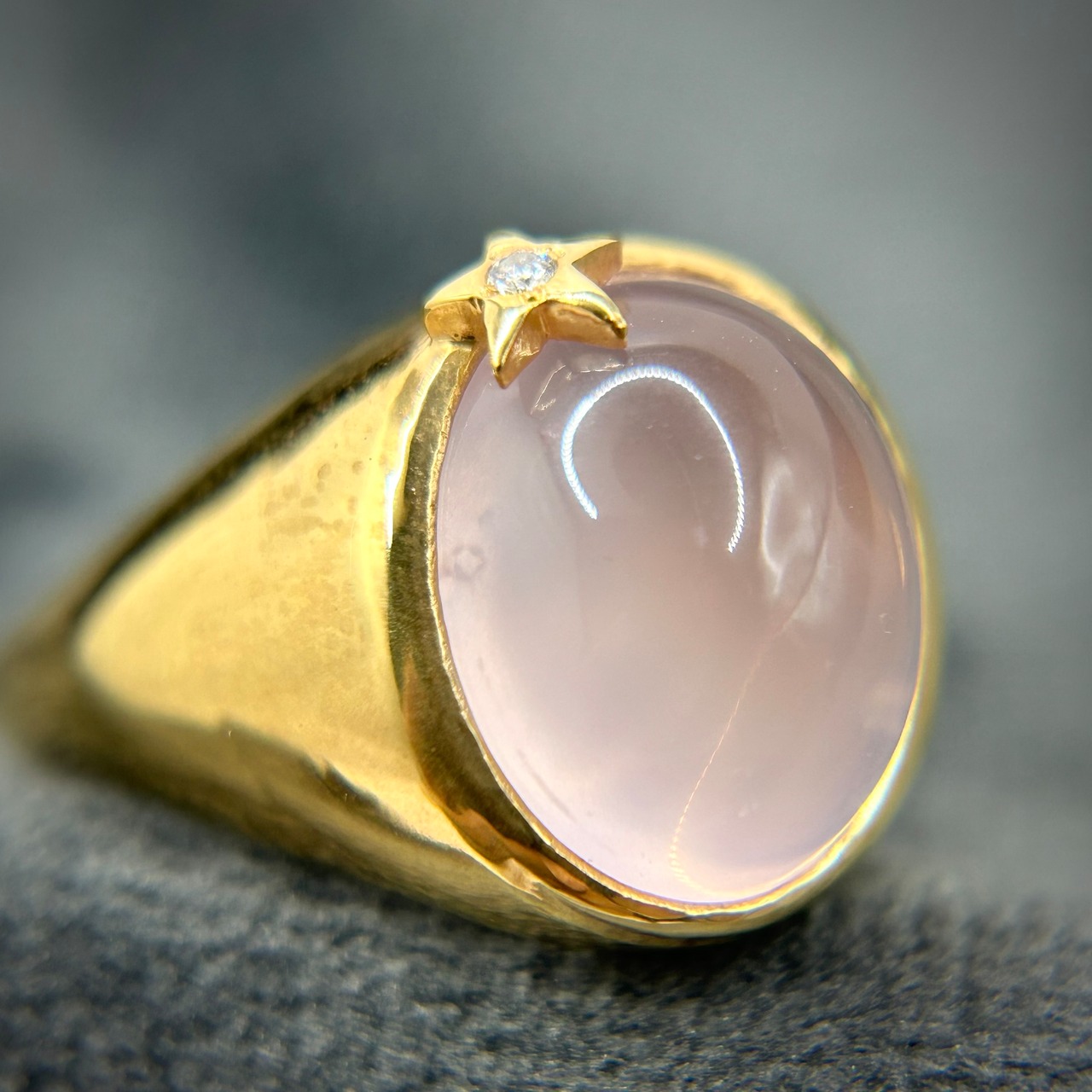 光りが当たるとスター模様が浮かび上がる、スターローズクォーツを使用。