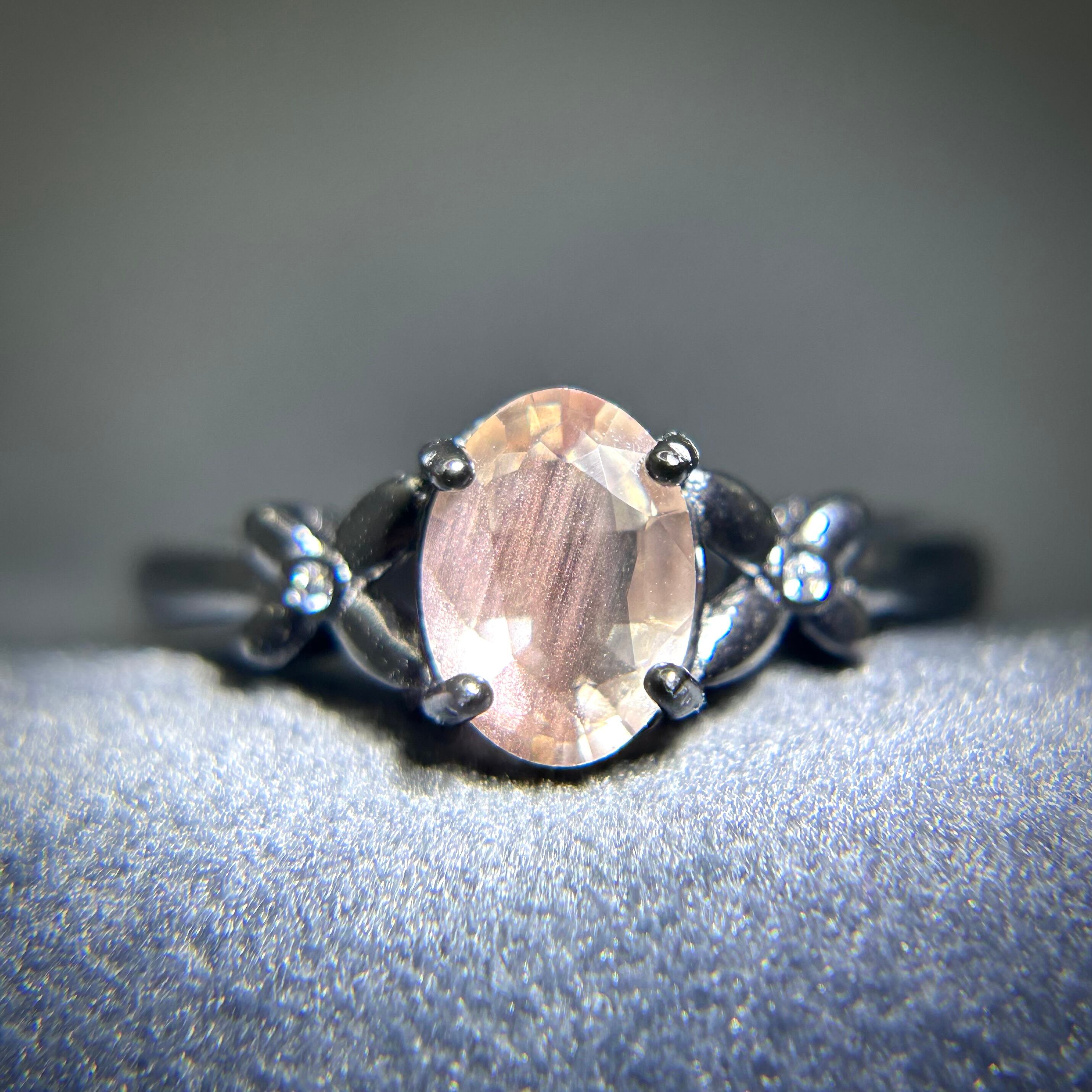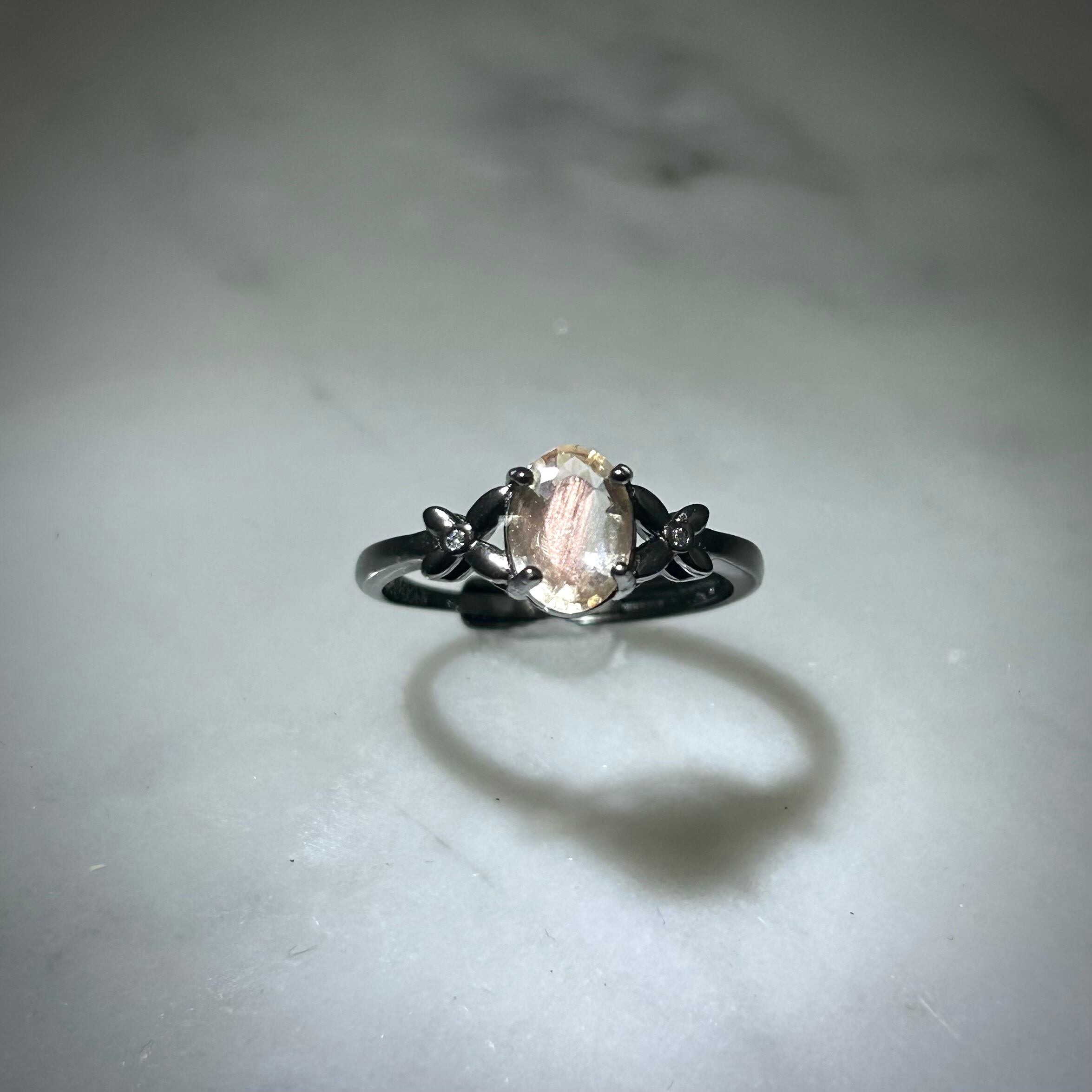 シルバー製ブラックカラー オレゴンサンストーンのオーバルデザインリング。