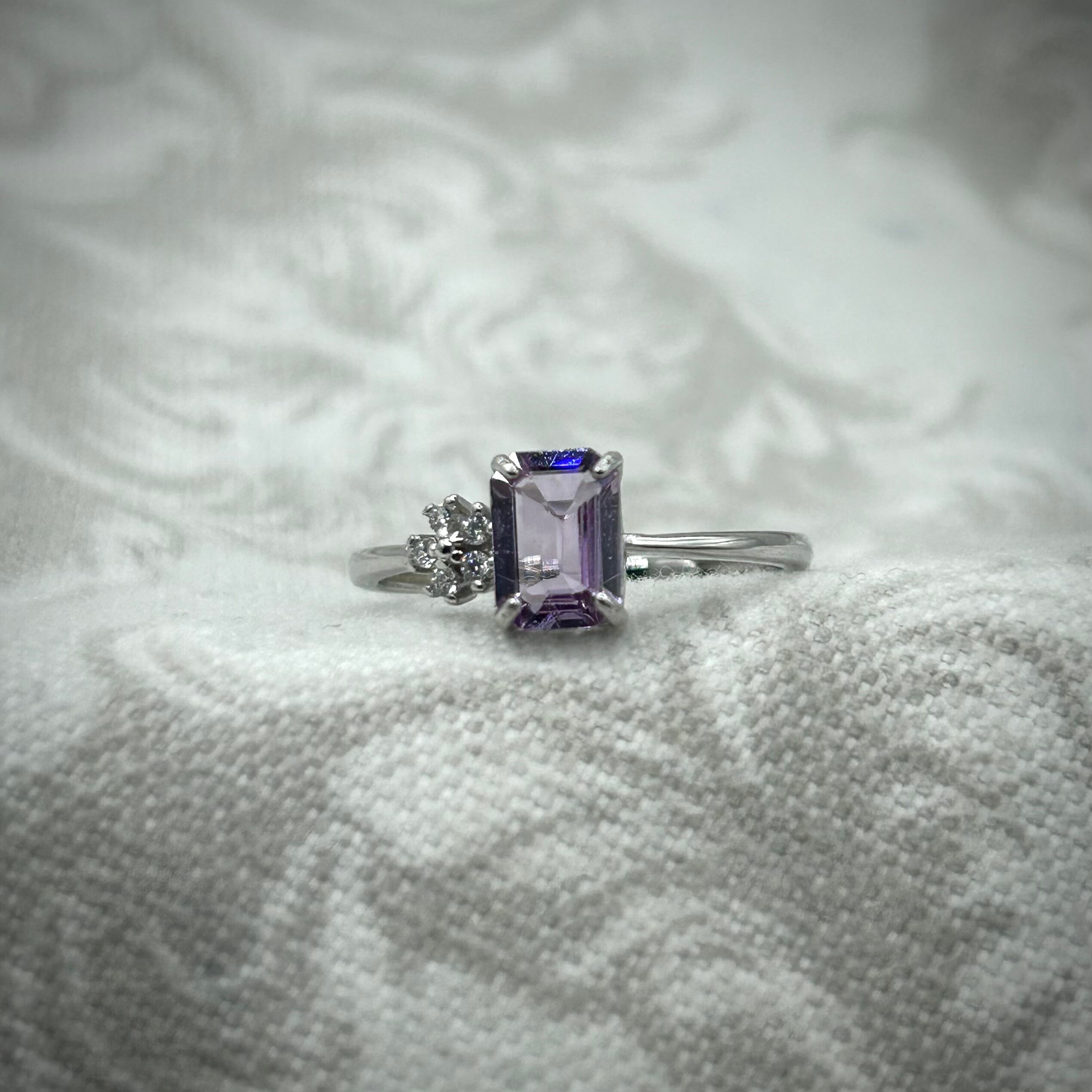 角度によりパープル感も感じられるピンクカラーのサファイアを使用。