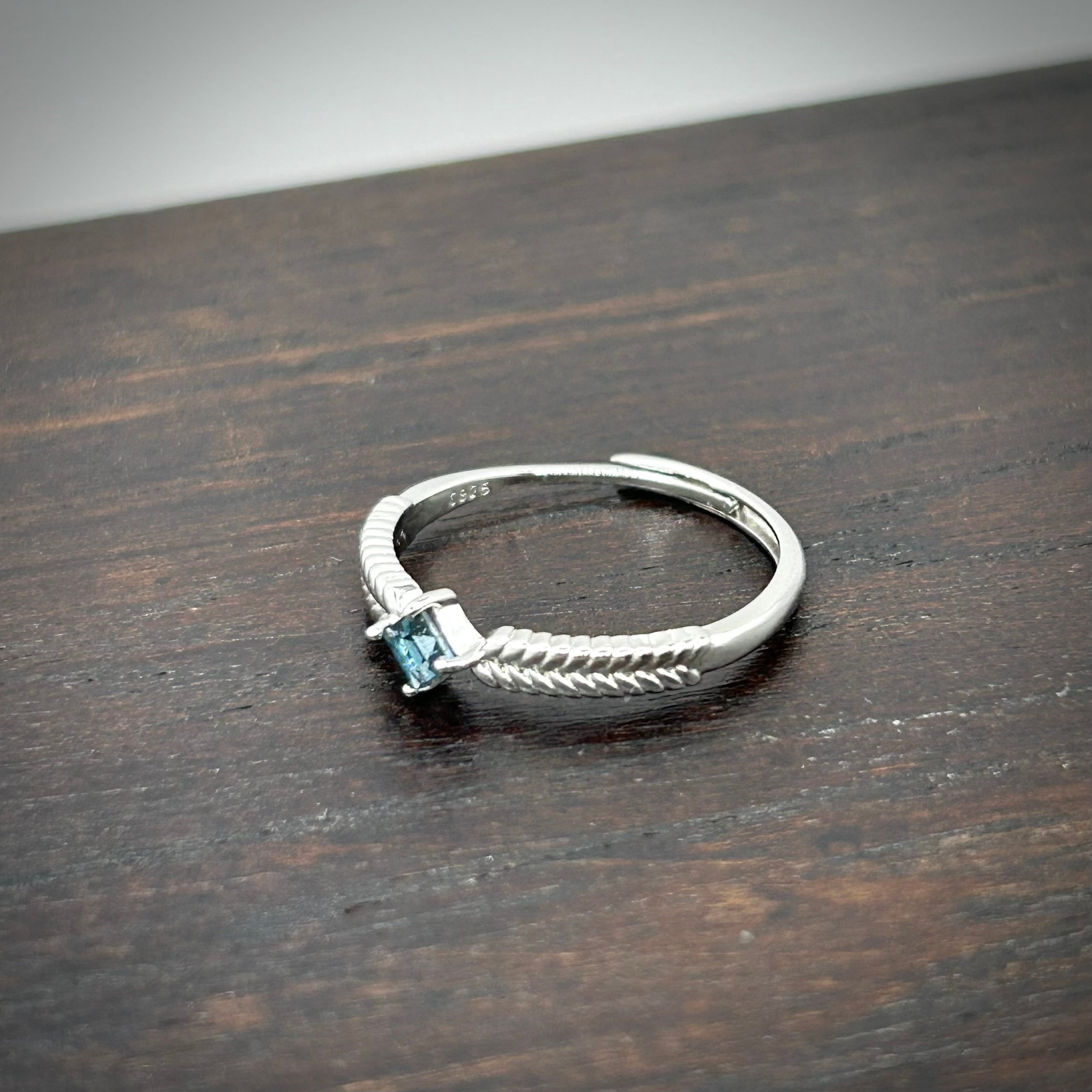 シルバー製 ロンドンブルートパーズ リーフリング 11月誕生石 フリーサイズ