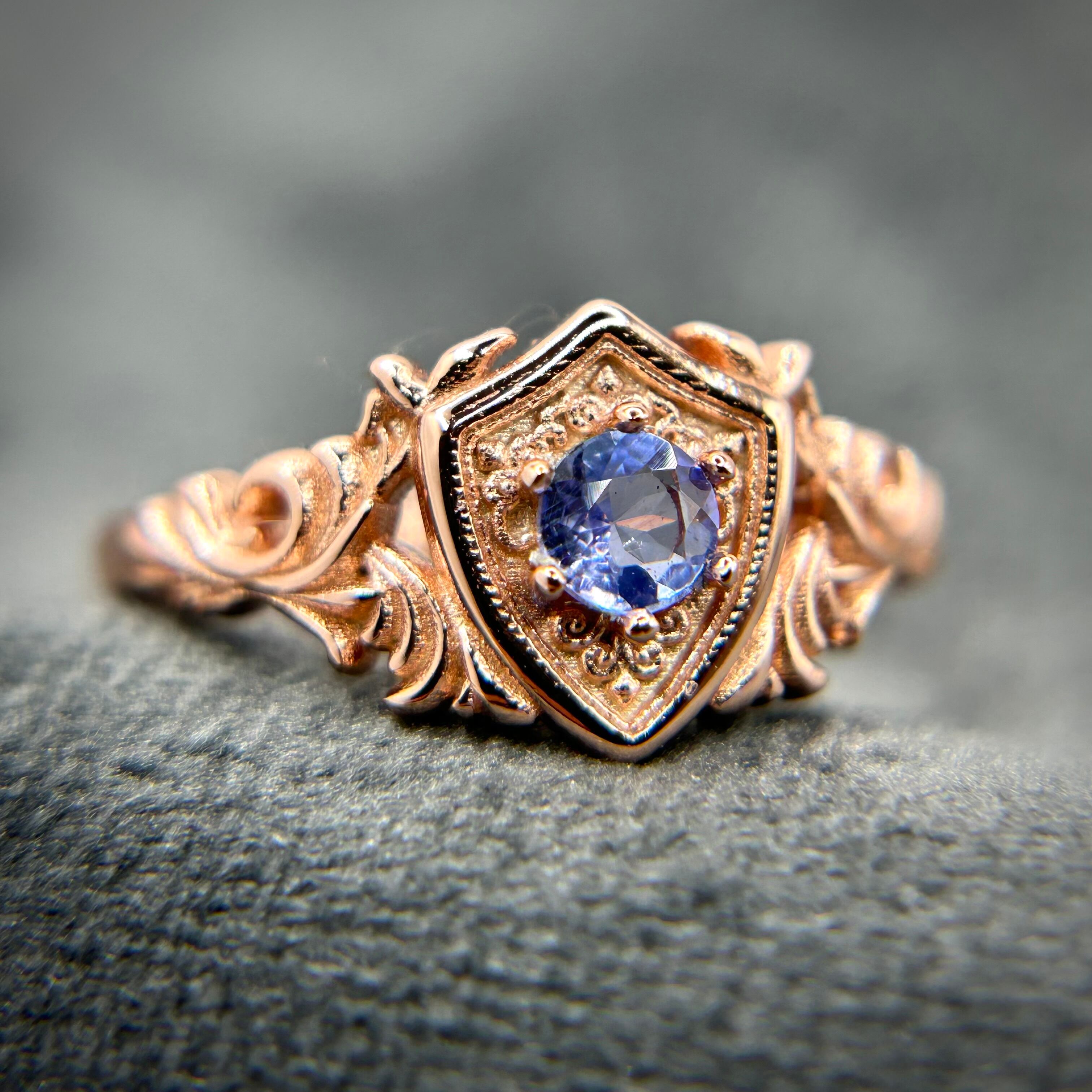 シルバー製ピンクゴールドカラー、タンザナイトのガーディアンリング。