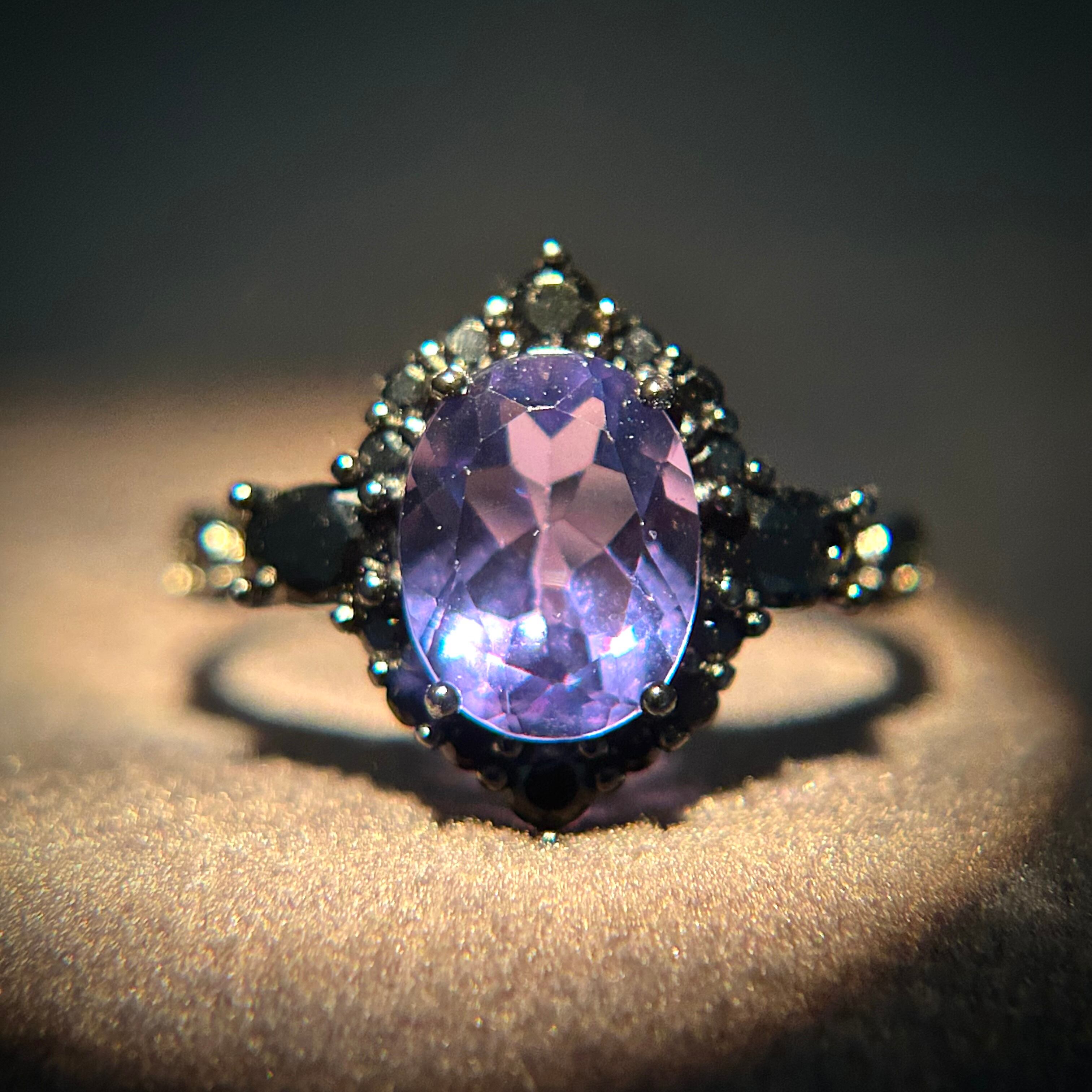 シルバー製ブラックカラー、カラーチェンジフローライトのミッドナイトリング。