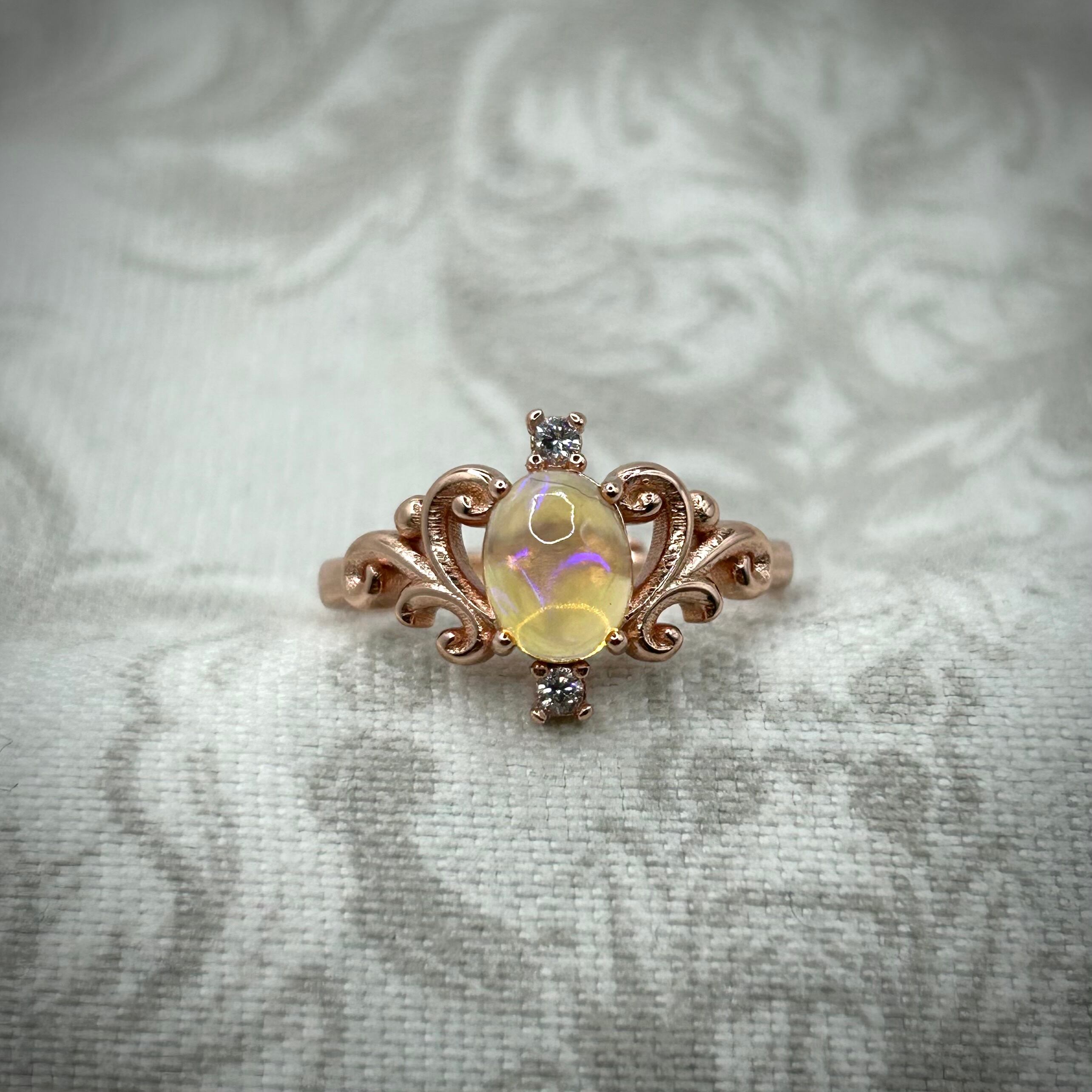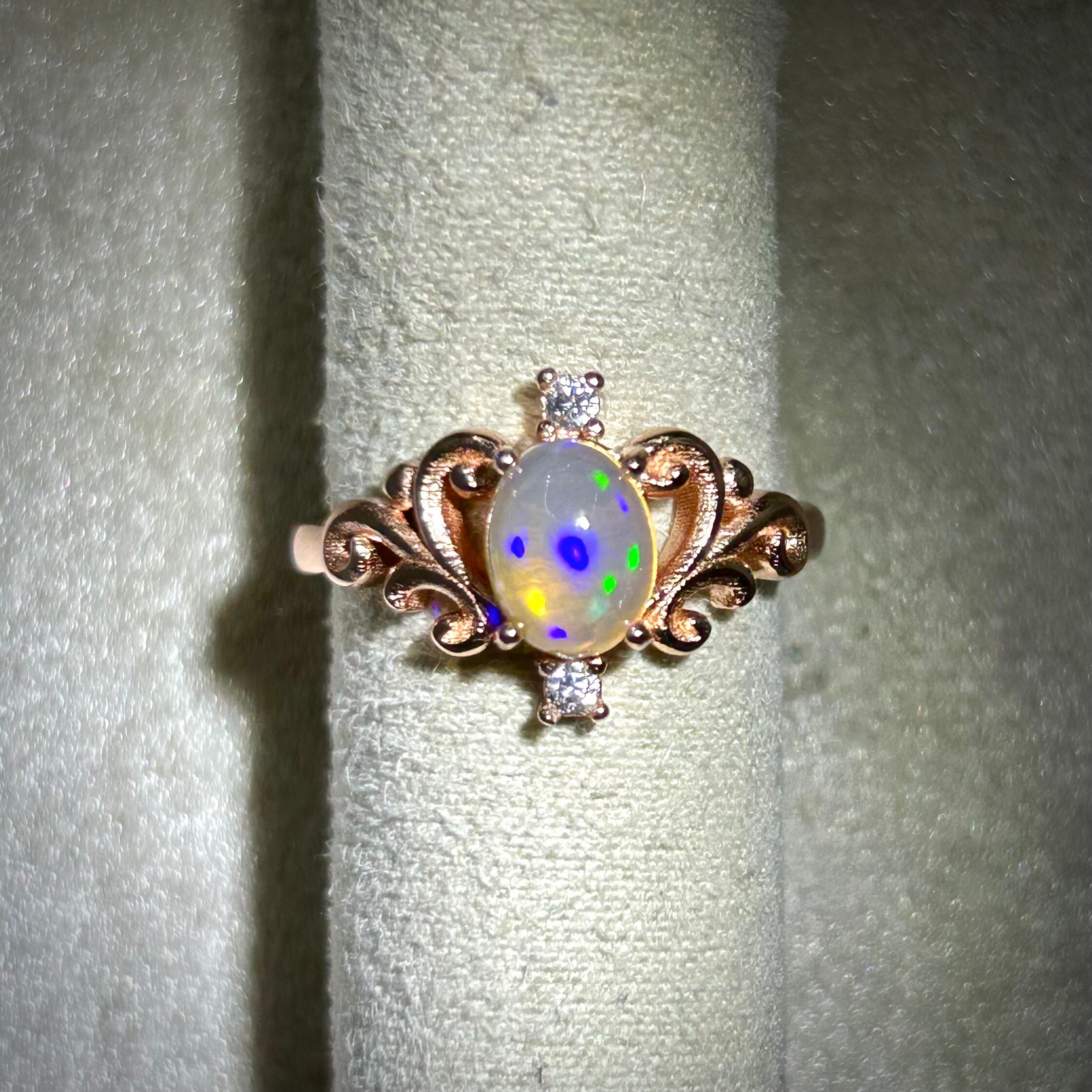 シルバー製ピンクゴールドカラー、オパールのロイヤルリング。