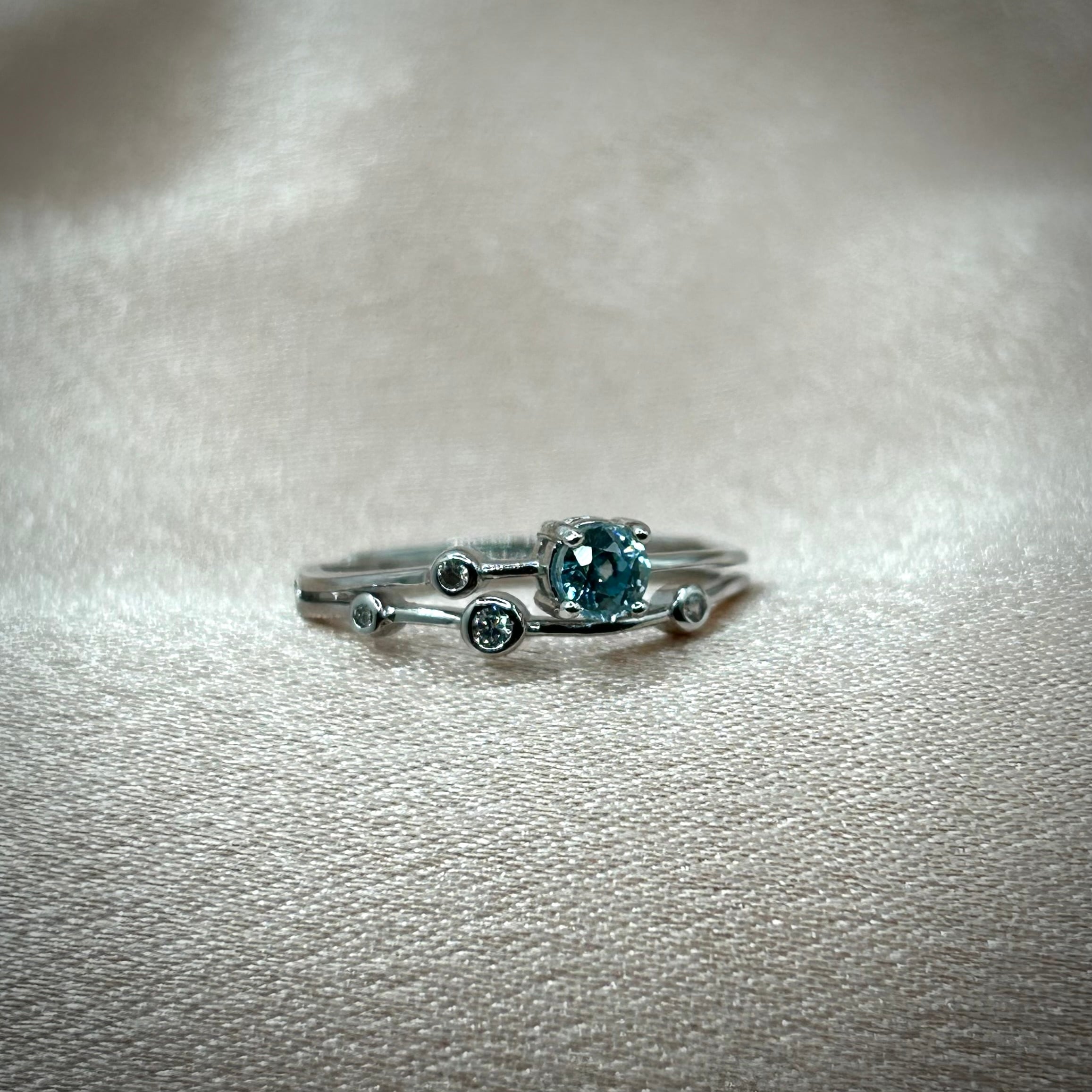 ブルーカラーの煌めきが美しいジルコンを使用。