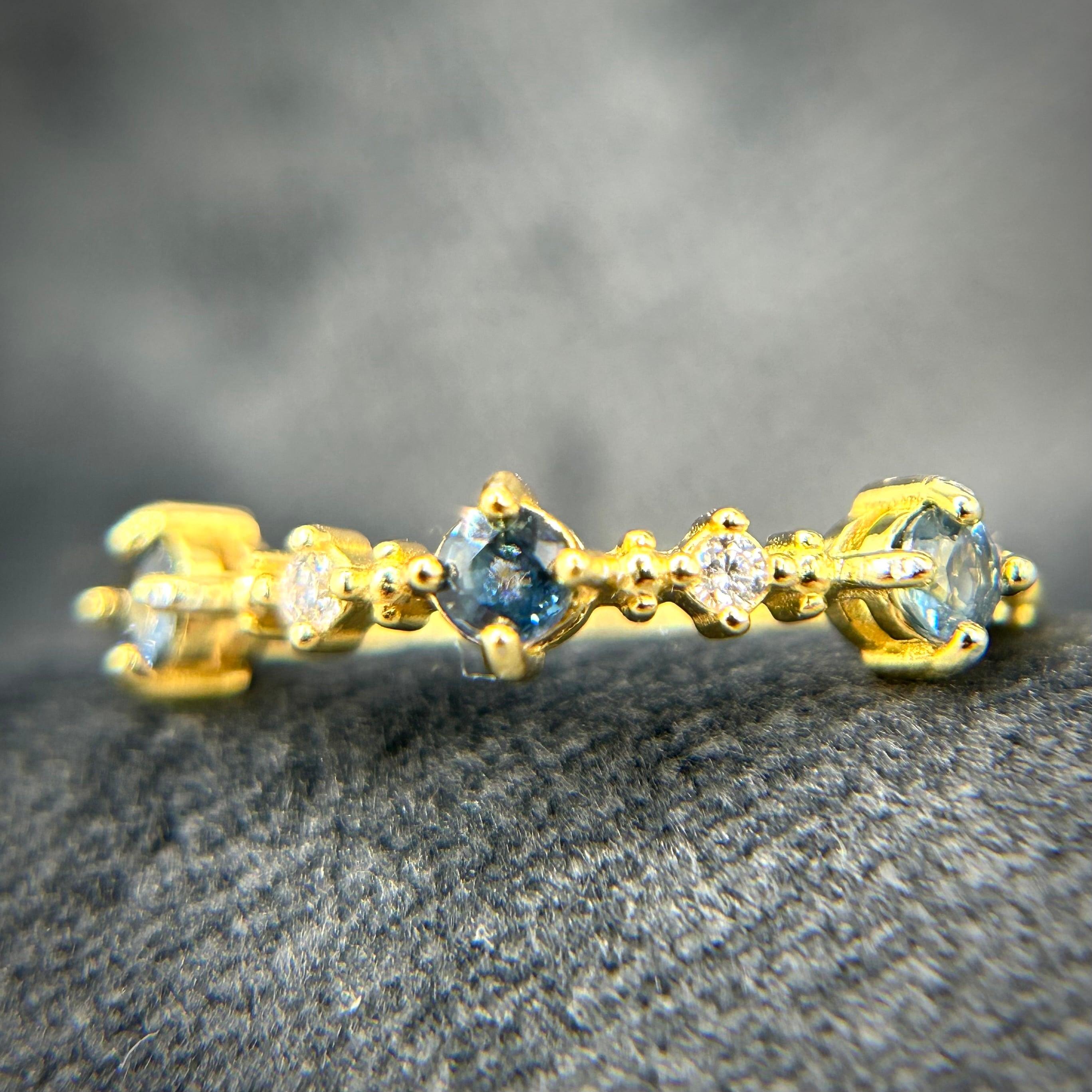 シルバー製ゴールドカラー、サファイアの3石リング。