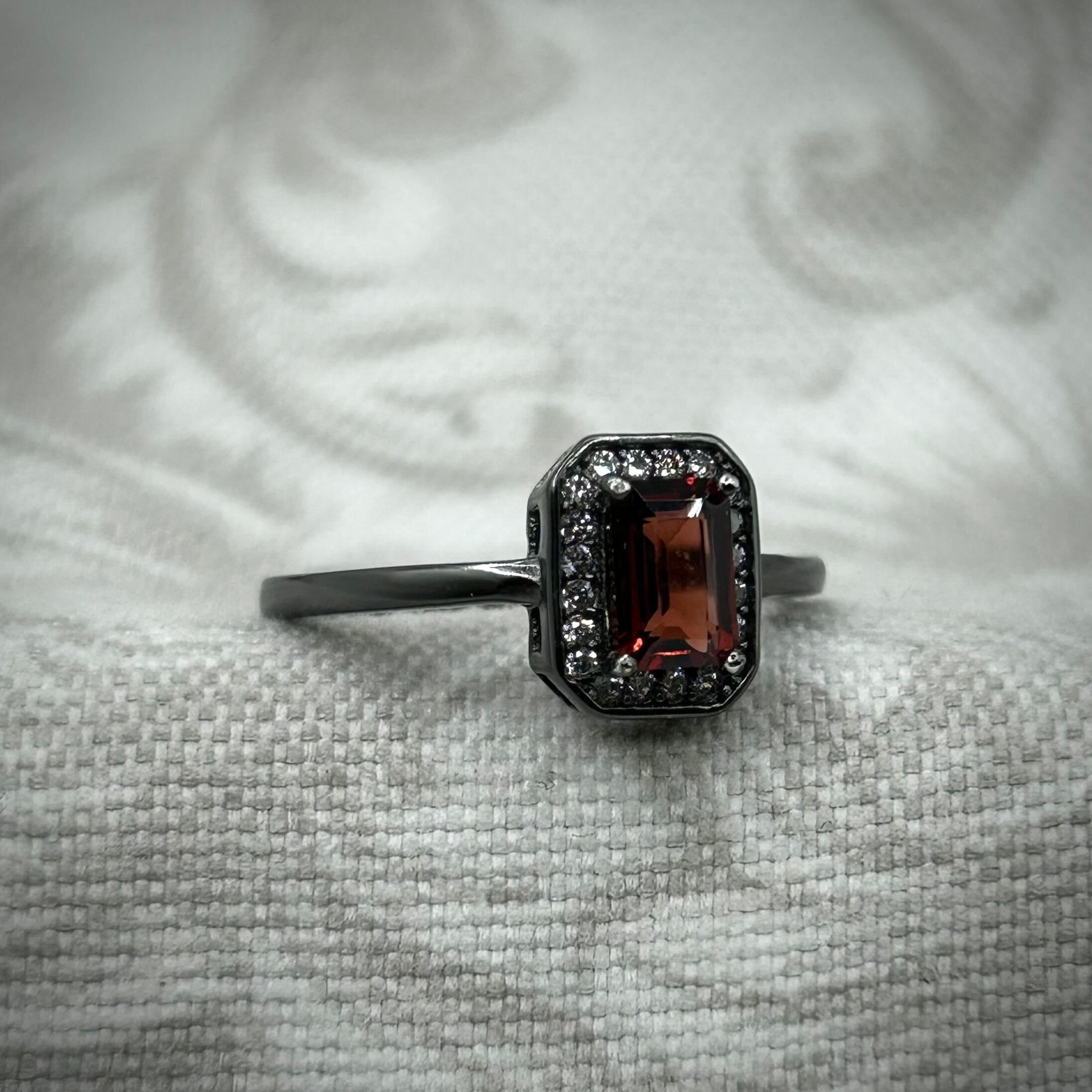 シルバー製ブラックカラー ガーネットのレクタングルリング。