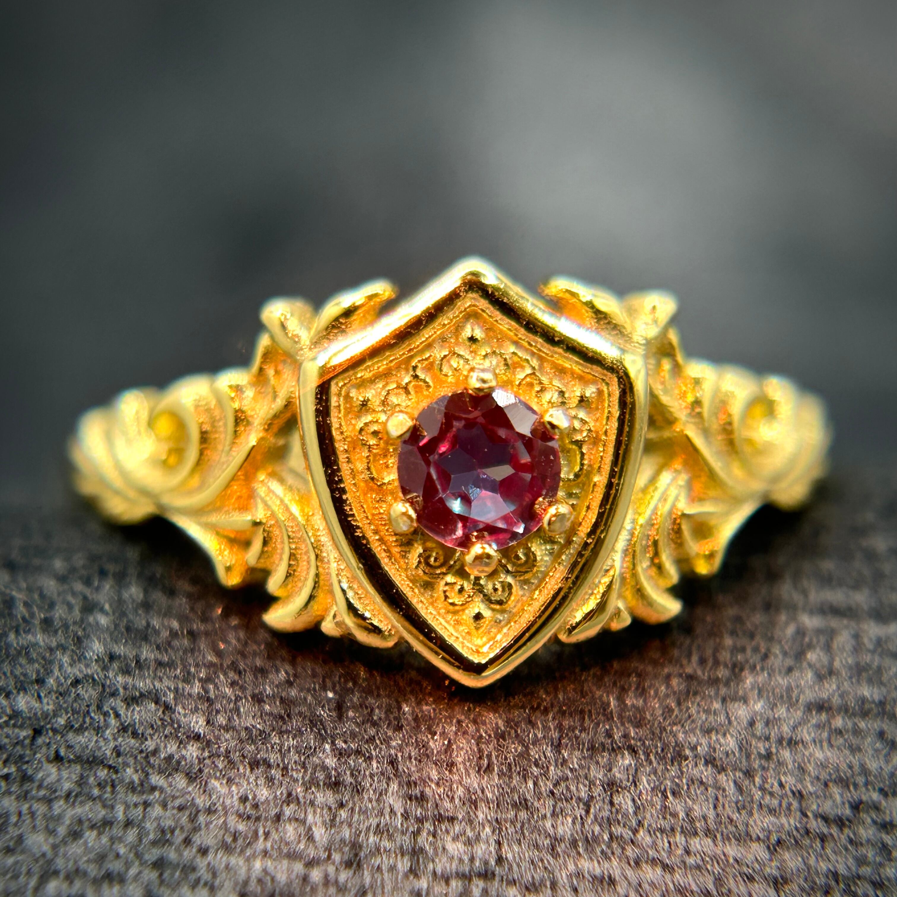 シルバー製ゴールドカラー、合成アレキサンドライトのガーディアンリング。