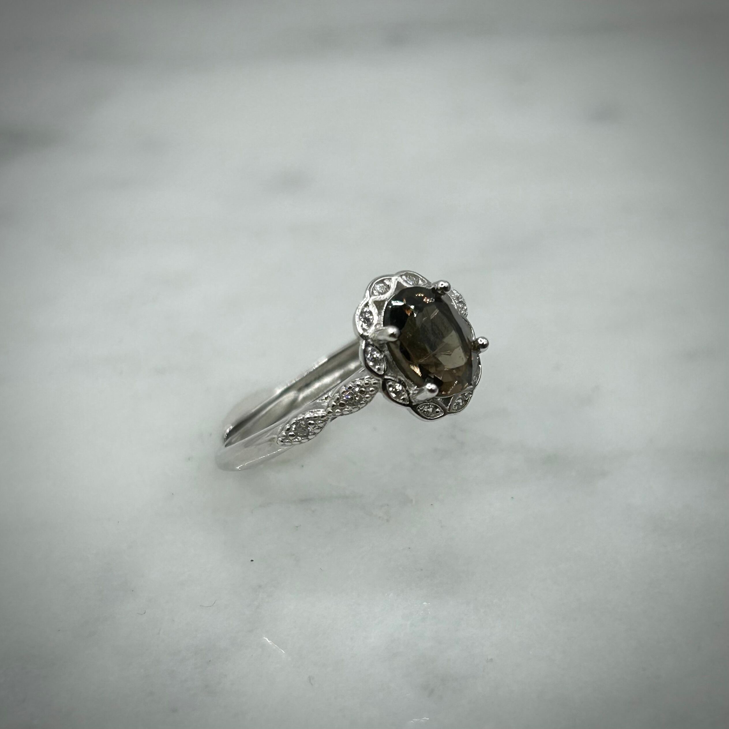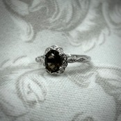 シルバー製、スモーキークォーツのオーバルデザインリング。