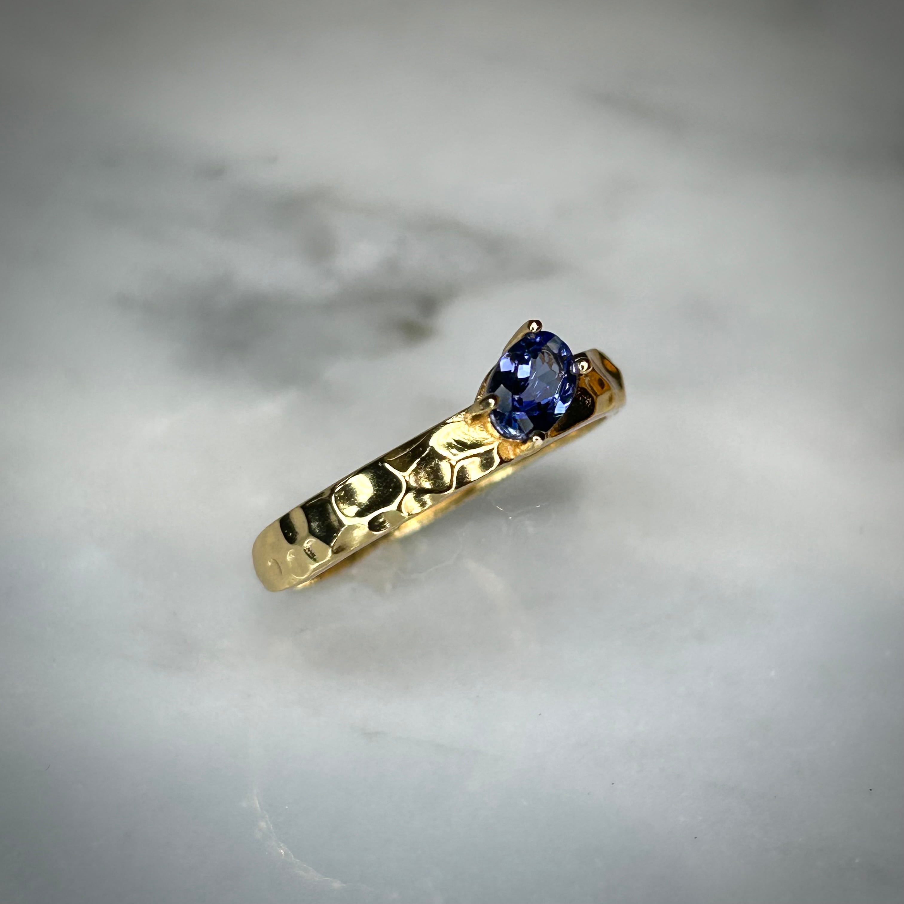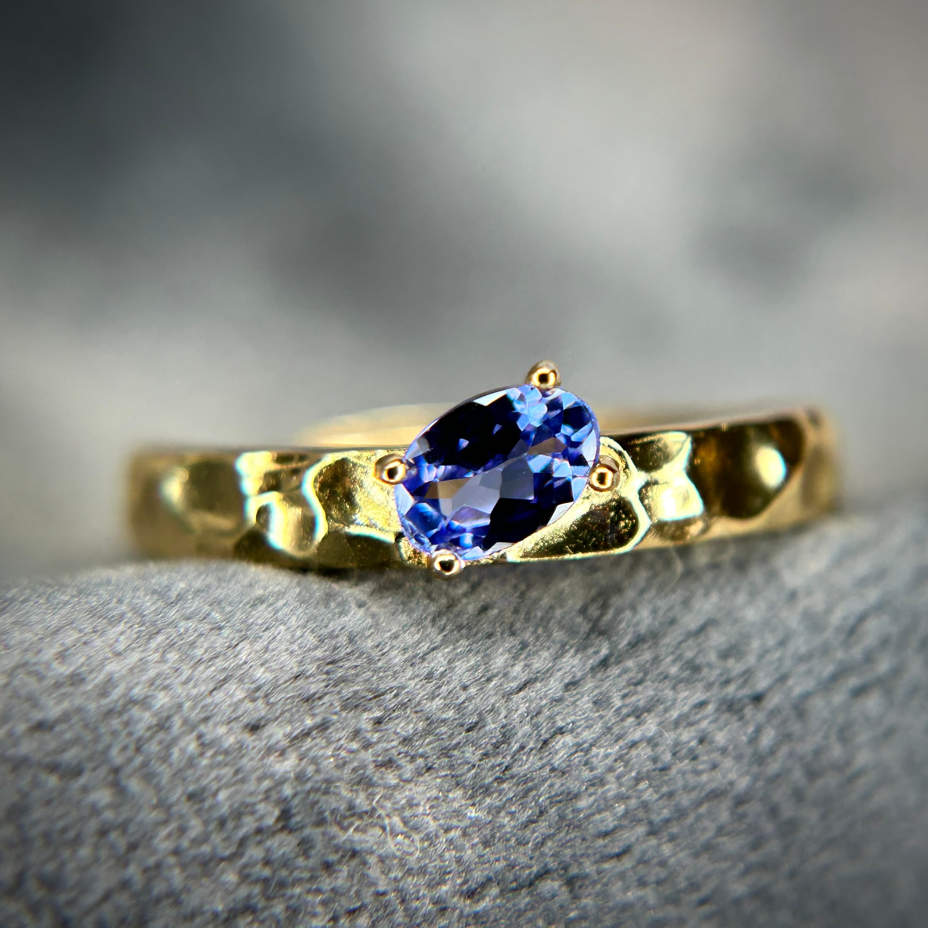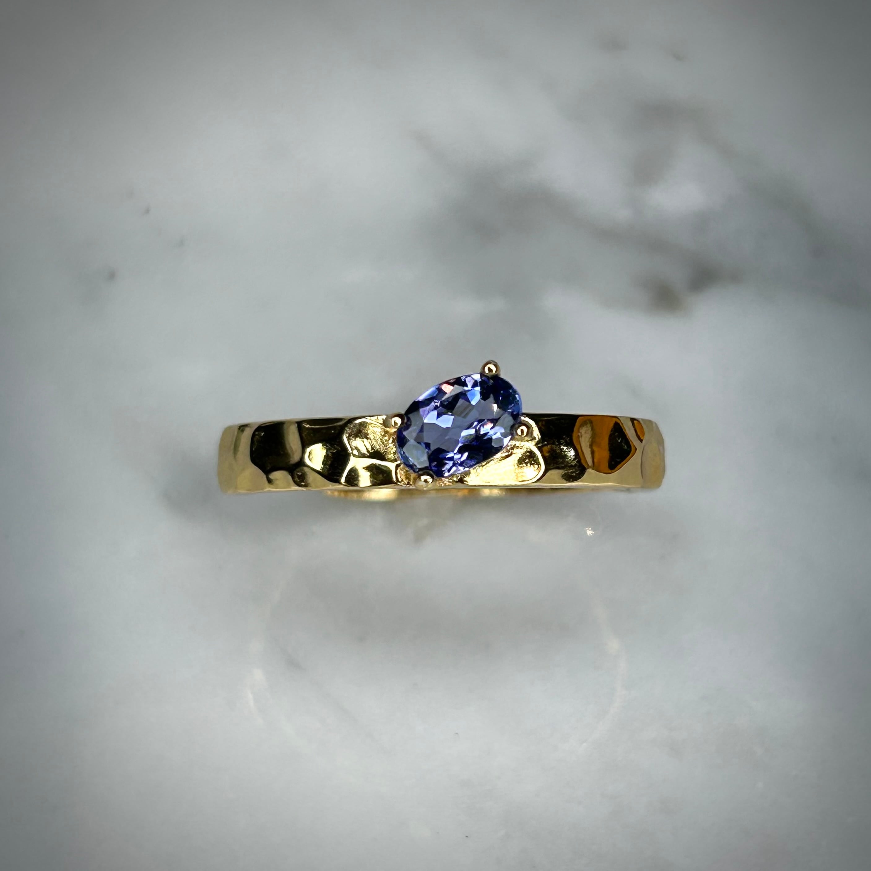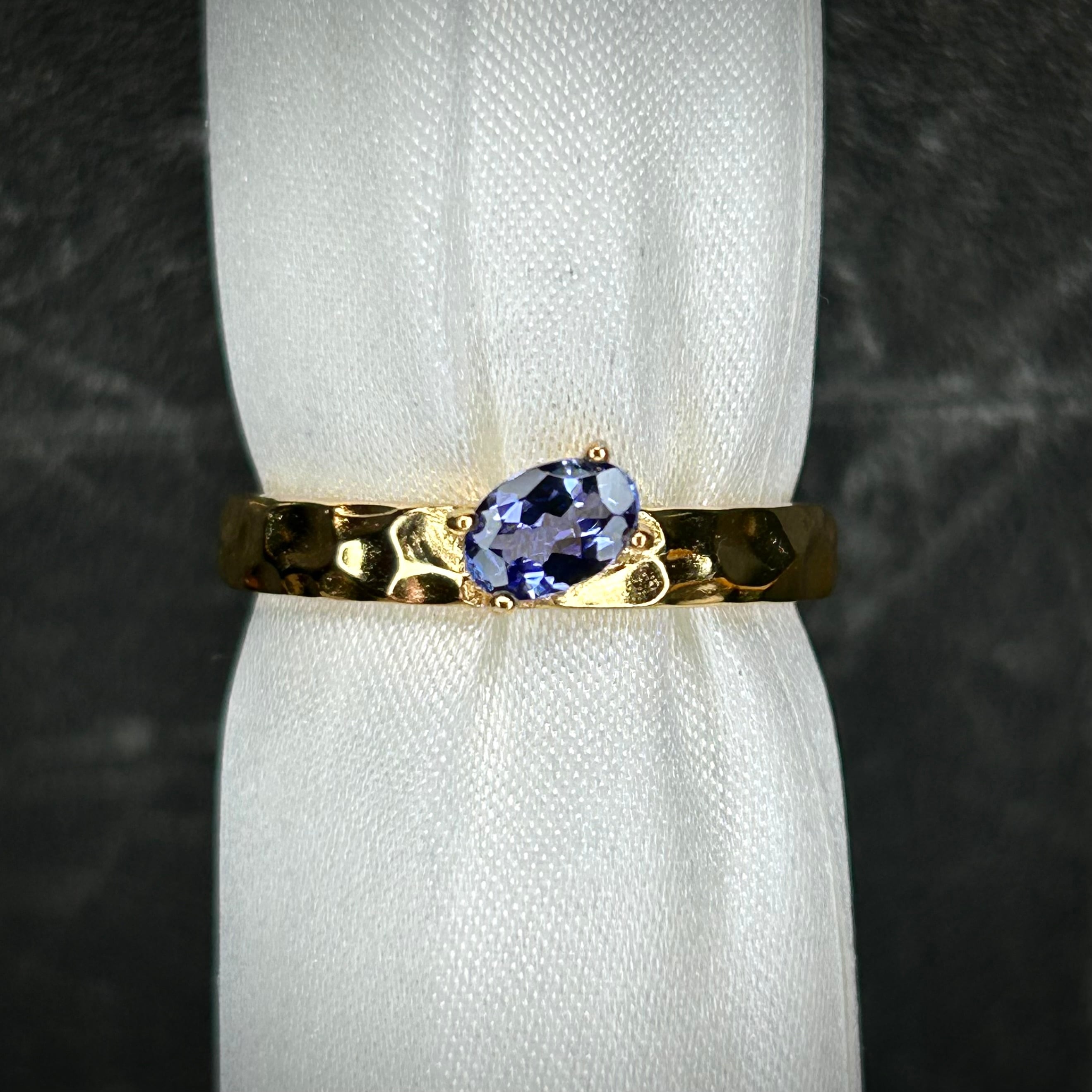シルバー製ゴールドカラー、タンザナイトのテクスチャーリング。