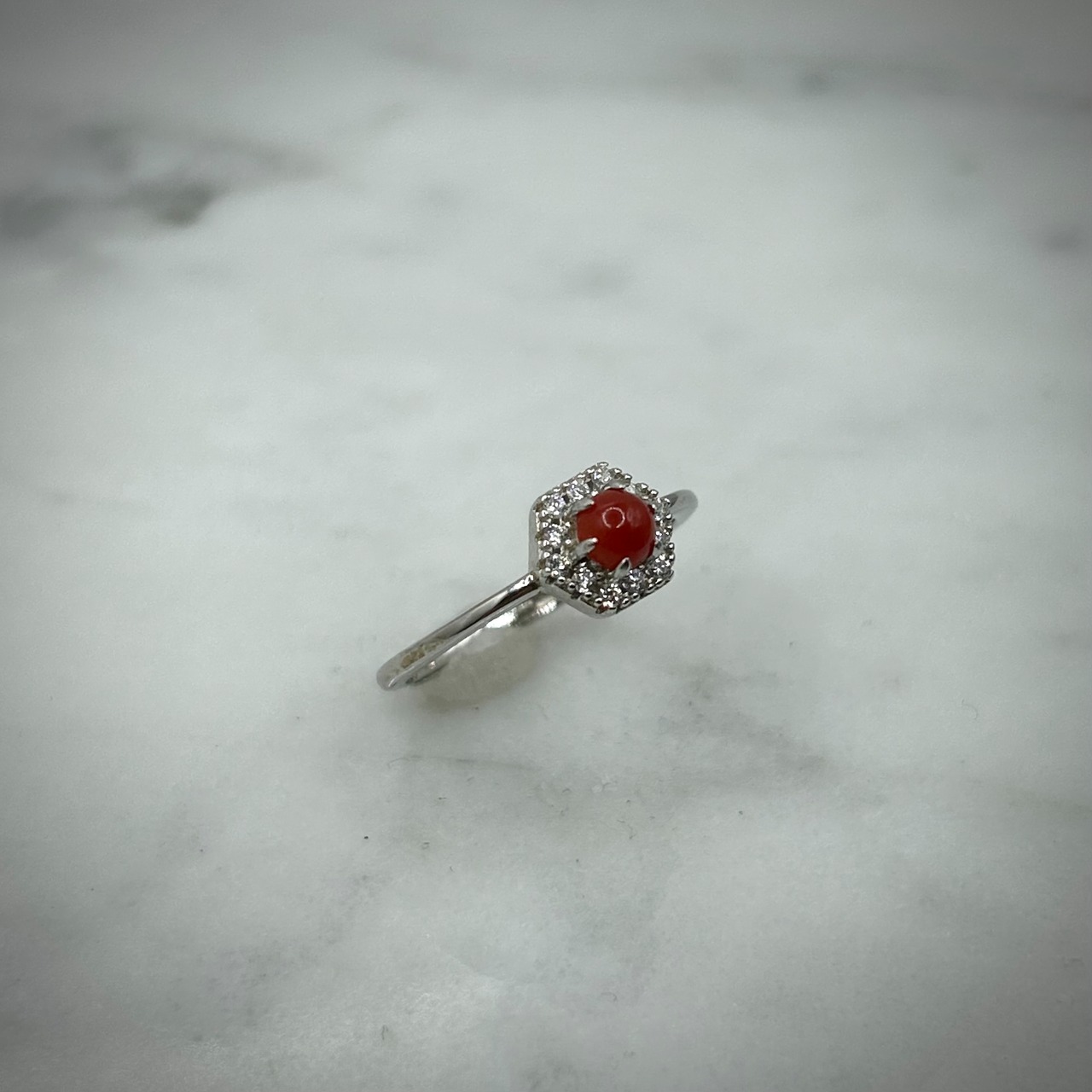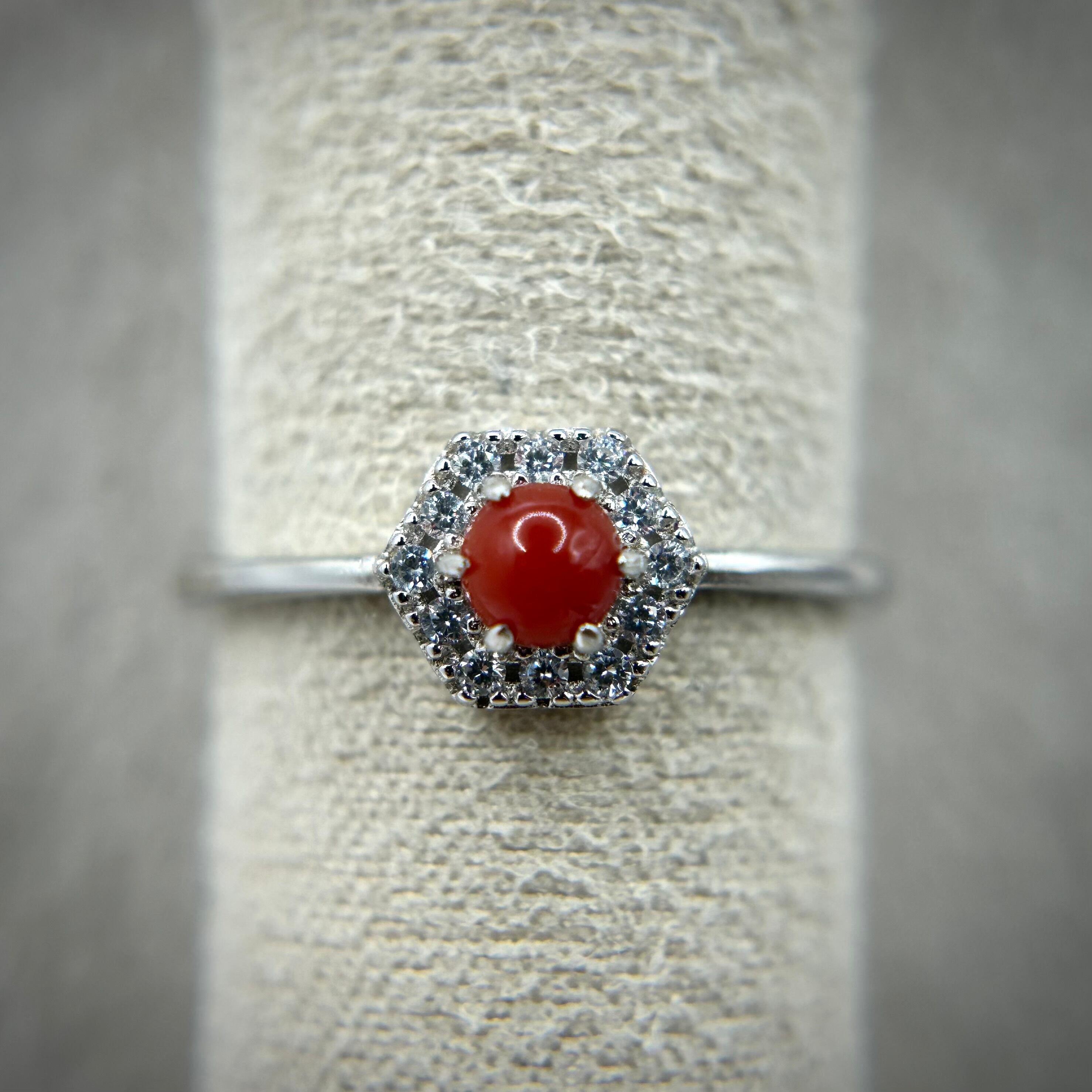 シルバー製 血赤珊瑚 6角形リング 3月誕生石 フリーサイズ