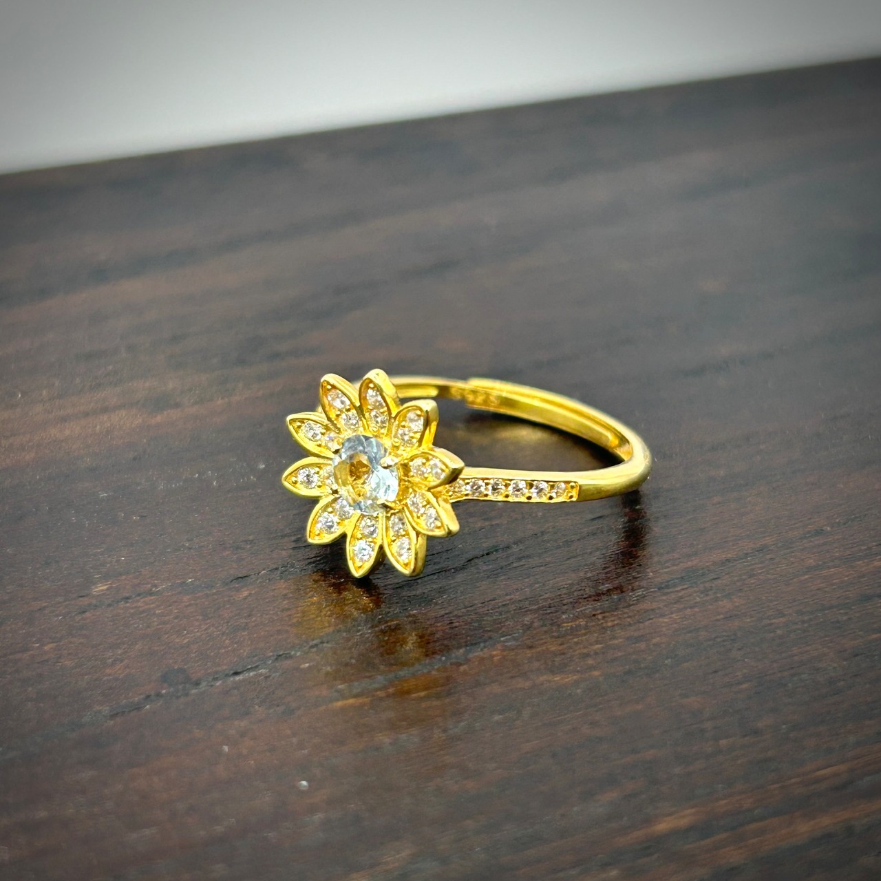 シルバー製ゴールドカラー、アクアマリンのフラワーリング。