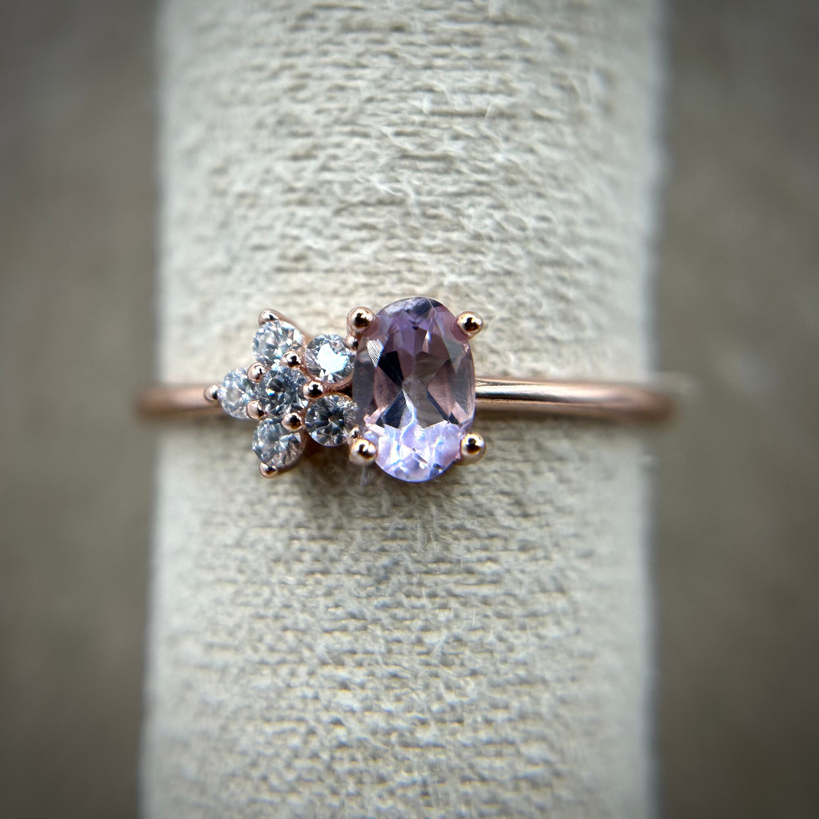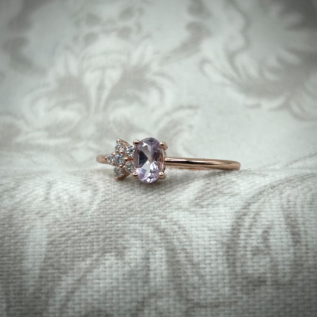 優しい色合いのアメシストをピンクゴールドカラーと合わせることで、可愛らしくフェミニンな印象になりました。