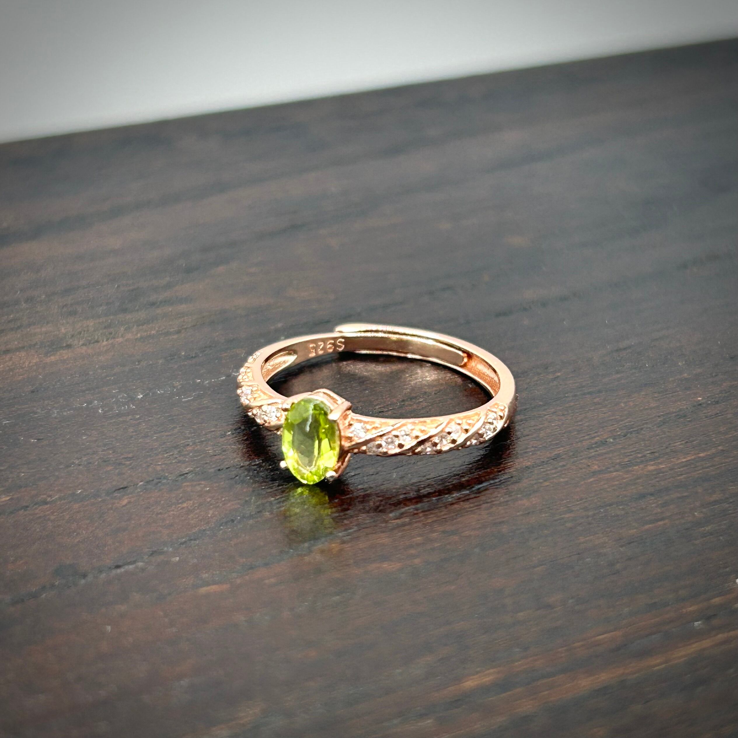 シルバー製ピンクゴールドカラー ペリドット スパイラルデザインリング 8月誕生石 フリーサイズ