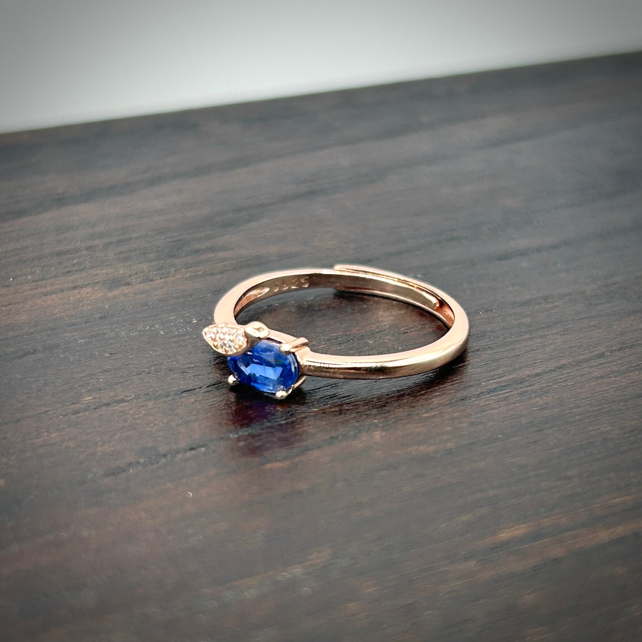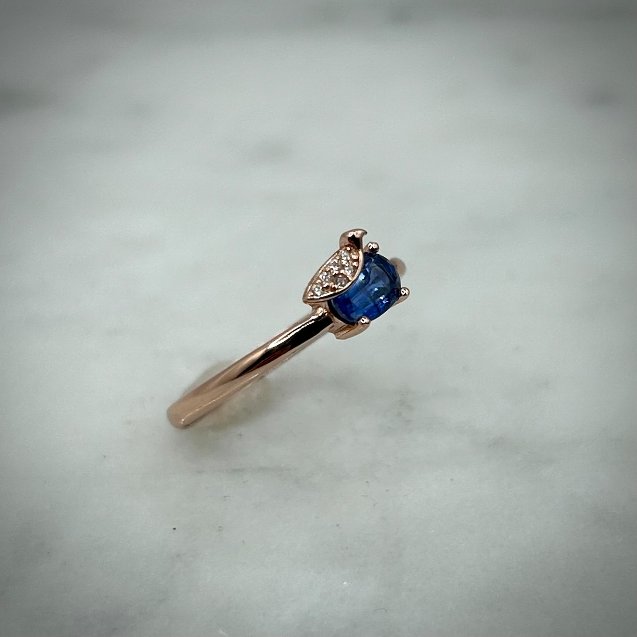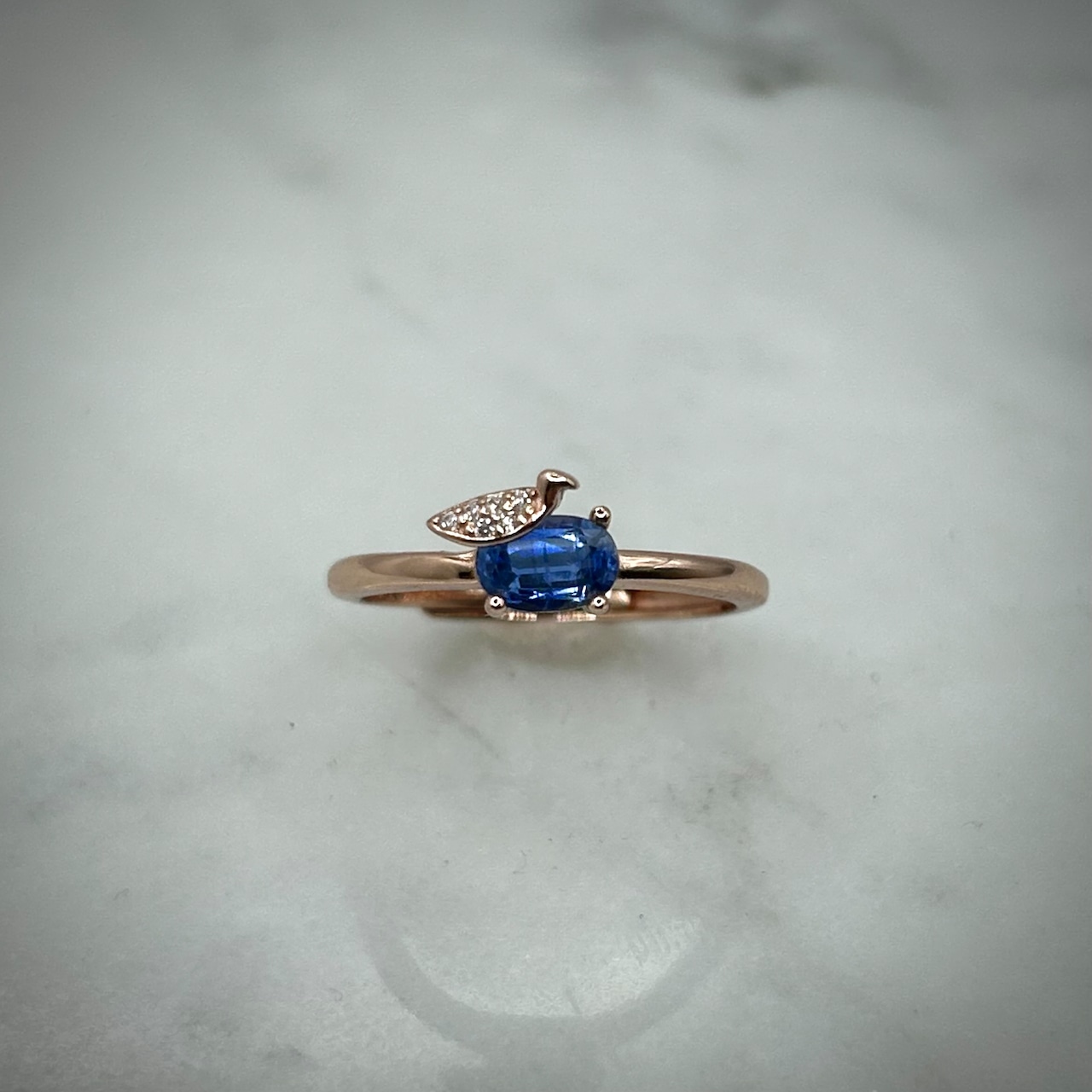 ピンクゴールドカラーに少し深みがありつつ鮮やかなブルーカラーのカイヤナイトがマッチし、可愛い鳥モチーフですが、上品な印象を感じられるリングです。